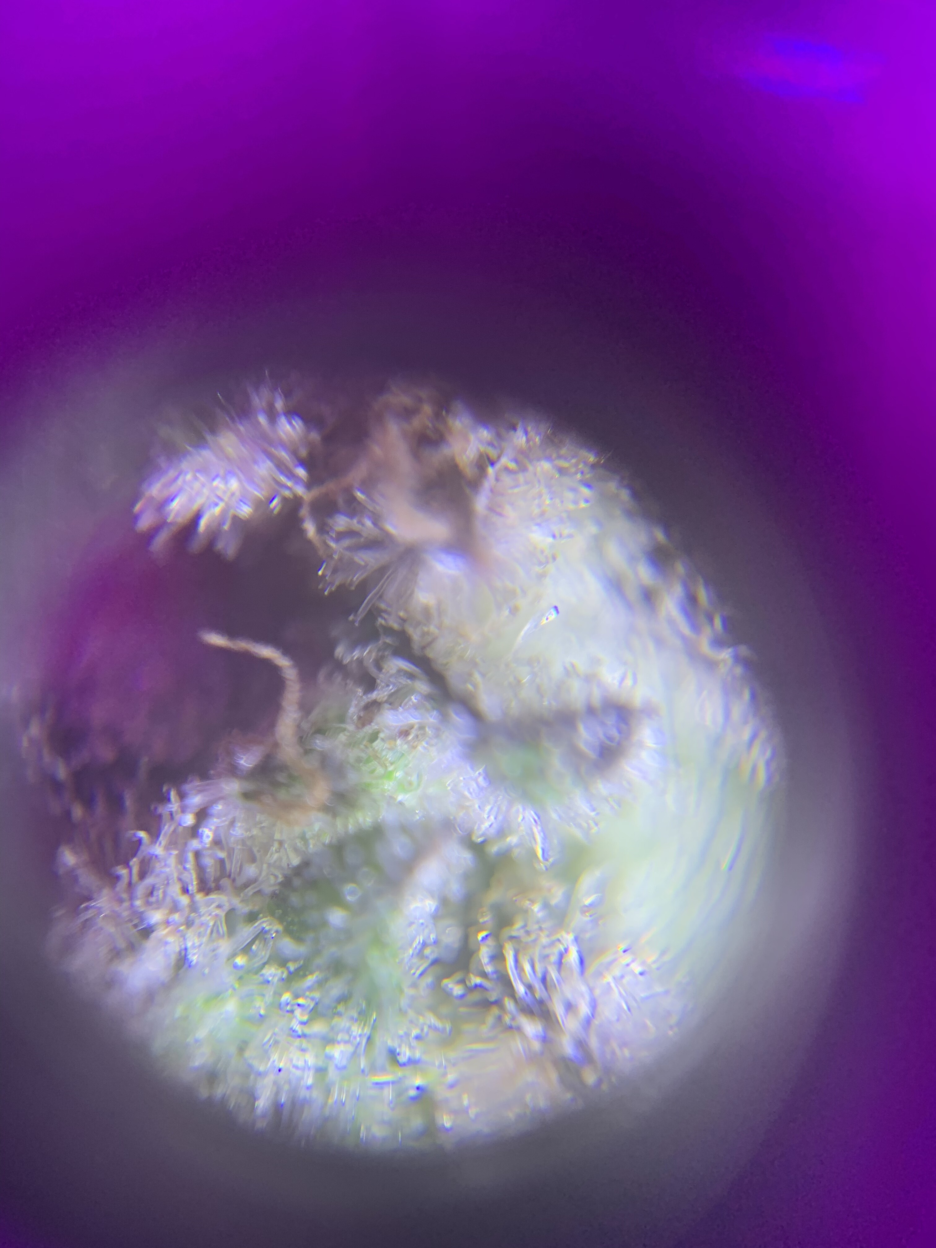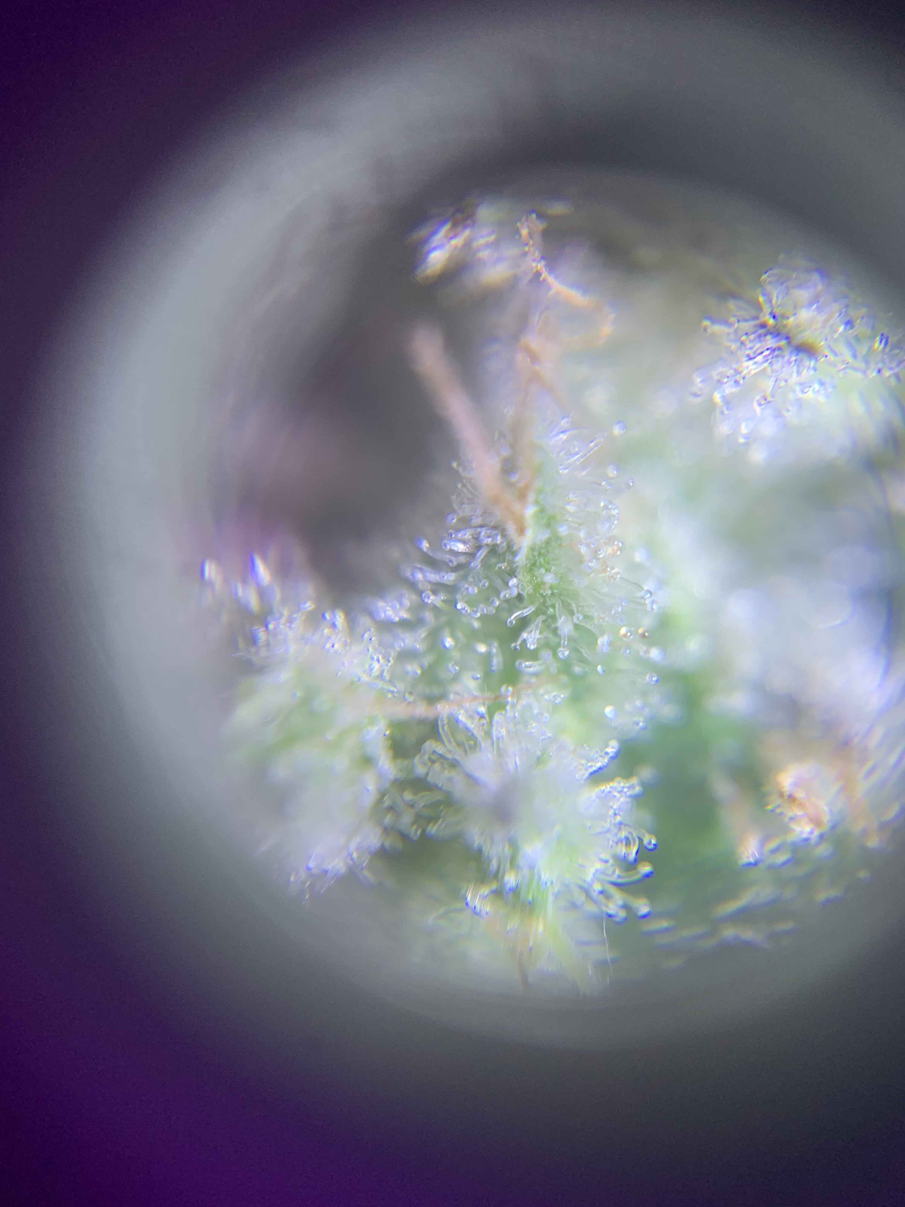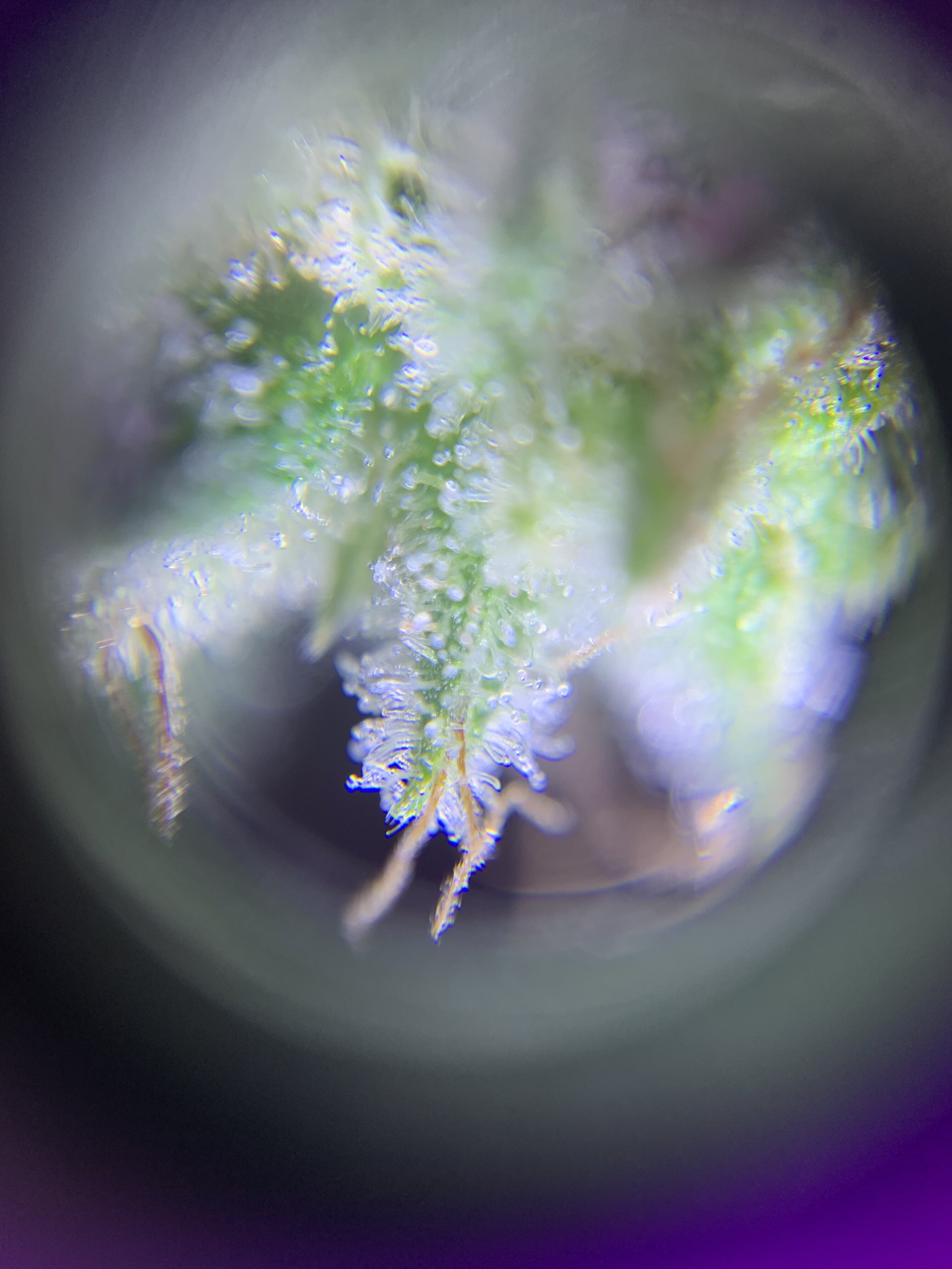Those who’ve got enough grows with enough strains under their belts are going to know that not all strains’ trichomes will change colour in the ‘usual’ manner, and in fact some strains trichomes will never change colour until after harvesting. I’ve run strains on which the trichomes never got cloudy, they went from clear to amber, and I’ve run strains with purple trichomes that never got cloudy or amber.