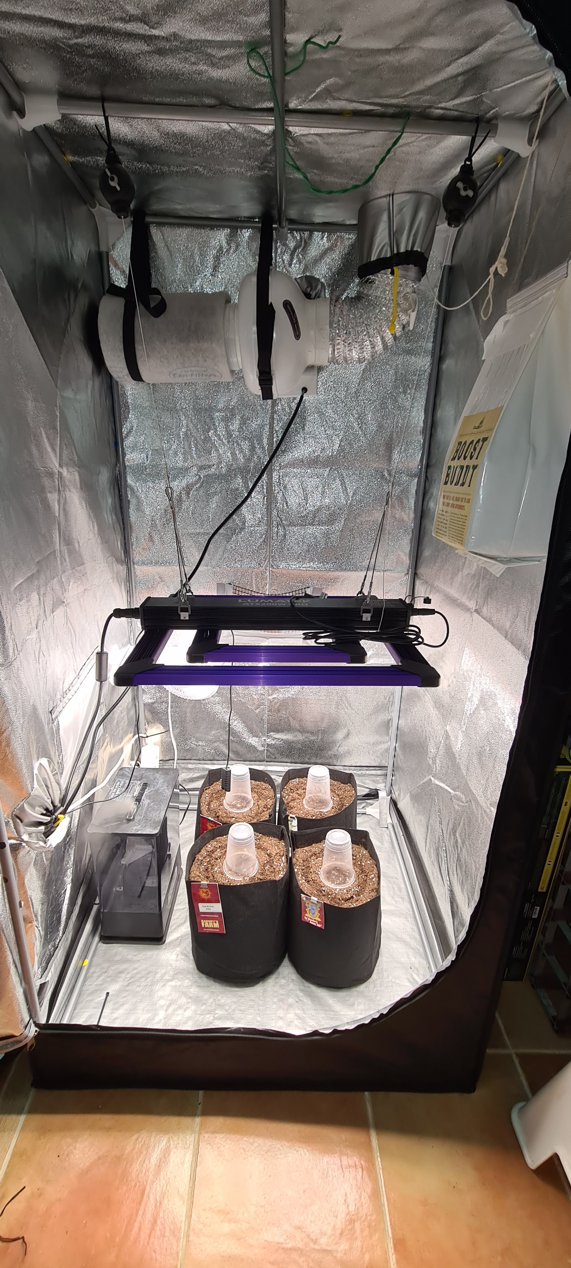 I remember my first run. I only had a heat controller. Only 1 plant survived from seed through harvest out of 4 plants… it was a purple kush auto that survived, got about 20 grams. Literally just put the plants in 5gallen pots and didn’t do anything but water only. Lol. The humidity was a mess. I do not know how it didnt get bud rot. There was times it was so foggy in there with my humidifier pumping out. And then some times it would run out of water for many hours.