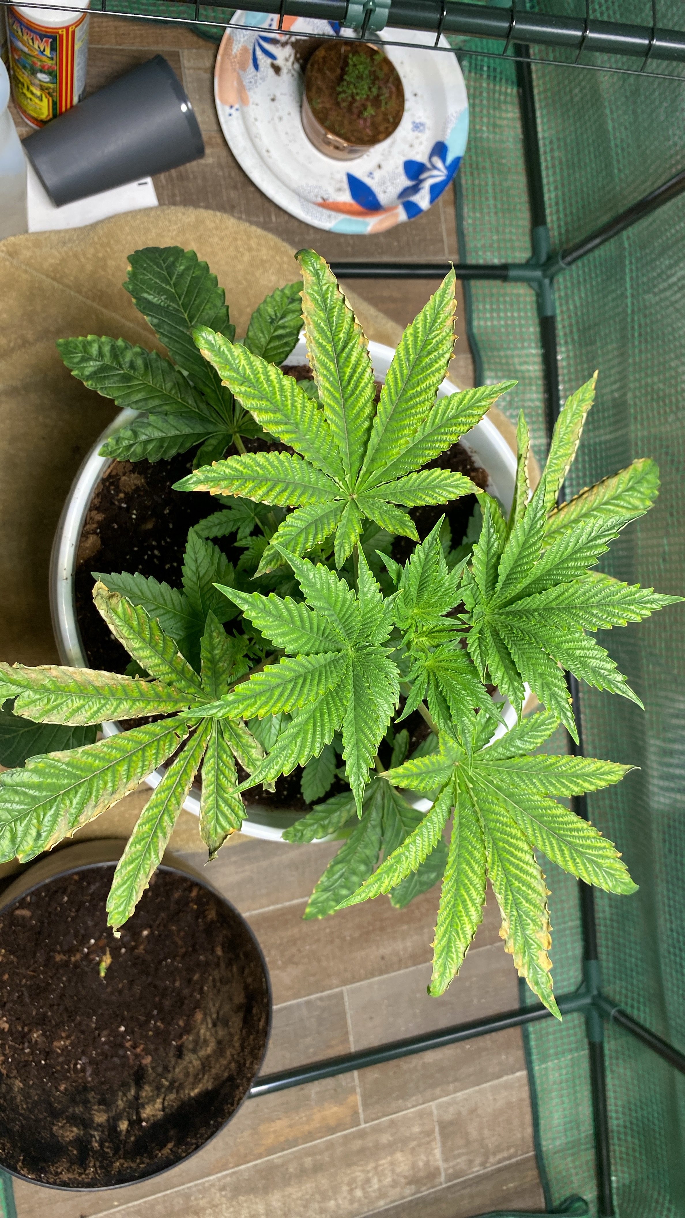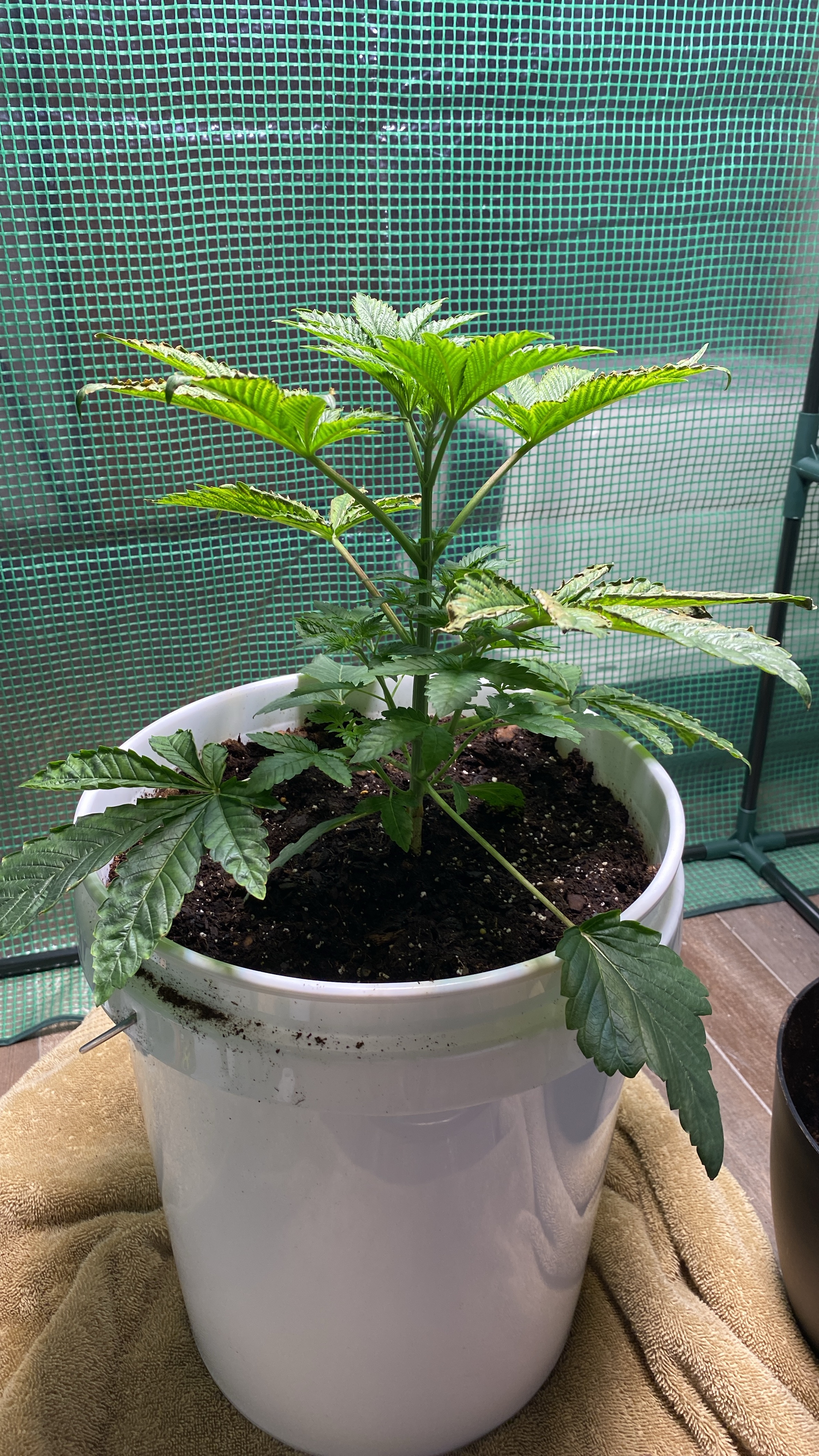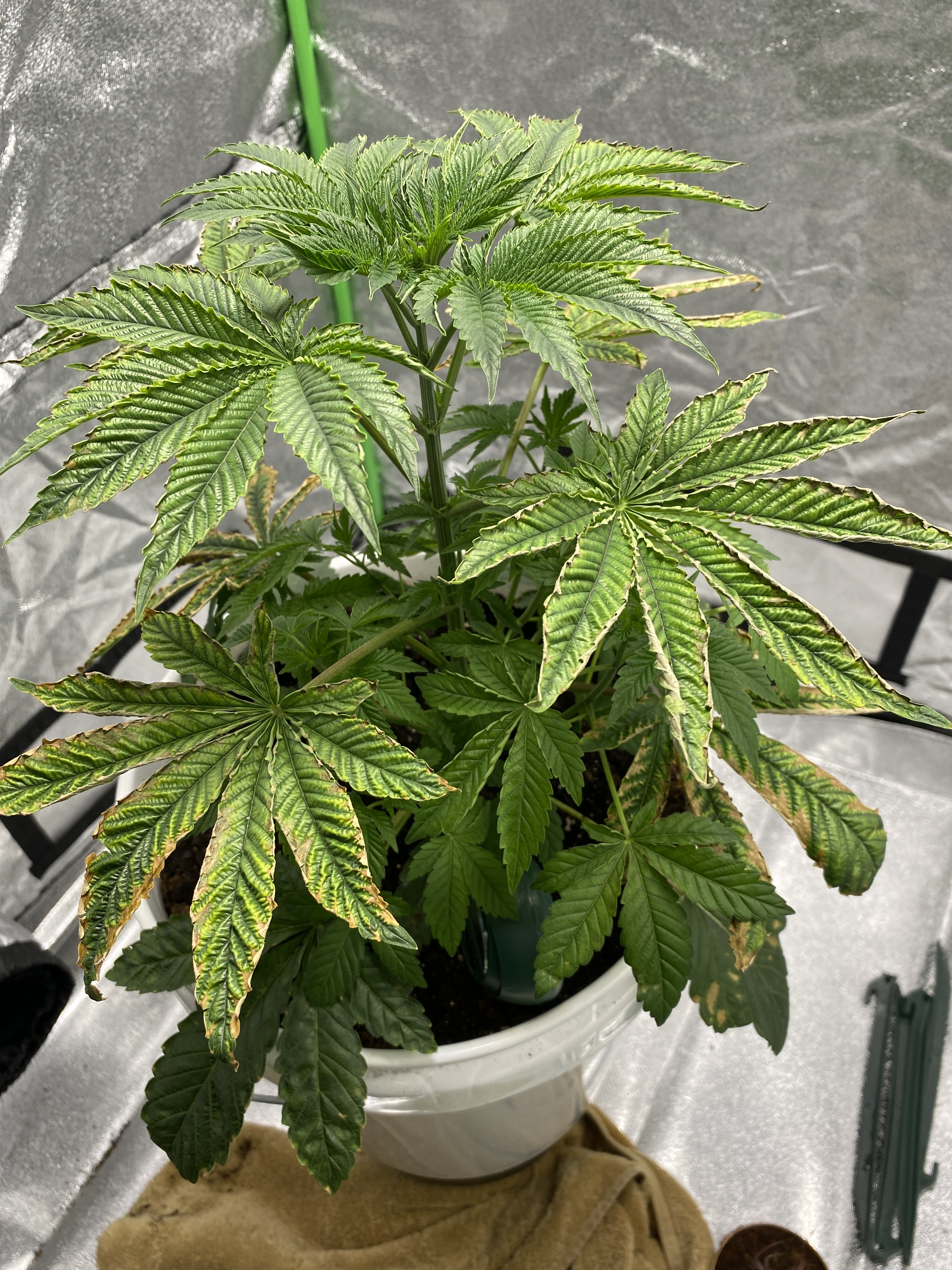 My plant is about 3 weeks into veg when the leaves started turning yellow, i thought it was a nitrogen deficiency but they started curling and turning “crisp”. All new growth growing from stems has yet to be affected