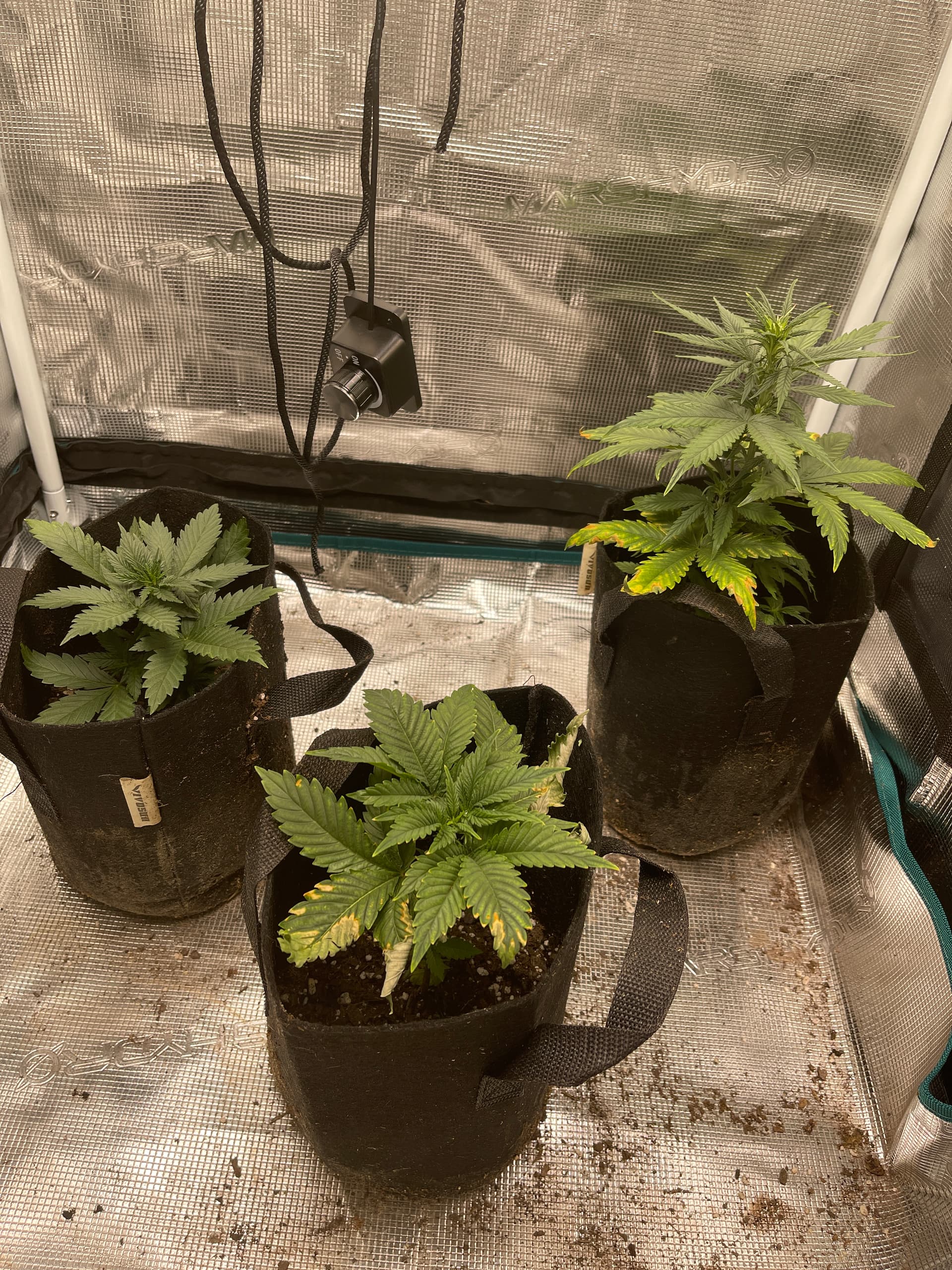 - The plants are too low in the pot, roll down the tops of the fabric pot to expose the leaves to air flow to avoid mold. Next time, put more soil in the pot so the plant base is closer to the top.