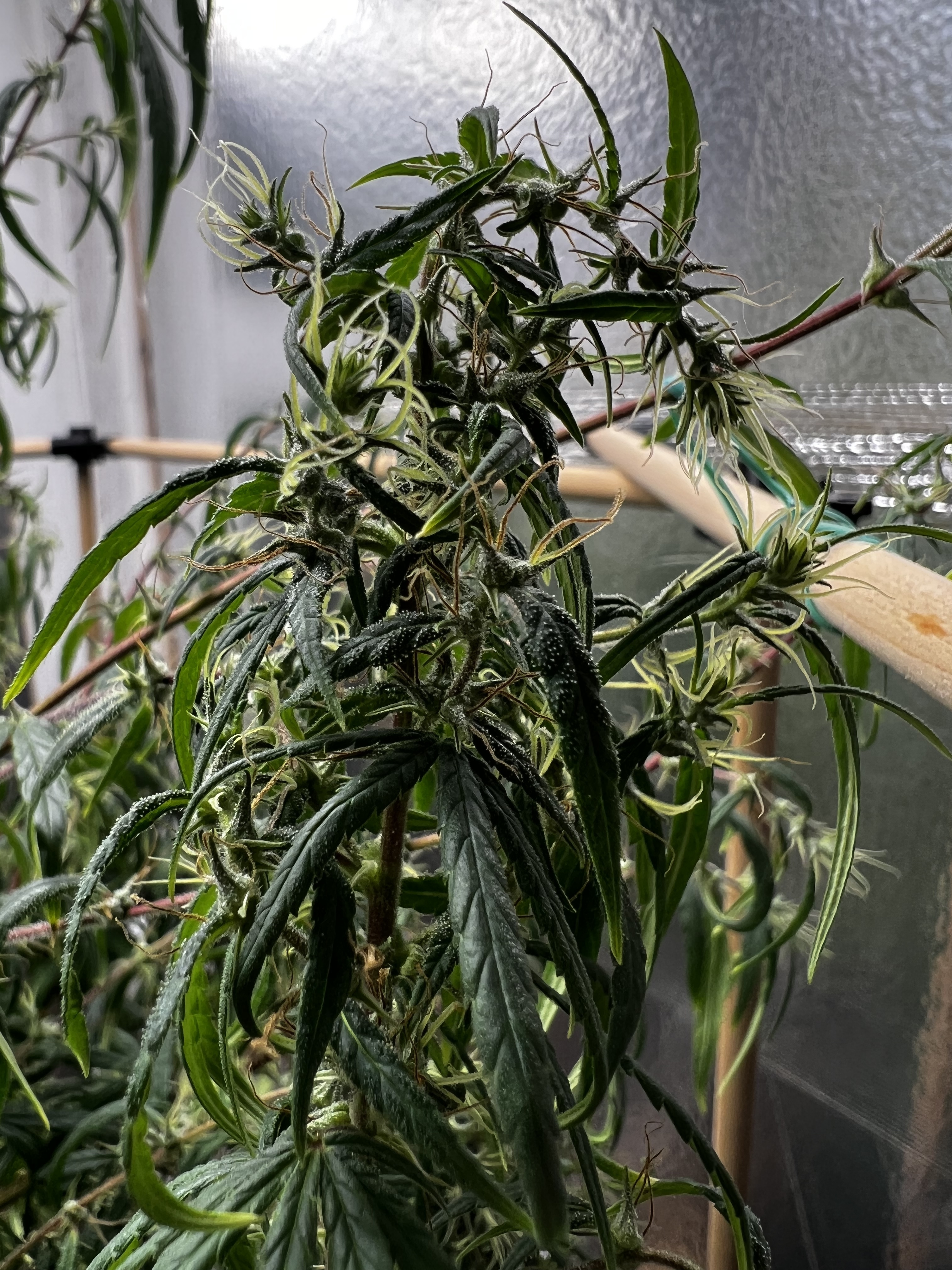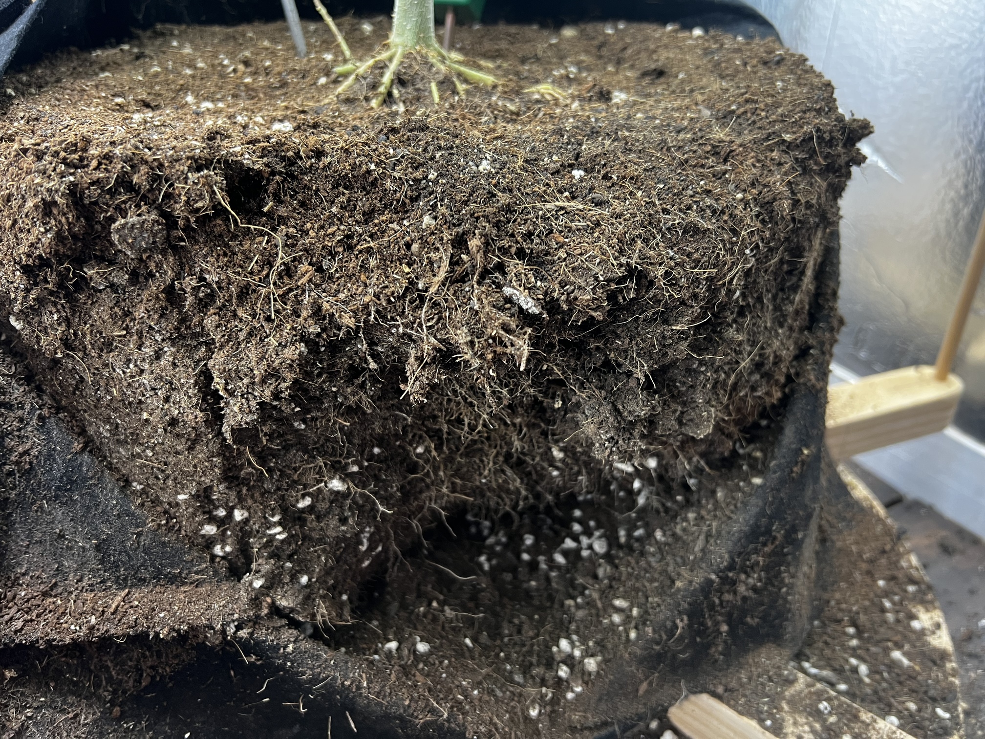 What makes you say it’s root bound? Just trying to learn the signs. I transplanted from a 5gallon fabric pot to a 7gallon fabric pot, let her adjust for 2-3 weeks the flip to flower. If it is root bound I really don’t know what else I can do to prevent that? Also, to be clear, when transplanting I also play the roots out, free up the ball with my hands gently to allow for growth in the bigger pot. I don’t just drop her straight into a bigger pot and fill up the space with medium.