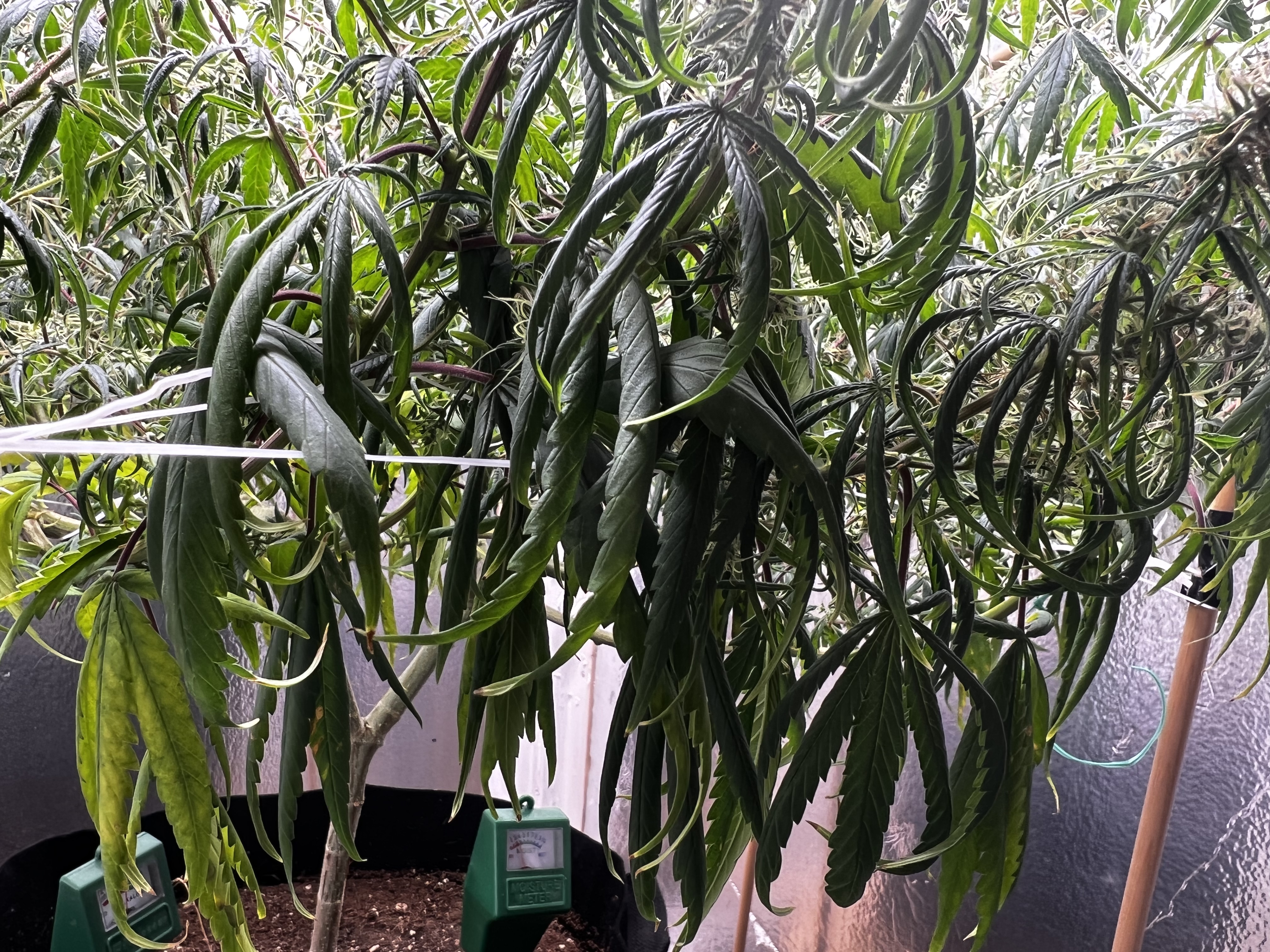 This cannabis plant needs to be transplanted ASAP, it’s suffering from drooping and leaf symptoms in the flowering stage because its roots are rootbound