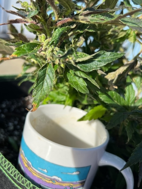 This is a Cream & Cheese photoperiod grown from seed. FoxFarm soil. Started in early October of 2022. I’ve made every rookie mistake there is. That’s water under the bridge and now I just want to know if I should cut my losses or let her grow some more. She started life indoors and then went outdoors when she was near death’s door (due to me putting the light too far away and then too close and a bunch of other stuff). She recovered nicely and perhaps even started to flower outside. I then (in retrospect foolishly) brought her back inside around the middle of January. She’s done okay, and as you can hopefullly see, she has some tiny buds on her, but they’ve never really gotten any bigger. I suspect that all the light and environment changes have confused her. She’s currently getting 11 hours of light. She had a sister that I brought back inside sooner and I did get some bigger buds out of her. Curiously, the sugar leaves also seemed quite smokeable. The reason for bringing them inside was someone convinced me that that they wouldn’t flower until October or so because our days (southern california) are currently getting longer and won’t start getting shorter until June. Thus the consensus was they were re-vegging and needed to be brought inside.