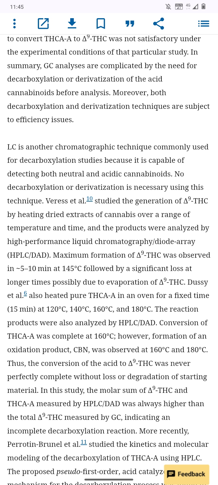 Decarbing happens at any temperature 93C (200F) and above, but it takes longer at lower temps. It’ll take 30 minutes at 110C (230F), 9 minutes at 130C (265F). Go over 150C (300F) and it starts burning off cannabinoids and terpenes. The lowest setting on my vaper is 160C (320F) so I’m sacrificing some THC for a quicker heating time.