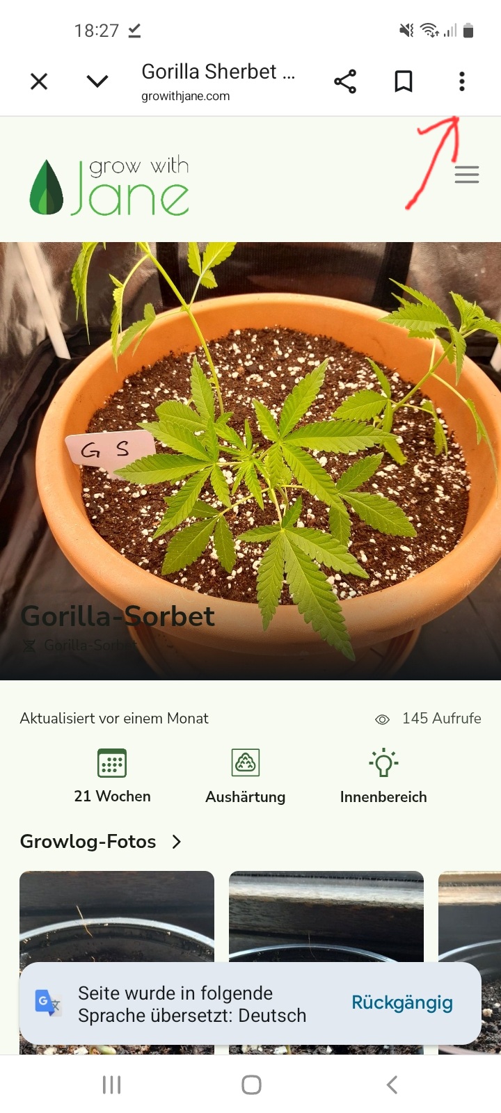 In the opened Growlog, open the top left