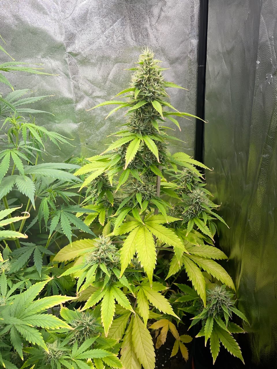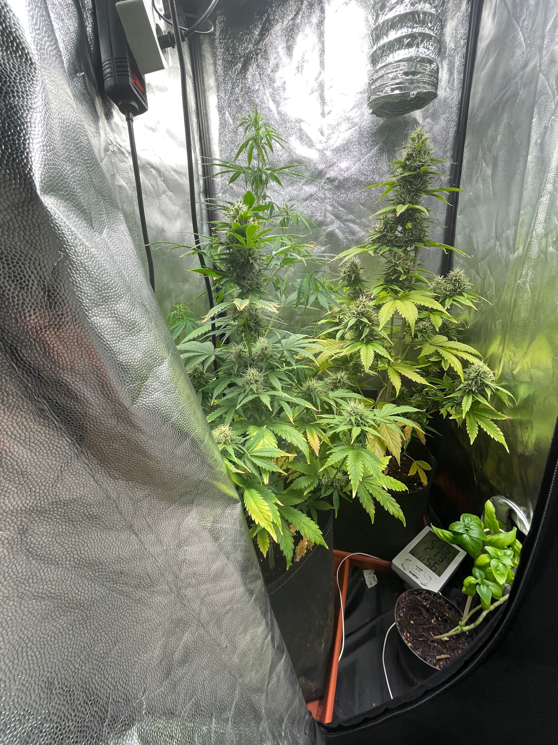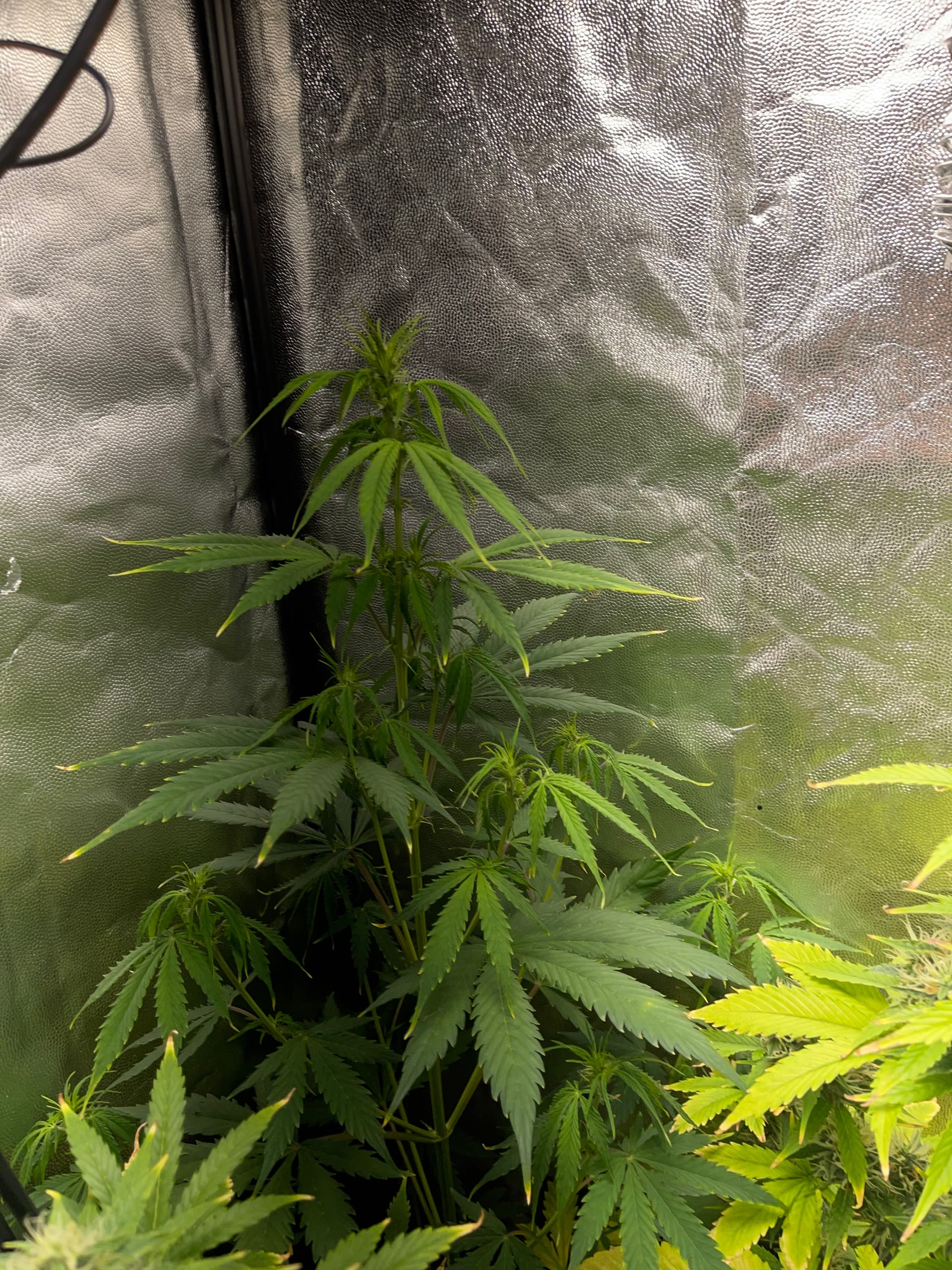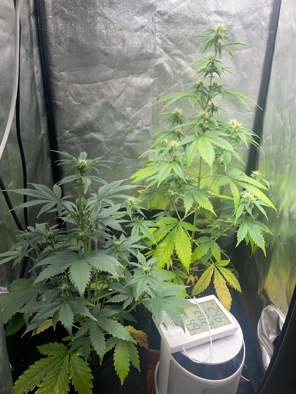 No consigo aclarar que puede estará pasando dudo que se exceso de nutrientes pues estoy usando todo biológico de rqs los potencia dores de floración y sus pastillas de rqs para floración y veg, también usa de vez en cuando cannazim y ahora en floración candy bud de advanced nutrients, which vivamente espaciados y no todo a la vez.( pero todo puede ser)