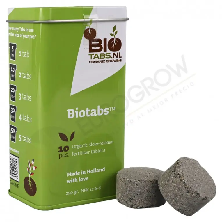 Si usa bio tabs estas van mezclada con el sustrato antes de sembrar la semilla como el guano y el humos, porque son de liberación lenta o sea que van soltando alimento a lo largo de tiempo, si las disuelve en agua y riega la planta puede ser que es demasiada dosis de abono por un de riego.