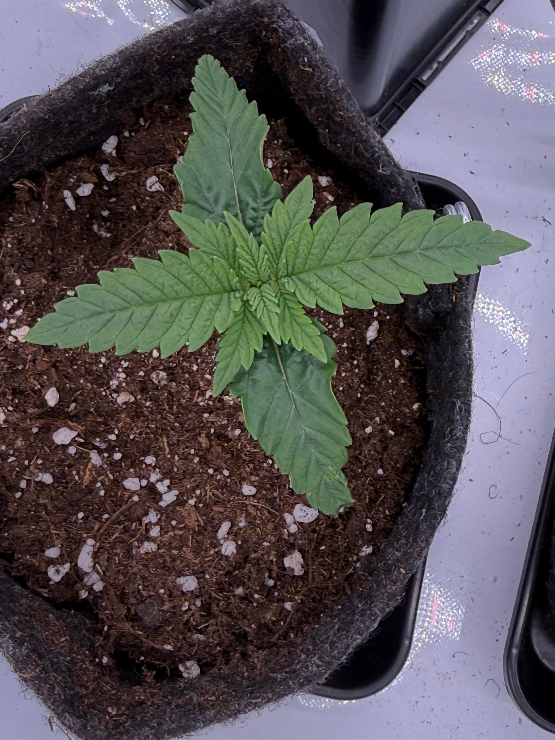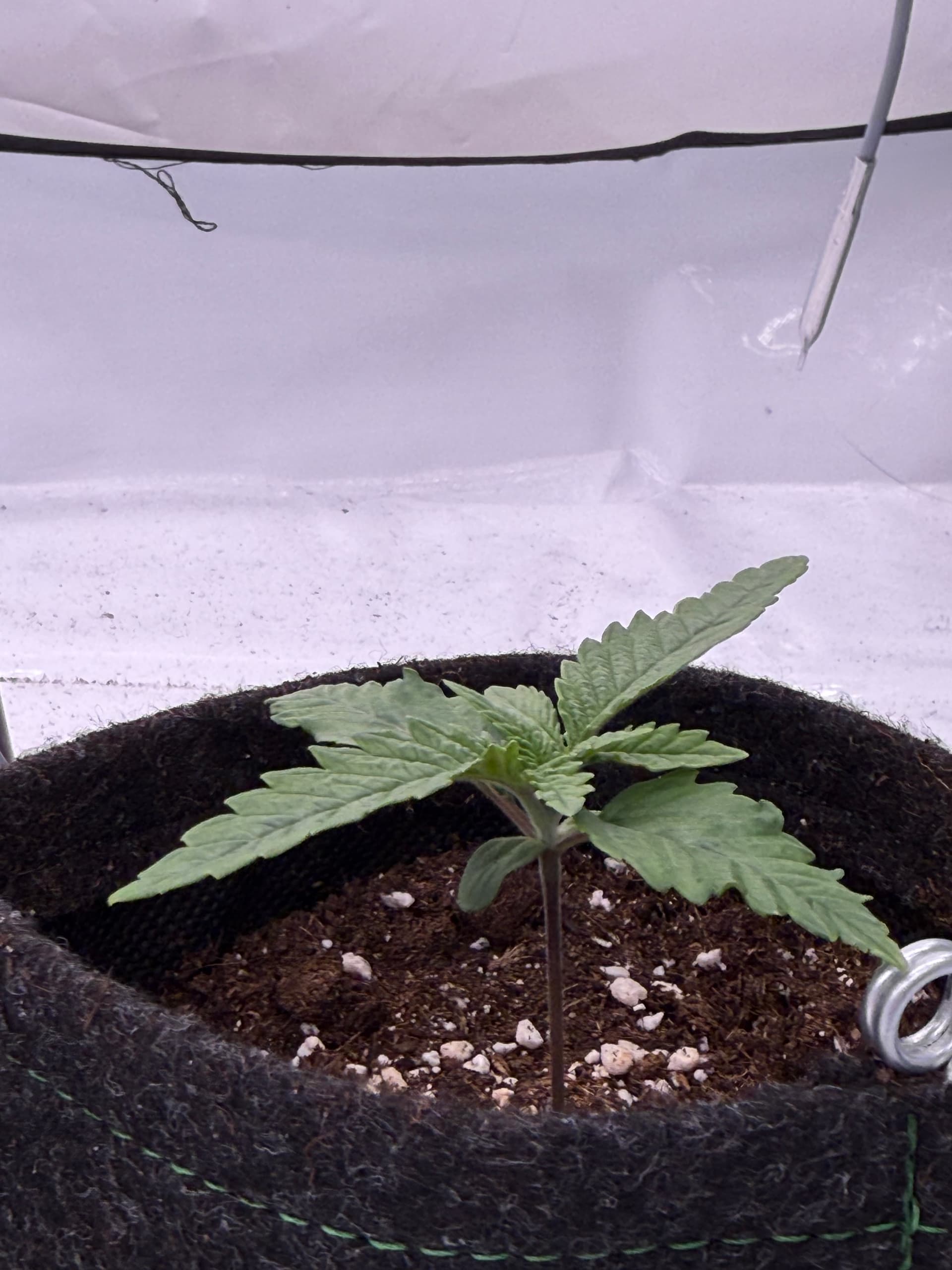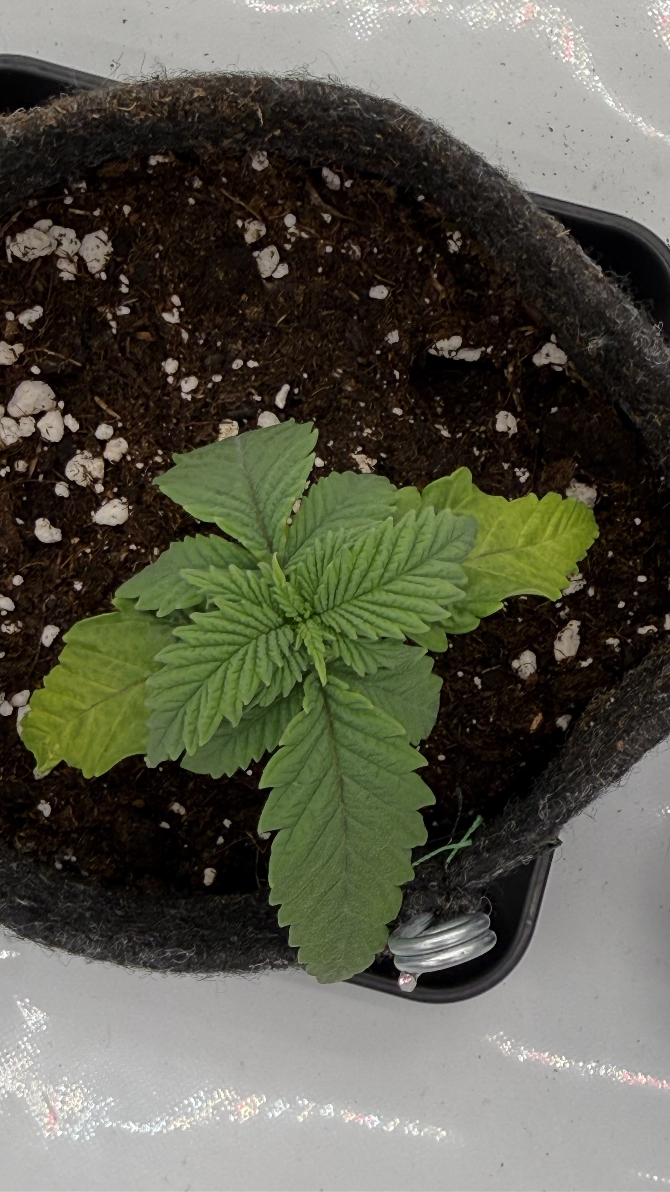 This is my first grow and actually, only this one plant looks like this (see picture). The other two feel much healthier (I’m happy to show them too, if desired). I have the feeling that it’s lacking something. I planted the seed a bit deeper, so it emerged from the soil relatively late. Transplanting into the 1L fabric pot probably didn’t go optimally either, so I’m worried that a) the plant isn’t deep enough and b) the soil might be too compacted. I came to this conclusion because the first watering during transplanting was done with a measuring cup (250ml each) and I didn’t moisten the soil beforehand (that was stupid, I know :))