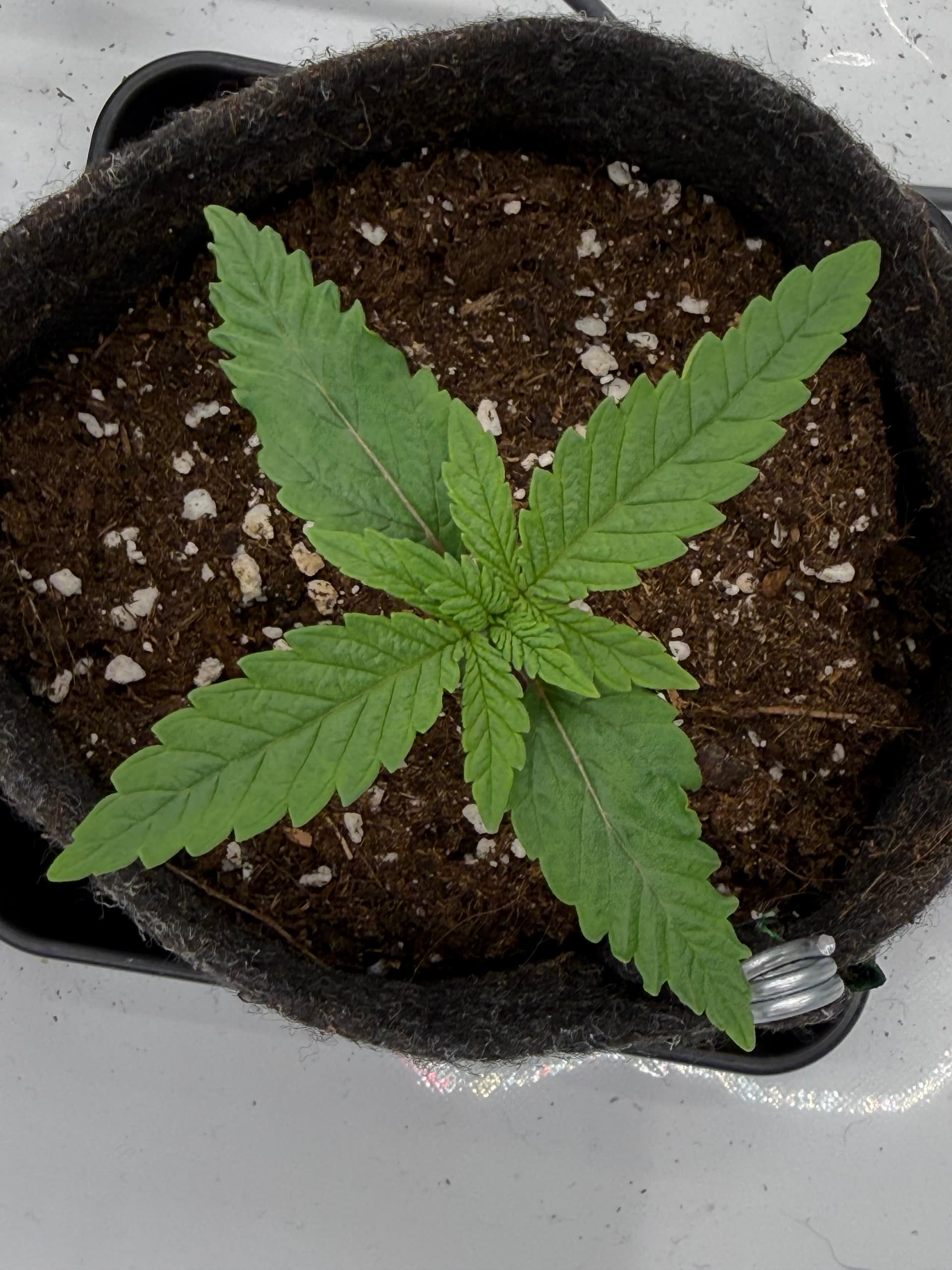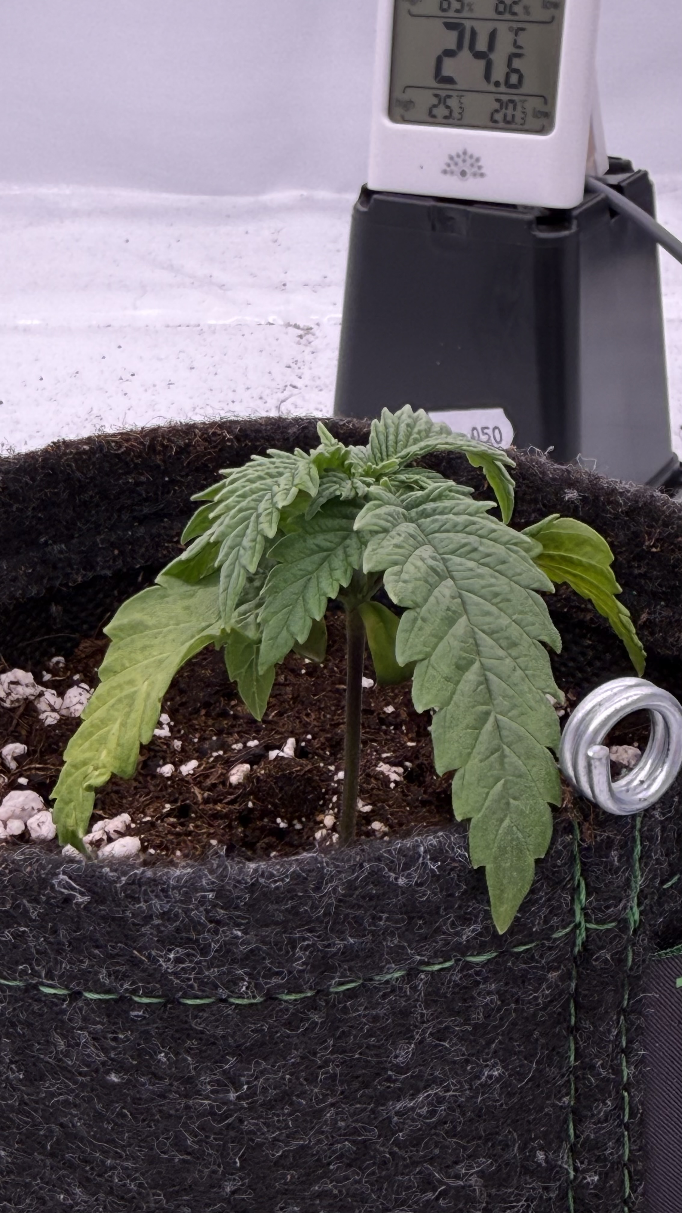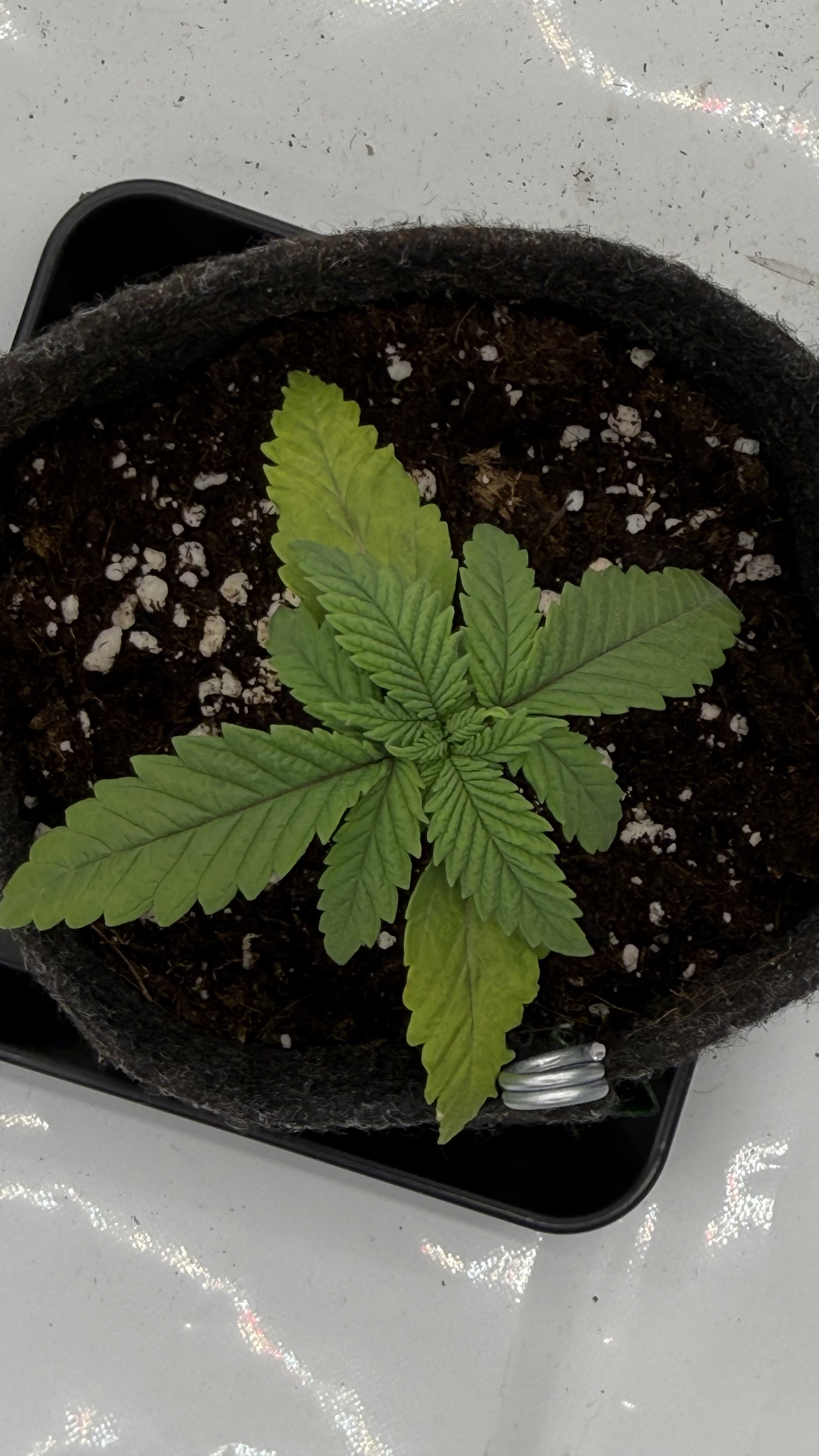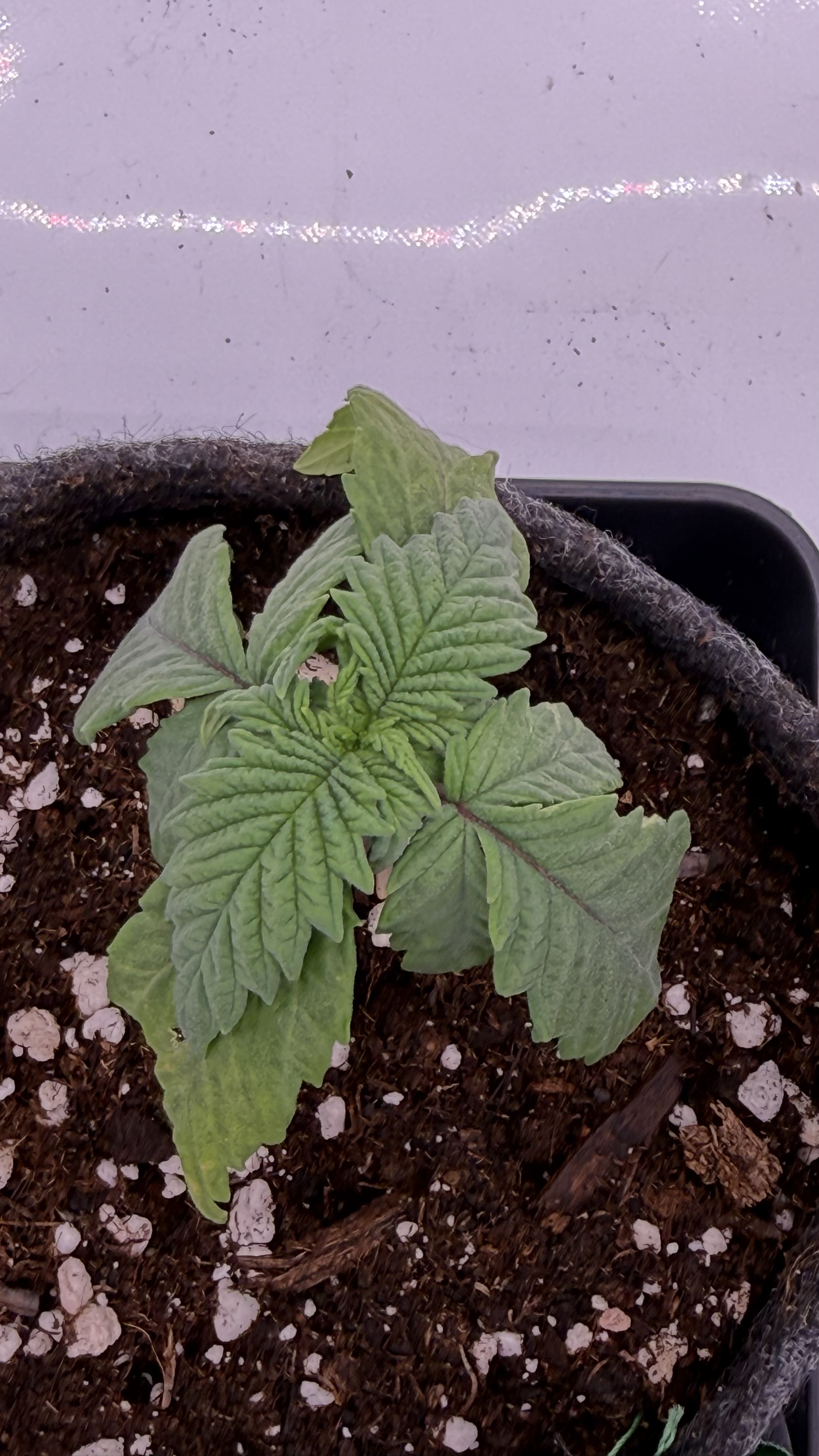 This is my first grow and actually, only this one plant looks like this (see picture). The other two feel much healthier (I’m happy to show them too, if desired). I have the feeling that it’s lacking something. I planted the seed a bit deeper, so it emerged from the soil relatively late. Transplanting into the 1L fabric pot probably didn’t go optimally either, so I’m worried that a) the plant isn’t deep enough and b) the soil might be too compacted. I came to this conclusion because the first watering during transplanting was done with a measuring cup (250ml each) and I didn’t moisten the soil beforehand (that was stupid, I know :))