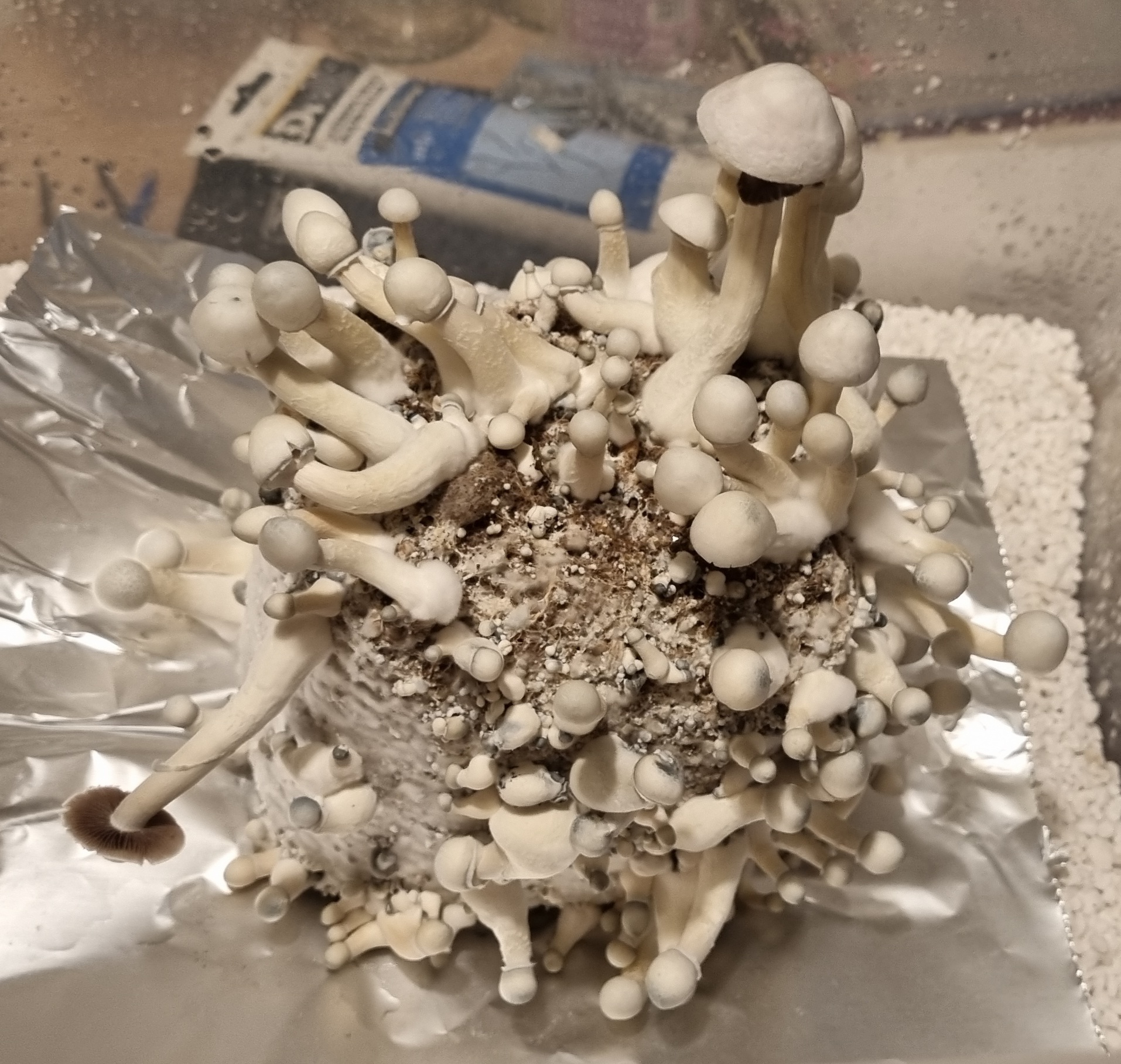 The fact that the solution had been in the fridge for over 2 months, I hadn’t used a pressure cooker to sterilise and very much improvised the substrate meant I didn’t have much hope for this coming off but to my suprise it’s taken better than any kit I’ve used so far!