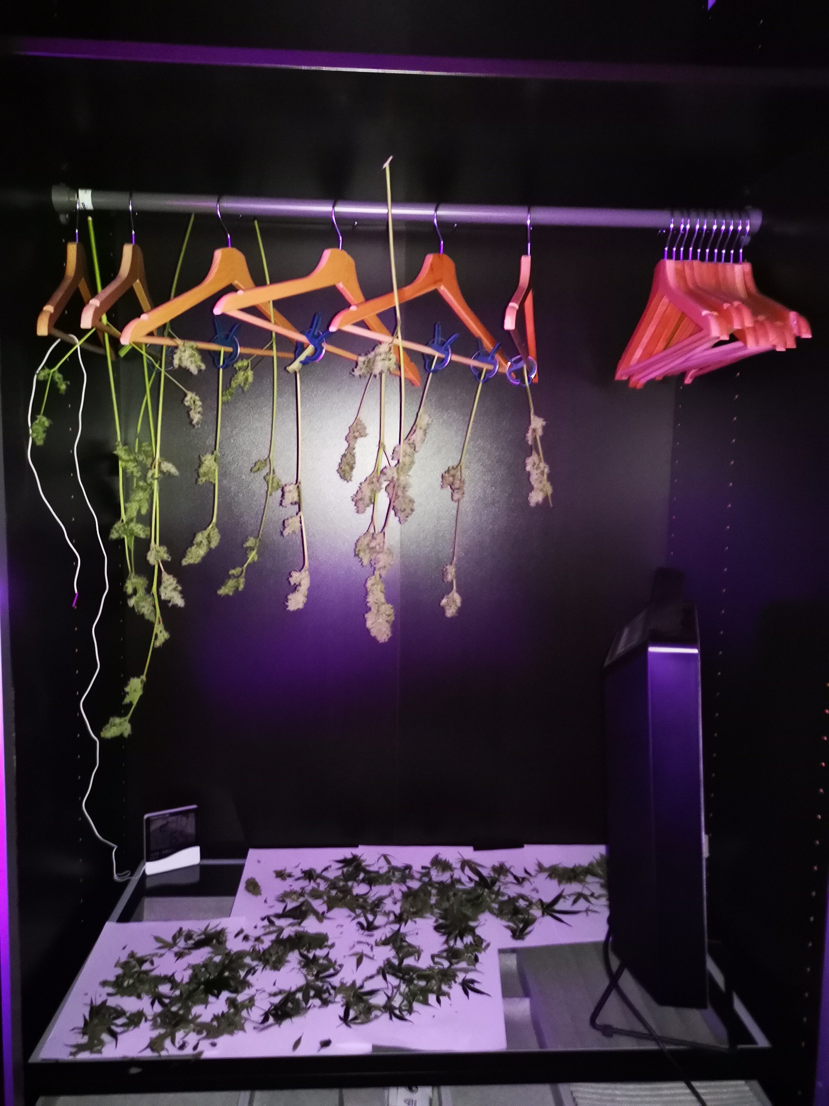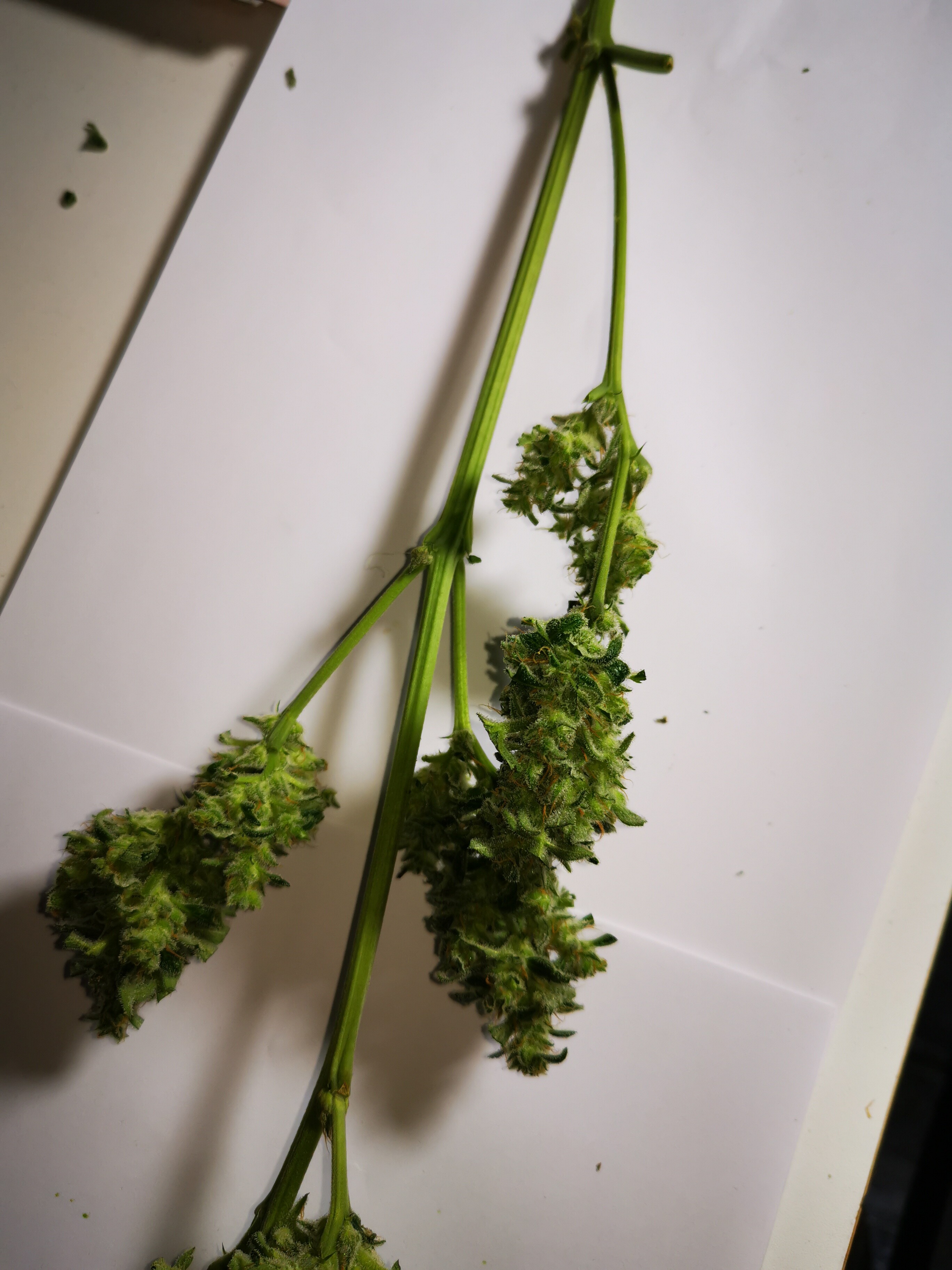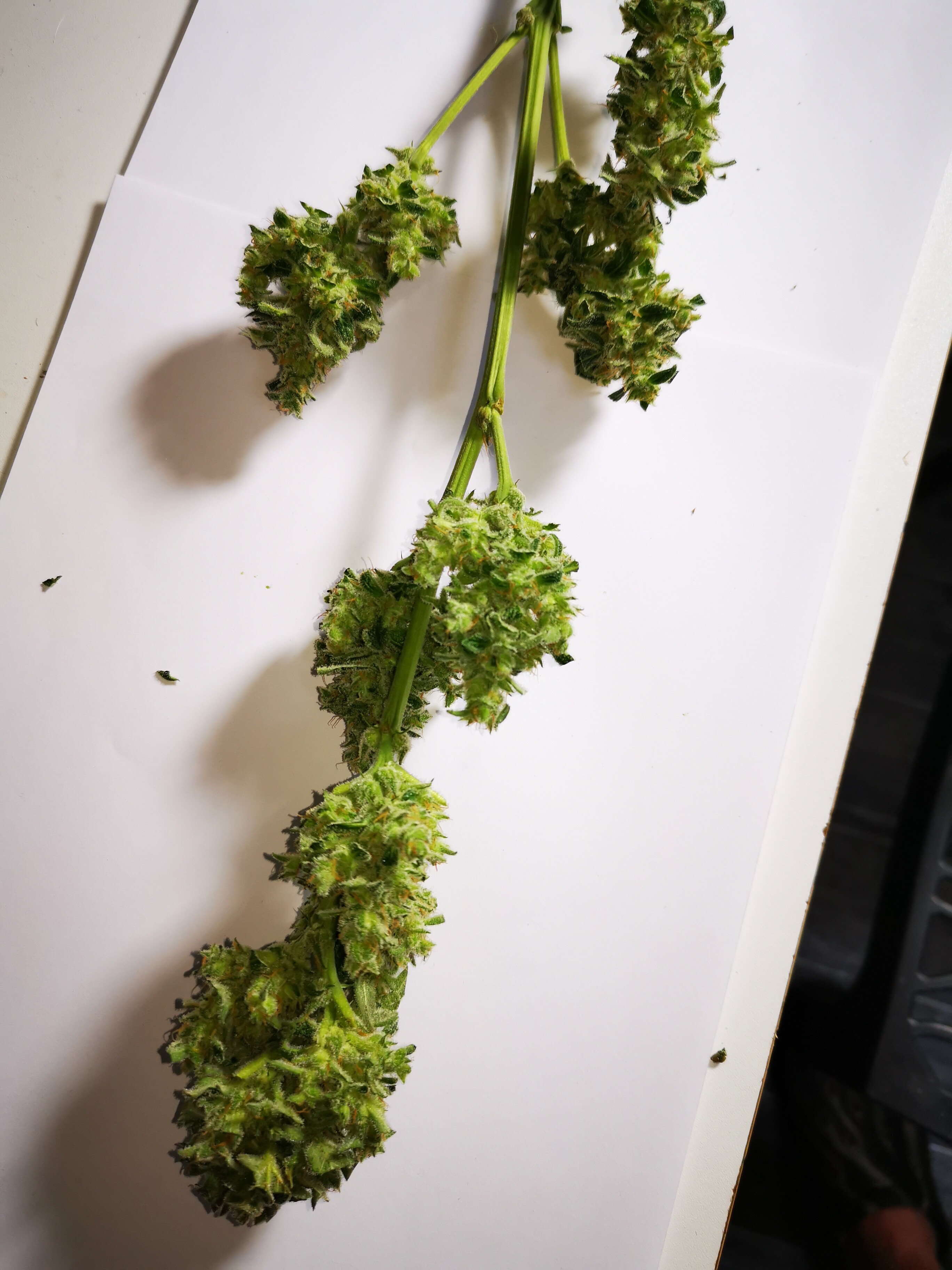 I’ve just harvested my little Wedding Cake Auto. It was the first time and it was hard emotionally… I hope I won’t be sad every time when it’s harvest time! Anyway, here she is. I did a wet trim for the biggest part and I’ll perfect it when it’s dry. I’ve put the colas in my clauset with a fan and the humidity stays at a solid 65%.