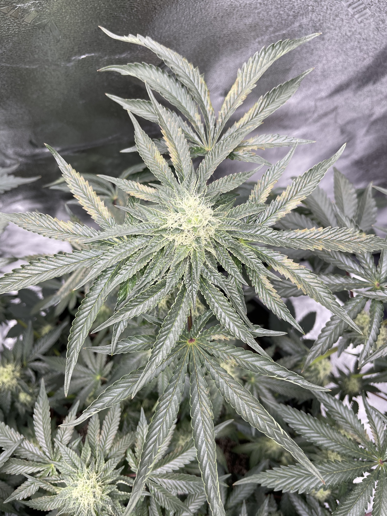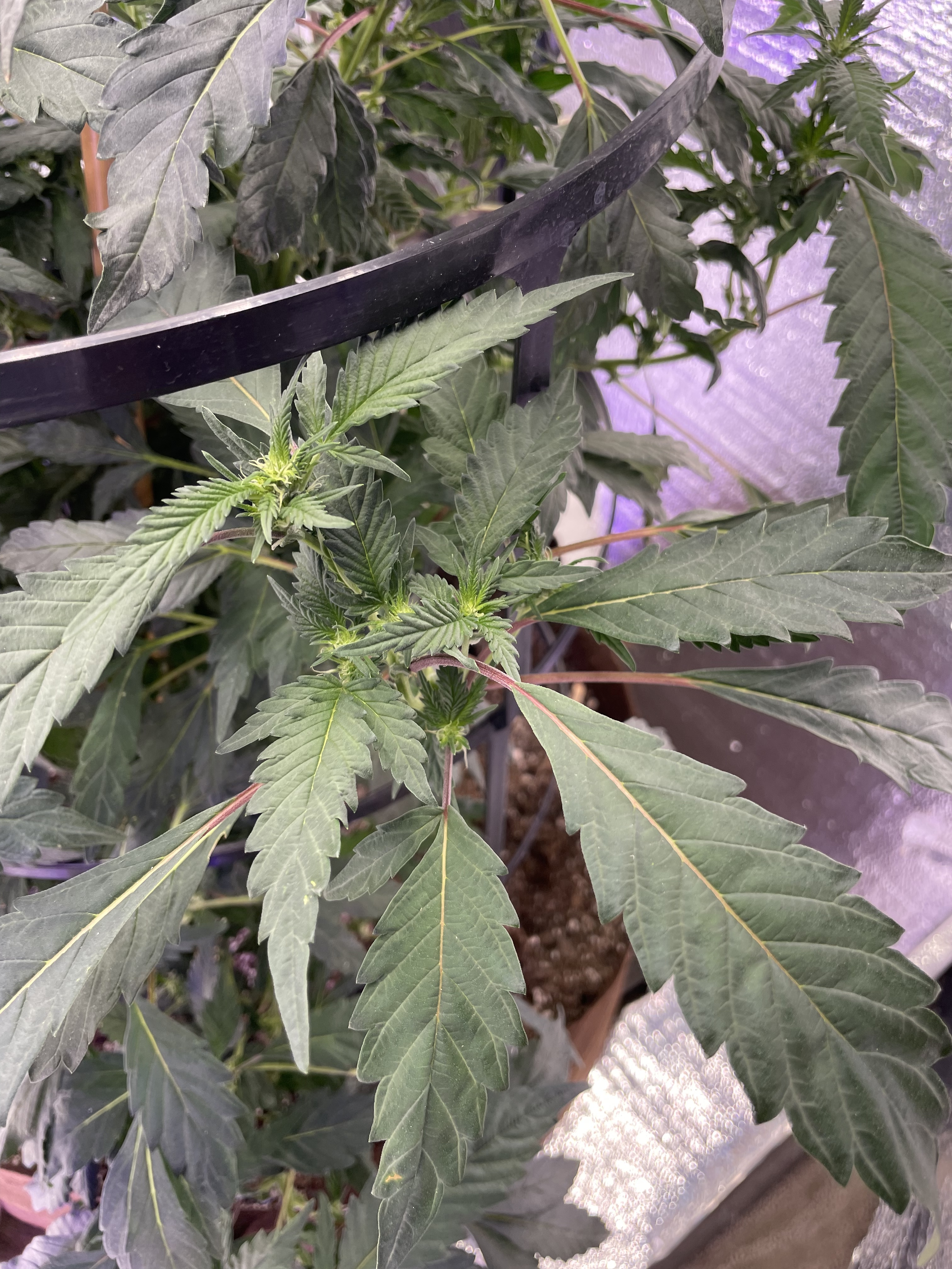 After the “Pre-Flip” defoliation comes "what I like to call ‘Selective Defoliation’ during early - mid flower where I’d only remove fan leaves that are blocking primary bud sites only. Sometimes i’ll just tuck them away!!