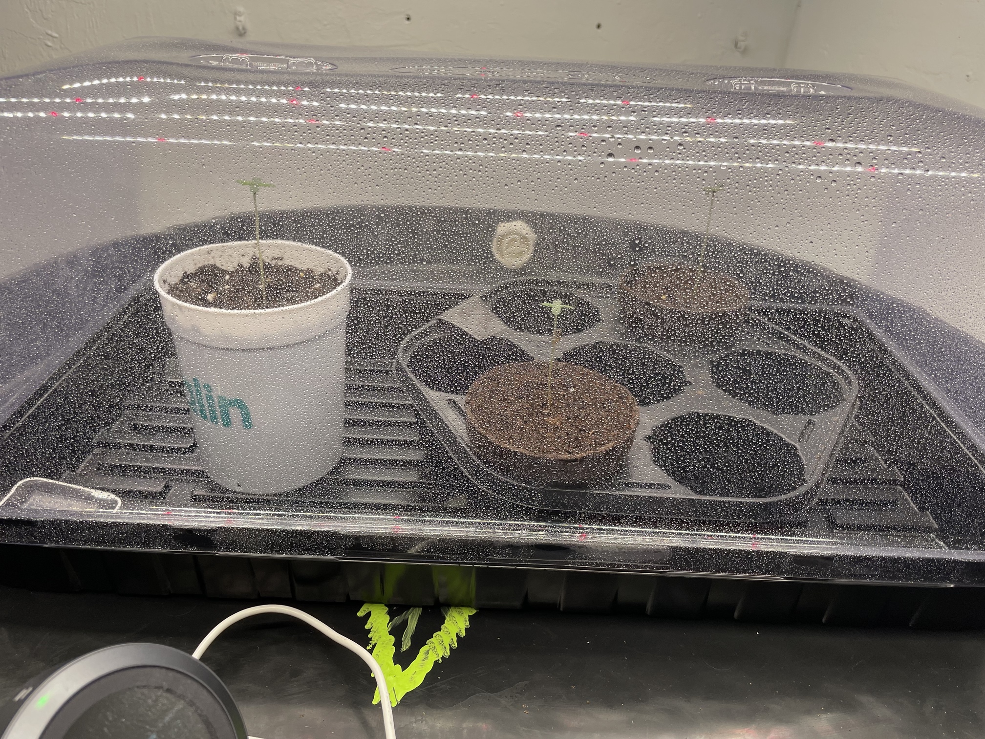 So I painted the floor, walls and ceiling with super bright white titanium paint. Dunno if this helps regulated temp & humidity, but apparently this white flat paint reflects more than Mylar… do not know how or agree really but W/E… just started my second grow with purple ghost candy and white widow. Seems they are stretching bc of heat too high or light not close enough/bright enough…? Will be a learning experience unless you know the optimum temp & humidity inside the dome, when to remove dome, and the temp & humidity in the room after it has no dome…?