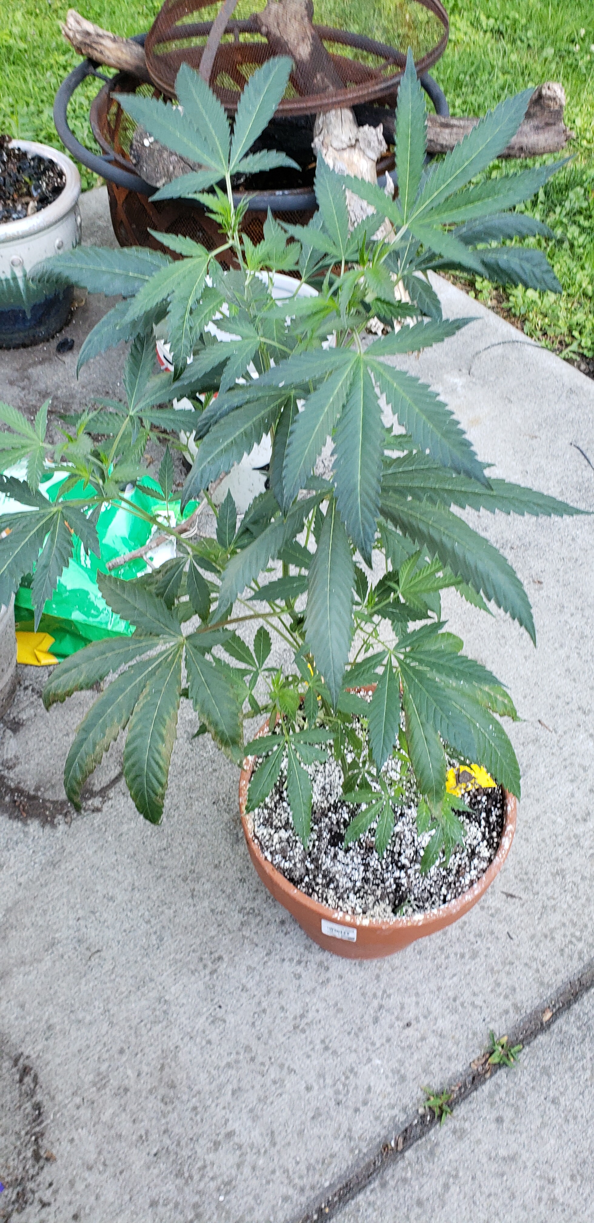 Over the next week I killed bugs with neem, DE, no watering, and sticky strips. At this point the plant had healed well and didn’t look too bad for being snapped in half. I repotted the plant to a standard clay pot of the same size, during the process I lost some roots as the person who helped me repot it was very aggressive with my plant. The plant didn’t really experience any transplant shock though and it seemed fine for now. The leaves were dark green and I did see some clawing though. I figured that this could be nitrogen toxicity due to the high N result from my soil test.