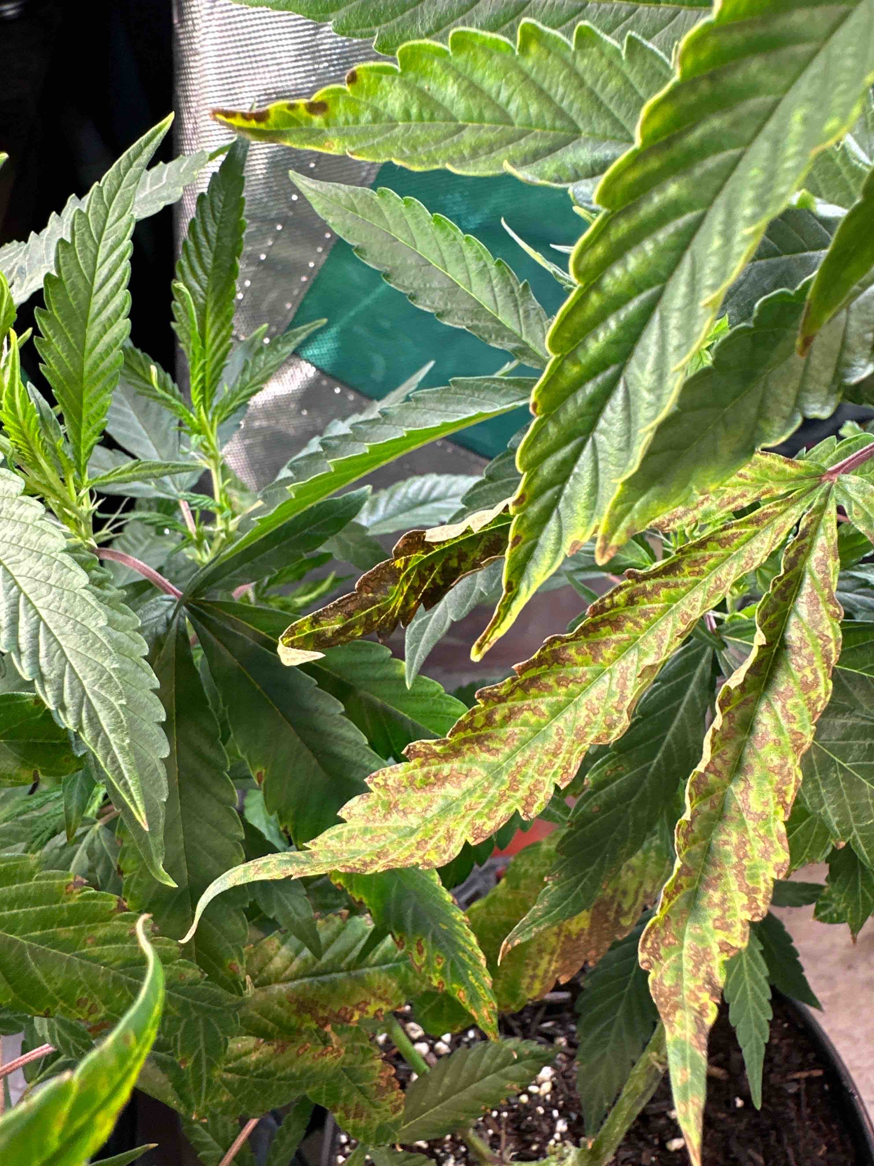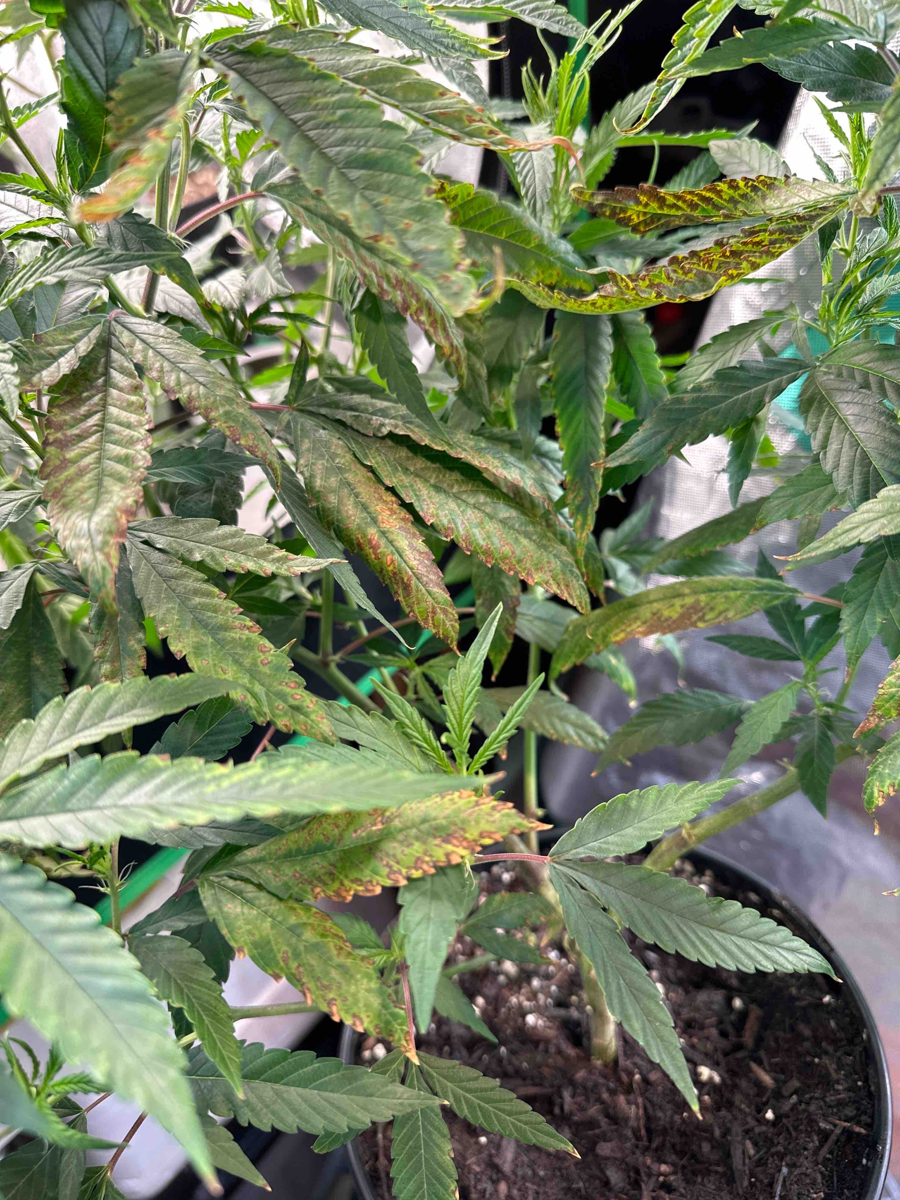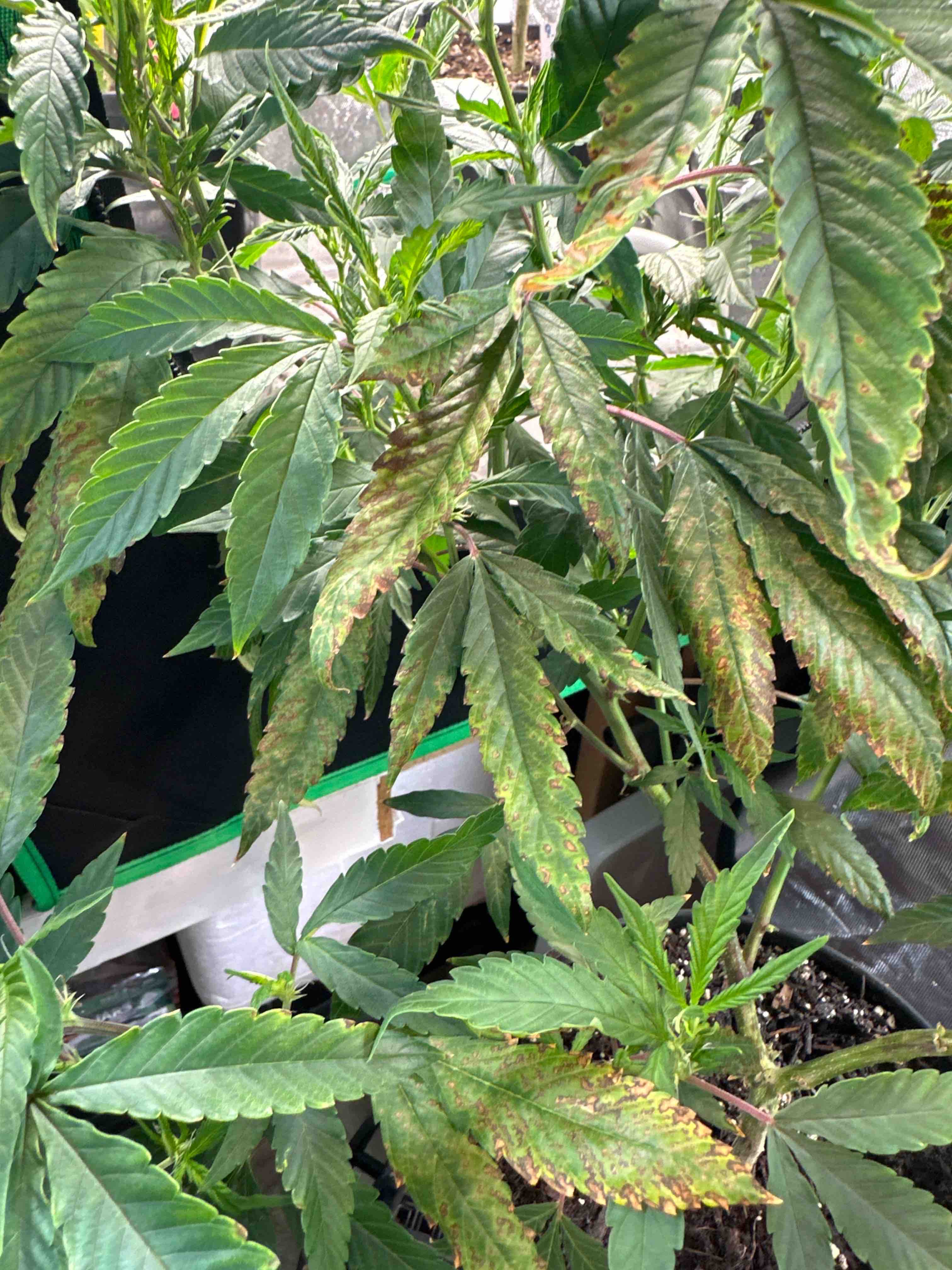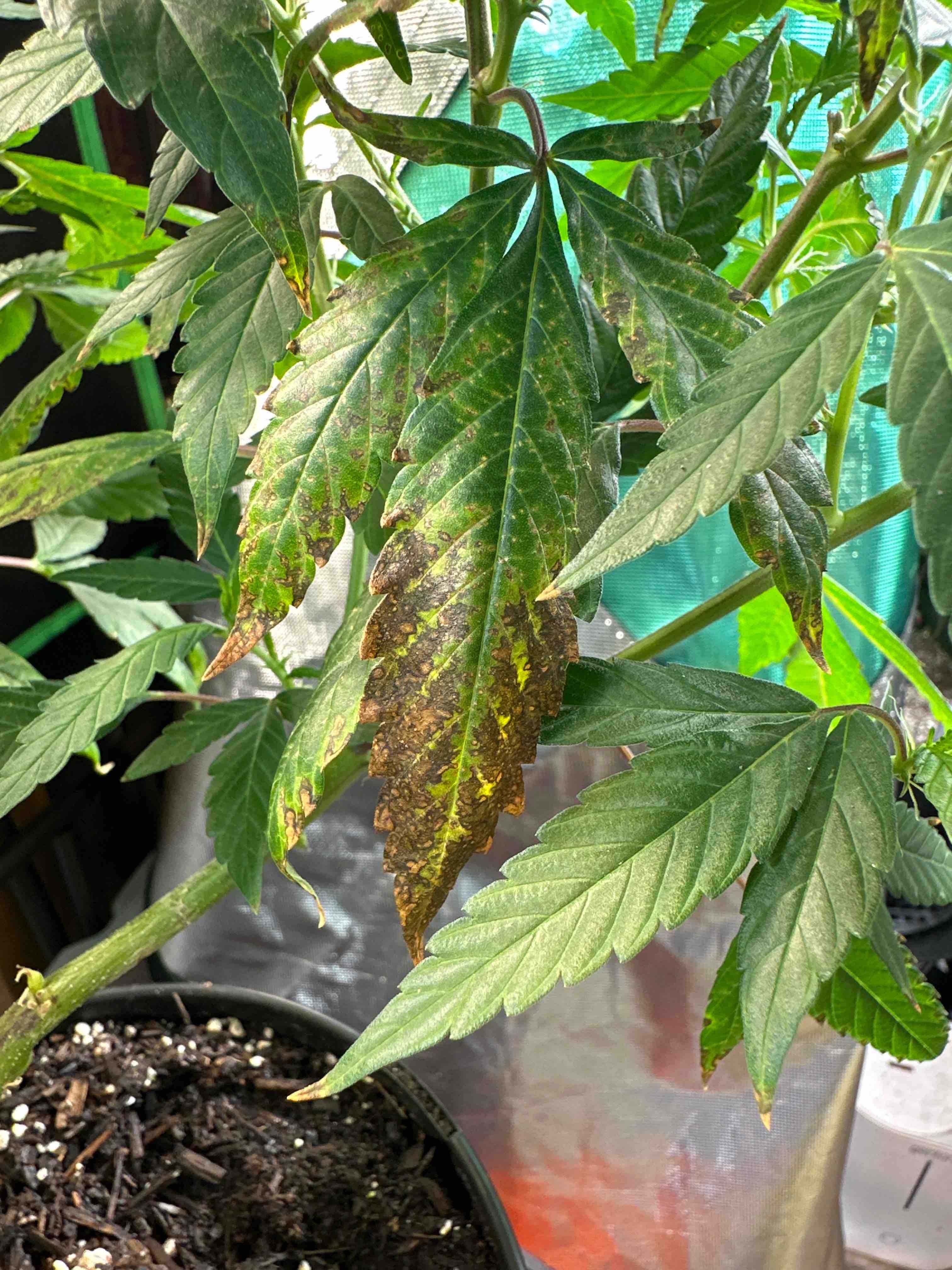 This is my second run with these girls (clones from the original run). I just recently transplanted to 3 gallon pots and 2 plants started to show necrosis on the leaves shortly after transplant. Not sure if this is a deficiency or nute burn.
