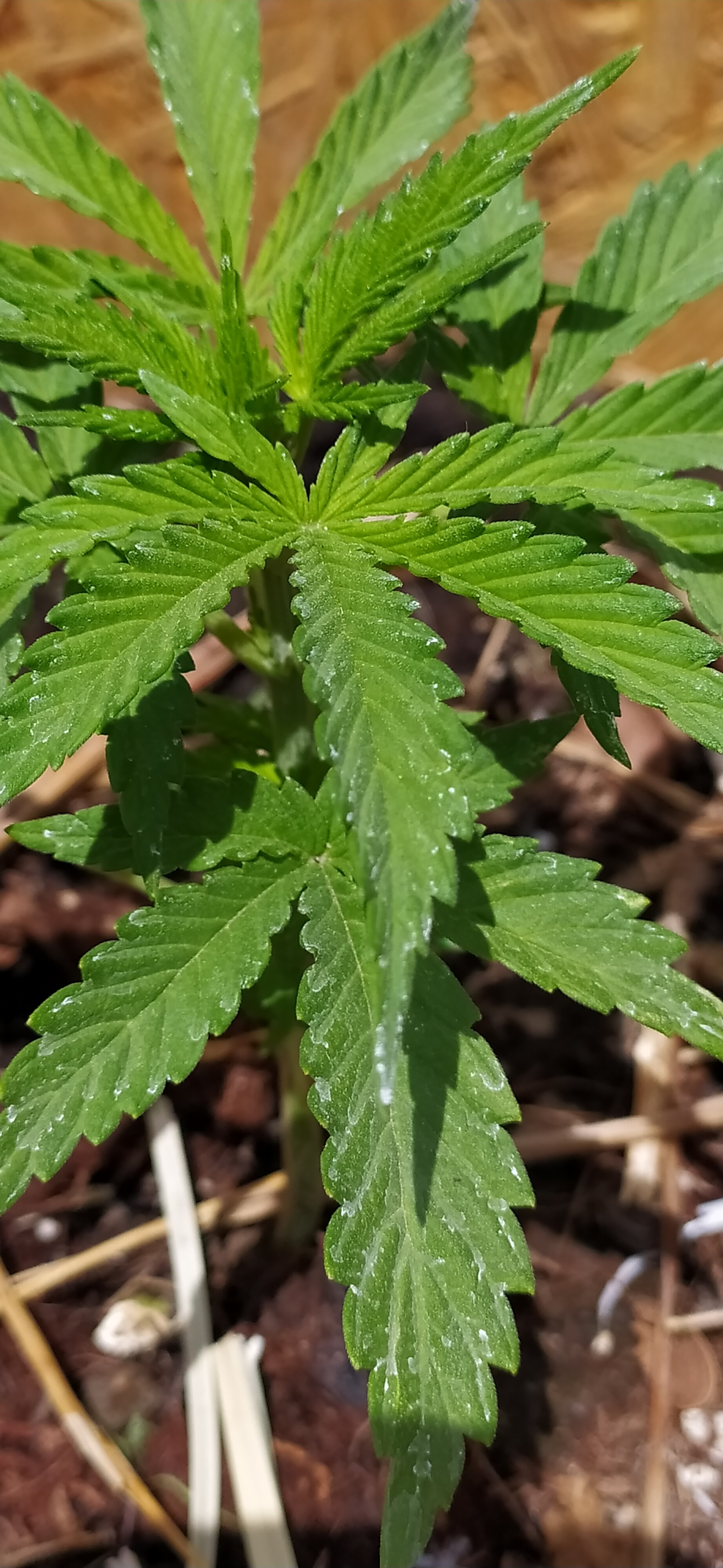Hola, bienvenido. Esas son sales del agua. Te recomiendo que no las riegues en las hojas con agua, ya que, en efecto, pueden causar hongos como el oidio, mildiu, moho, entre otros. Para prevenirlos es necesario evitar regar las hojas con solo agua, debes aplicar productos fungicidas, pueden ser naturales como los extractos de ajo, canela y chile, incluso aceite de neem, estos se pueden aplicar cada 3 días en la etapa vegetativa (aplicar solo cuando se meta el sol y cuando no haya viento) , antes de que las plantas florezcan, ya que si se aplica durante la floración se puede quedar humedad aculumalada, entre las flores, con la que se pueden desarrollar hongos. Los extractos te pueden ayudar tambien para ahuyentar otras plagas como la mosca blanca, trips, araña roja, cochinilla, pulgón, minador, saltamontes, etc… Ahora, trata de regarla cuando la tierra esté seca y con una cantidad maxima de 250 ml por ahora, por lo que veo esta siendo regada con mucha agua, y trata de quitar toda la materia orgánica que no esté compostada, así como hierbas que no sean utiles en el cultivo. Procura usar un sustrato suelto, como los de fibra de coco, turba, mezclados con perlita, humus de lombriz, etc… Para que haya un buen drenaje y buen desarrollo de las raices. Abona cuando la planta lo demande, fijate si hay cambios de color en las ramas viejas o en las más nuevas. Estos son mis consejos para empezar, puedes explorar el blog de Grow With Jane. Saludos.