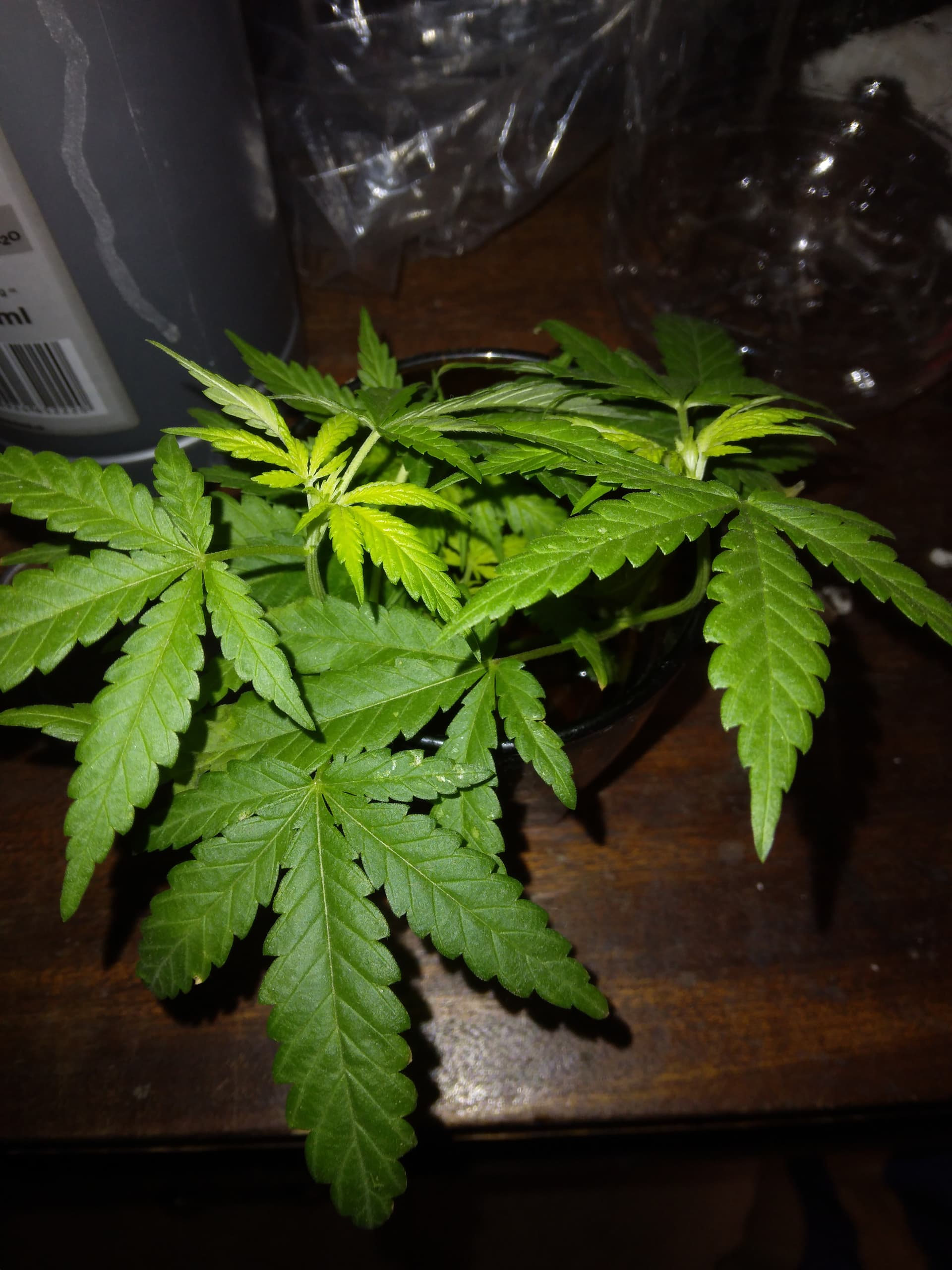 @Crackadoo and @Nelson gave good advice, transplant into a larger pot, consider topping it to encourage lateral growth. the last thing for a larger plant is More Light.
