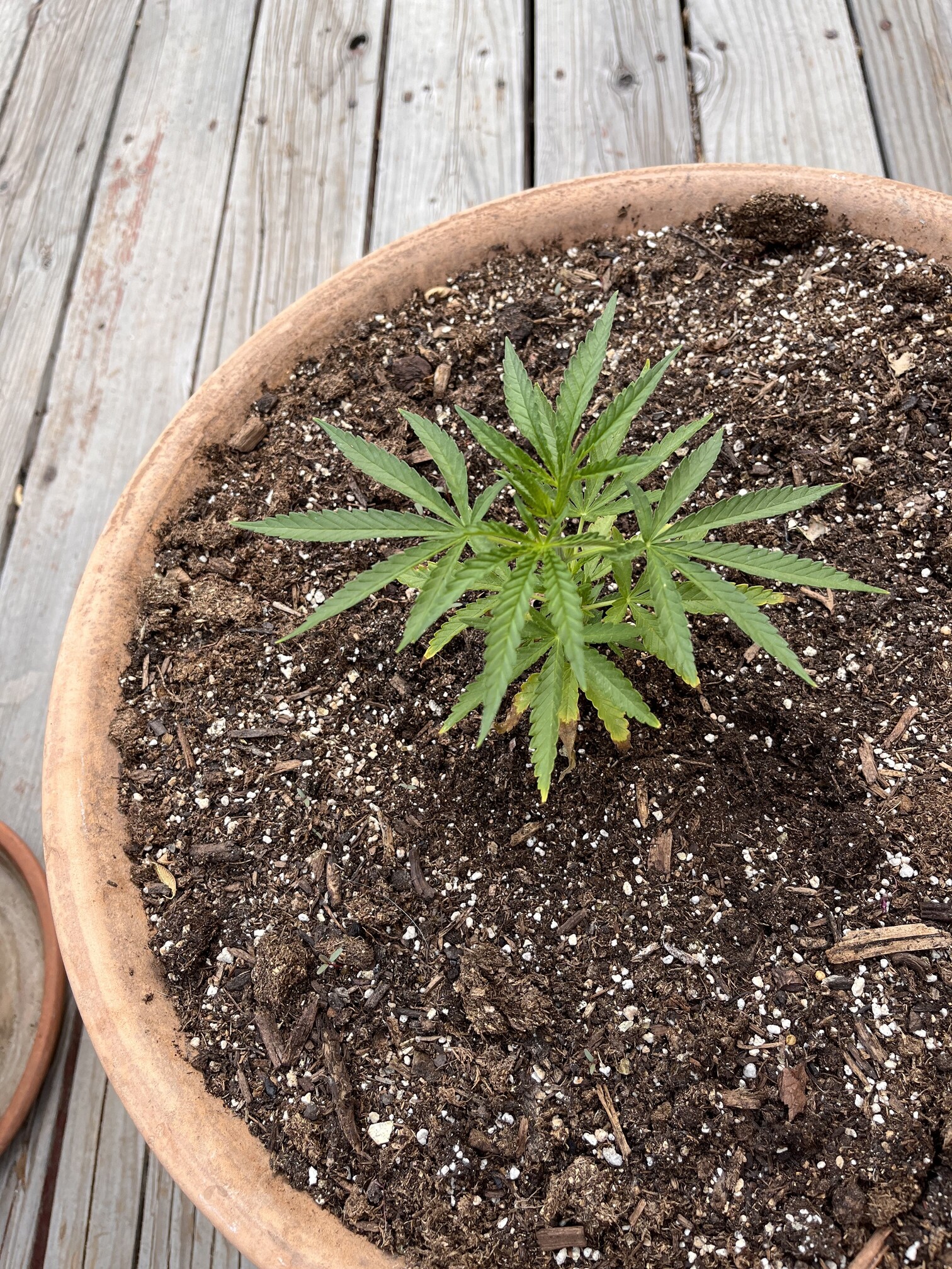 but i also agree with the above, if you arent using an enriched soil (ie with nutes) then its time to start feeding, could be she’s just hungry.