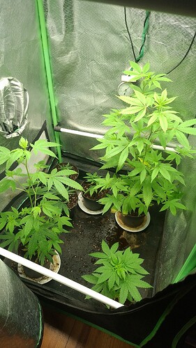 Looking good guys I actually think I’m gonna get some of me very own first time home grown goodness this round, by the way there growing I’d say the front 2 are the Cosmopolis an the far back on is the king sherb, the king sherb is growing very sativa like with the tall lanky vertical growth, cool difference so far, also started quarter strength bloom nutes.