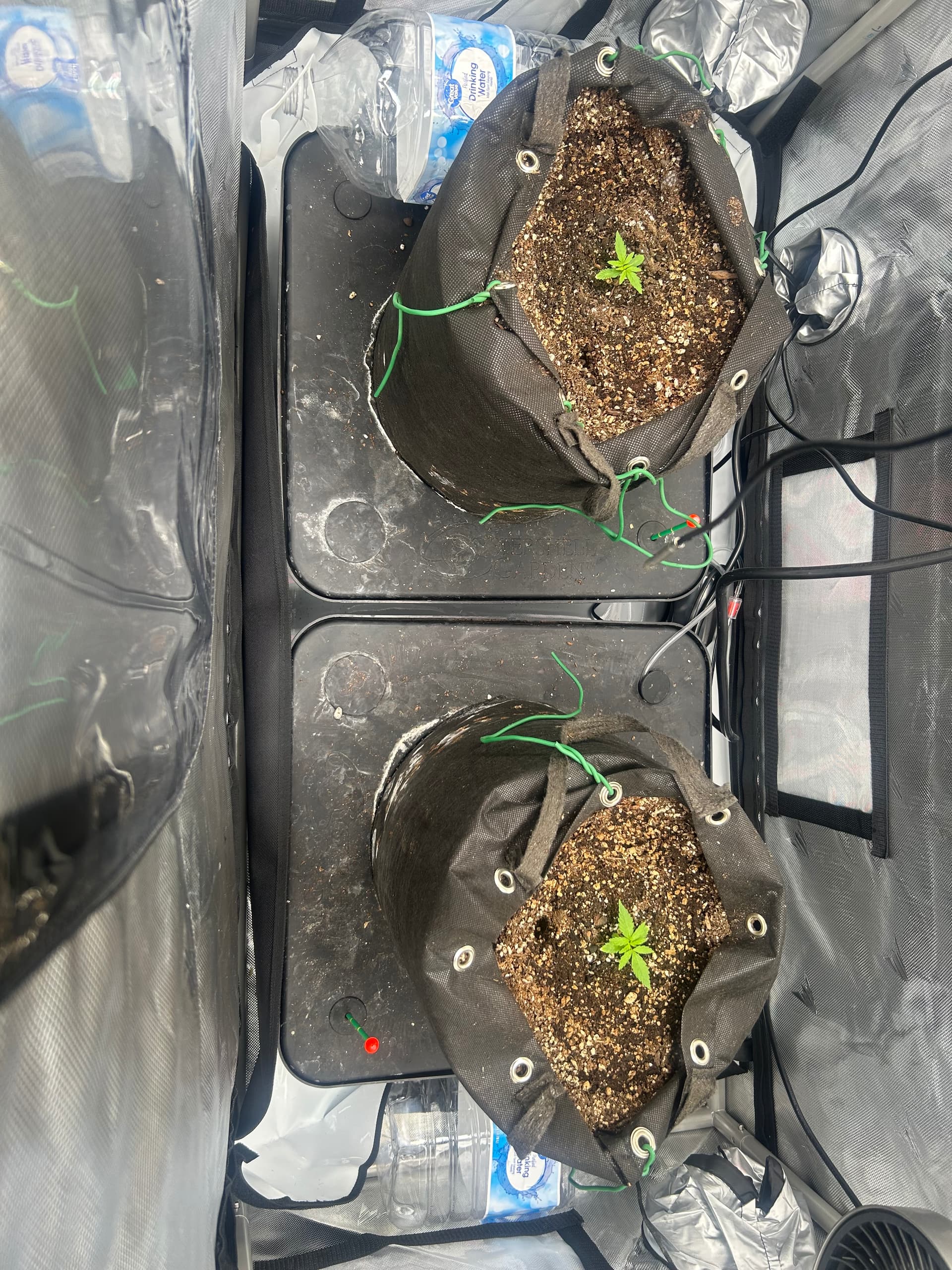 First week in on my first coco grow. Still need to add the co2 bag and start foliar feeding but so far so good. I must say, this royal gold tupur coco seems really nice. Itâs my first time using coco so canât compare to any others but seems to be really good quality