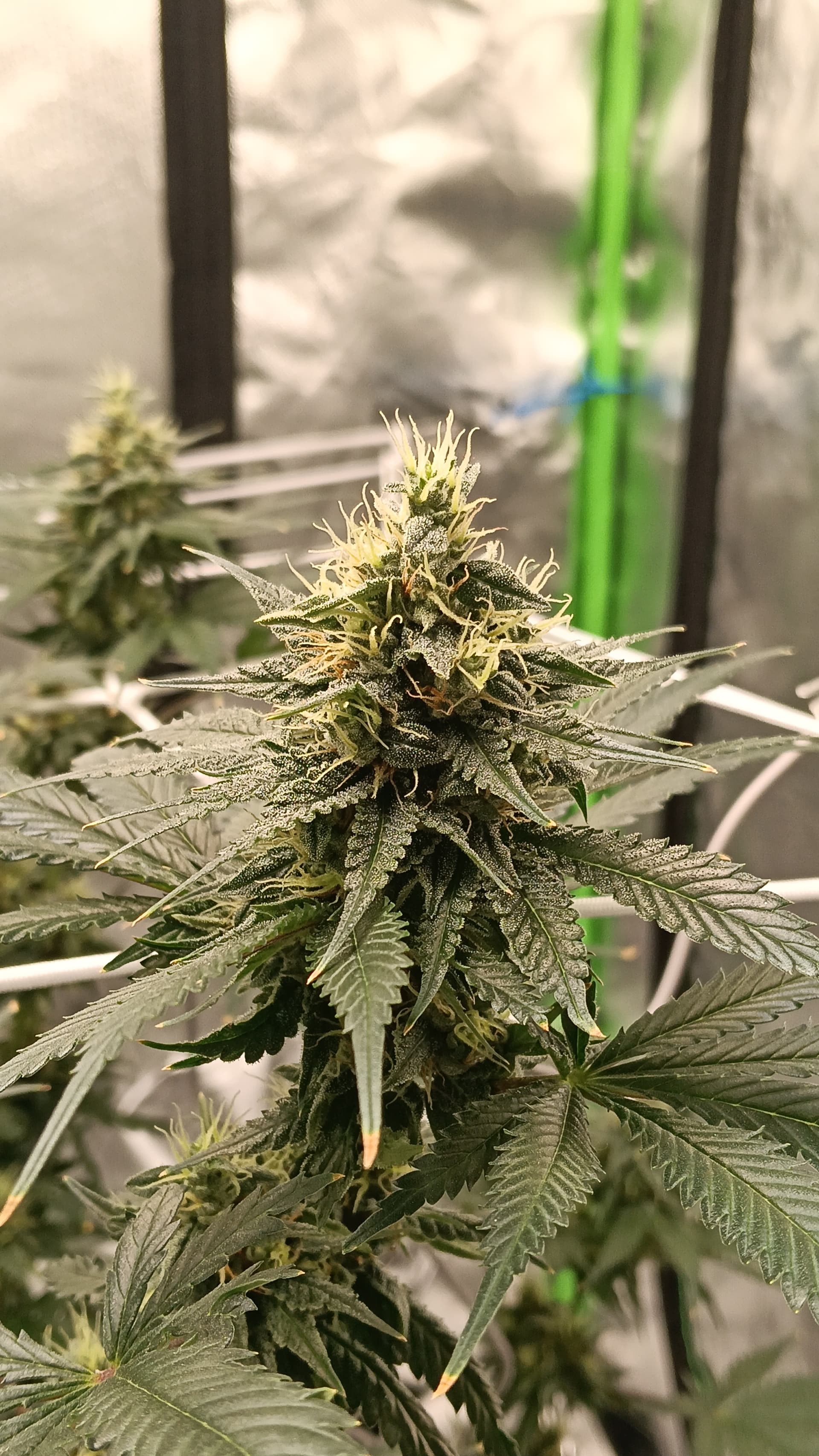 Noticable thickness like every day and pistils starting to orange, the thick coat of trichome on the leaves increasing day by day so cool to see, few more weeks and I think I’ll be ready for harvest.