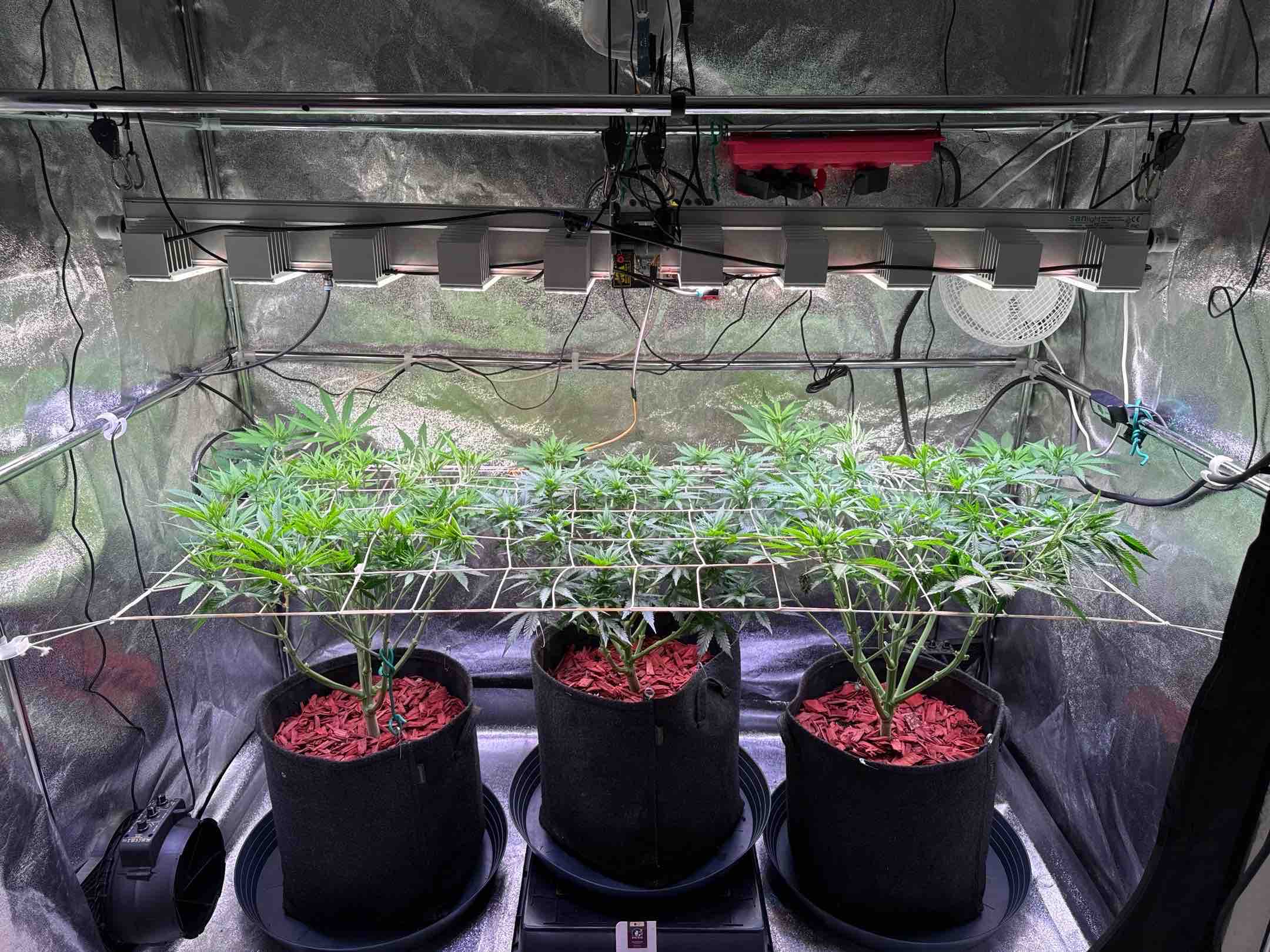 As I cancelled my plan to add a third source of light, I’ve changed their orientation for a better homogeneity. I’m trying to be careful not to burn my babies with the stretch, running at about 1000 PPFD at base of canopy.