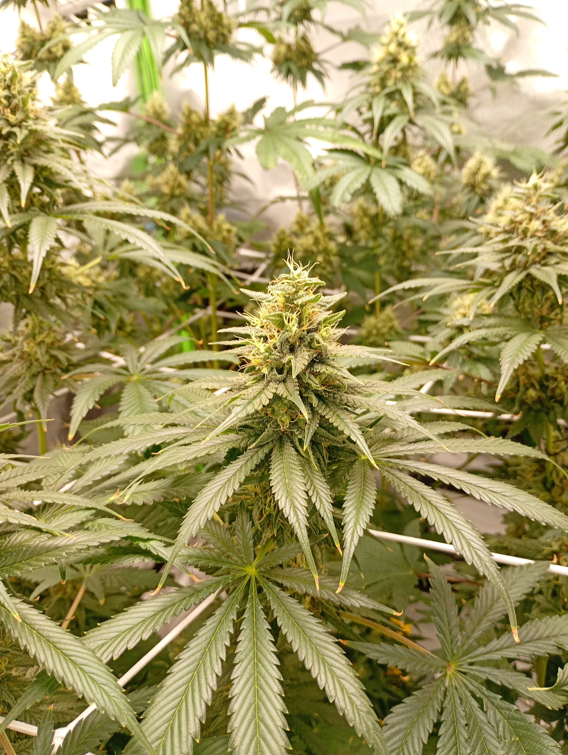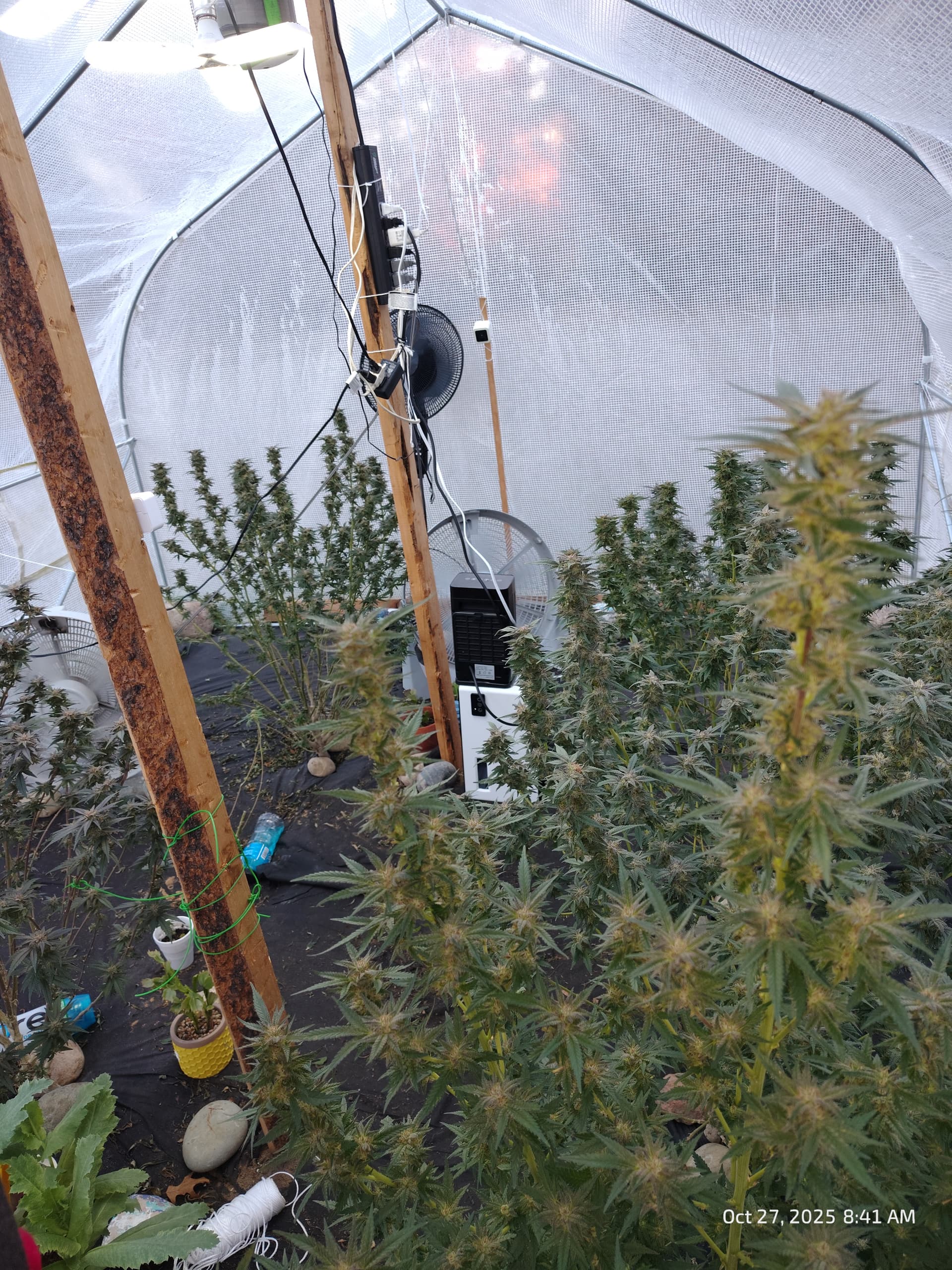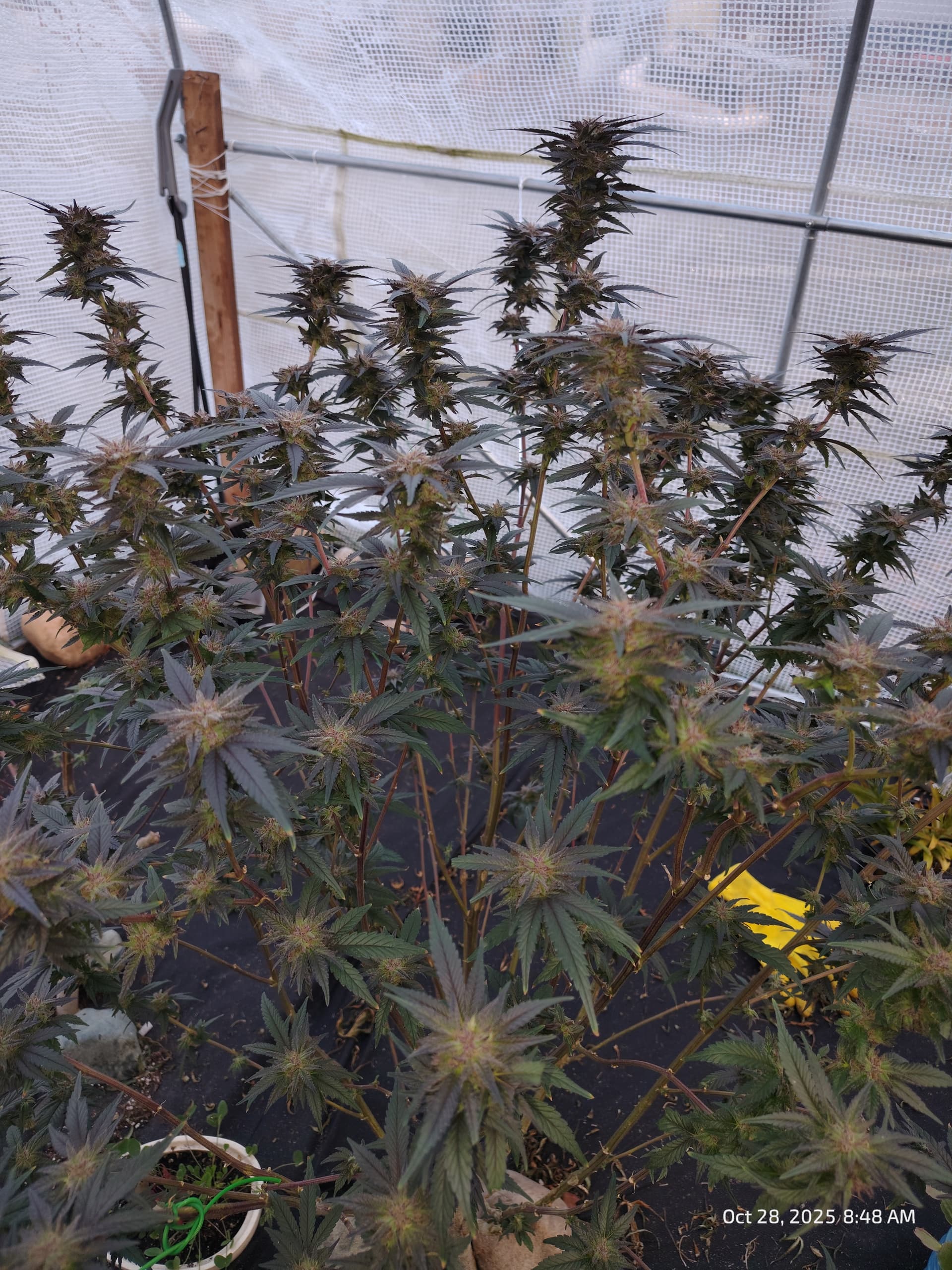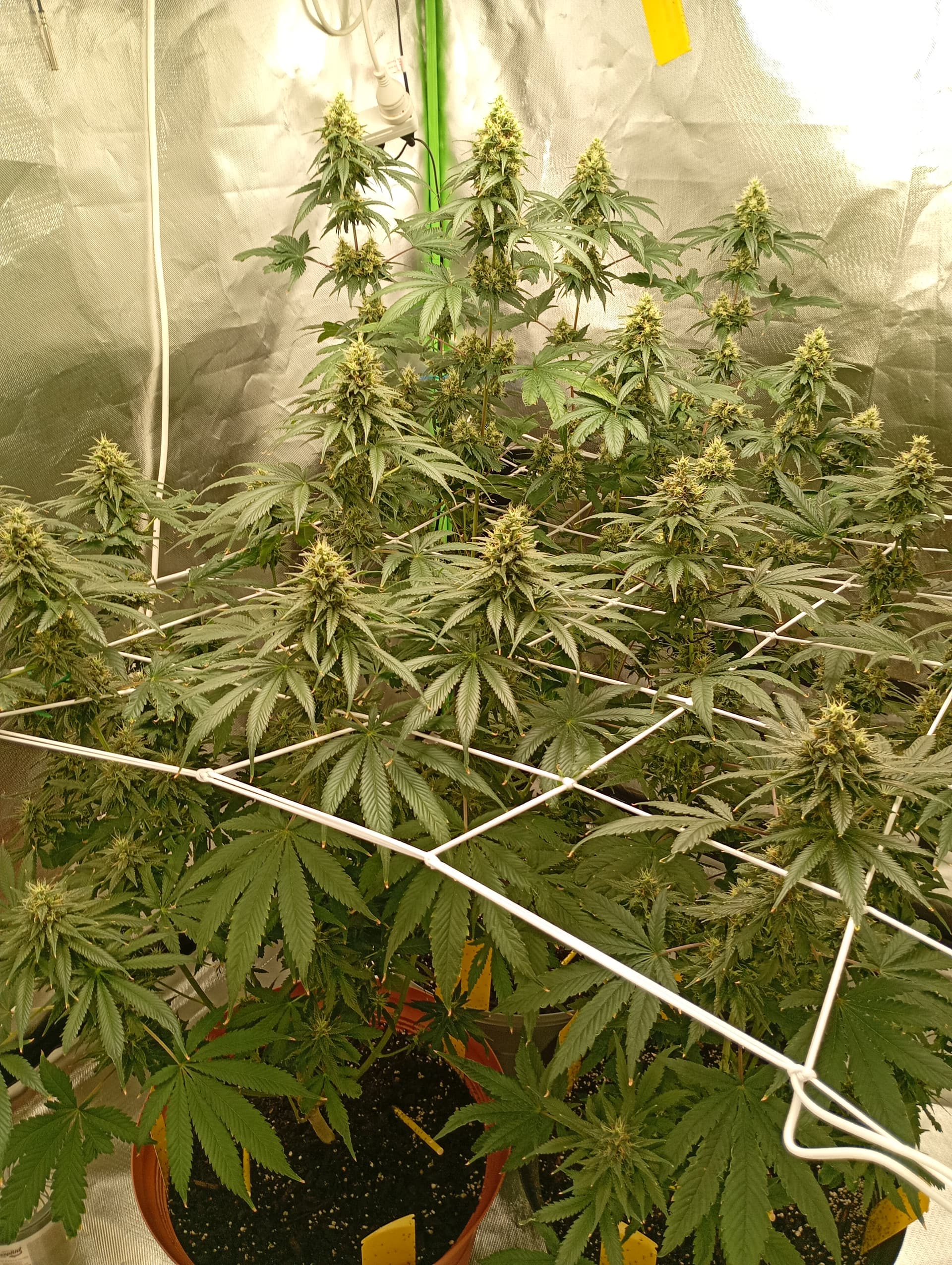 Behind them, flowering for Purple Zkittlez 2 with the roof damage begins tomorrow.