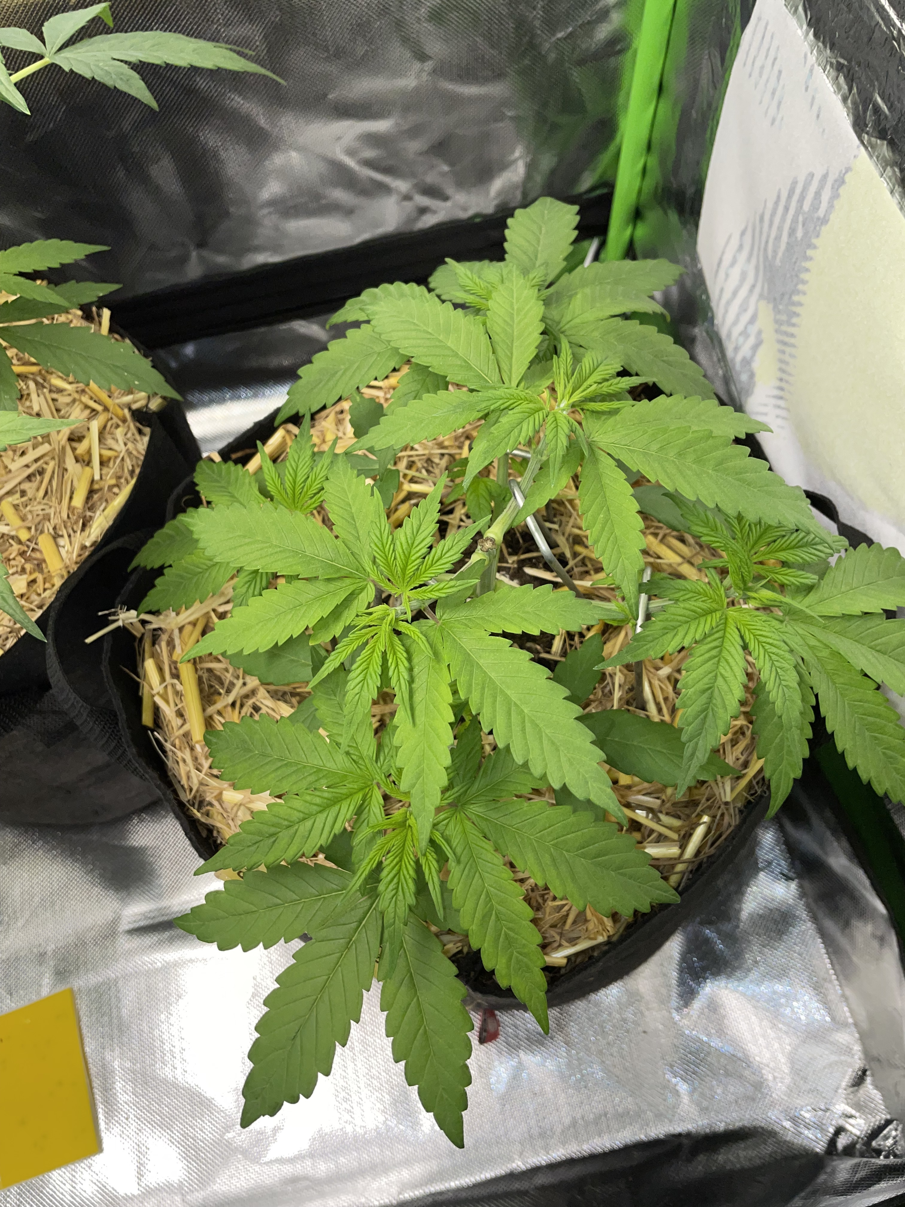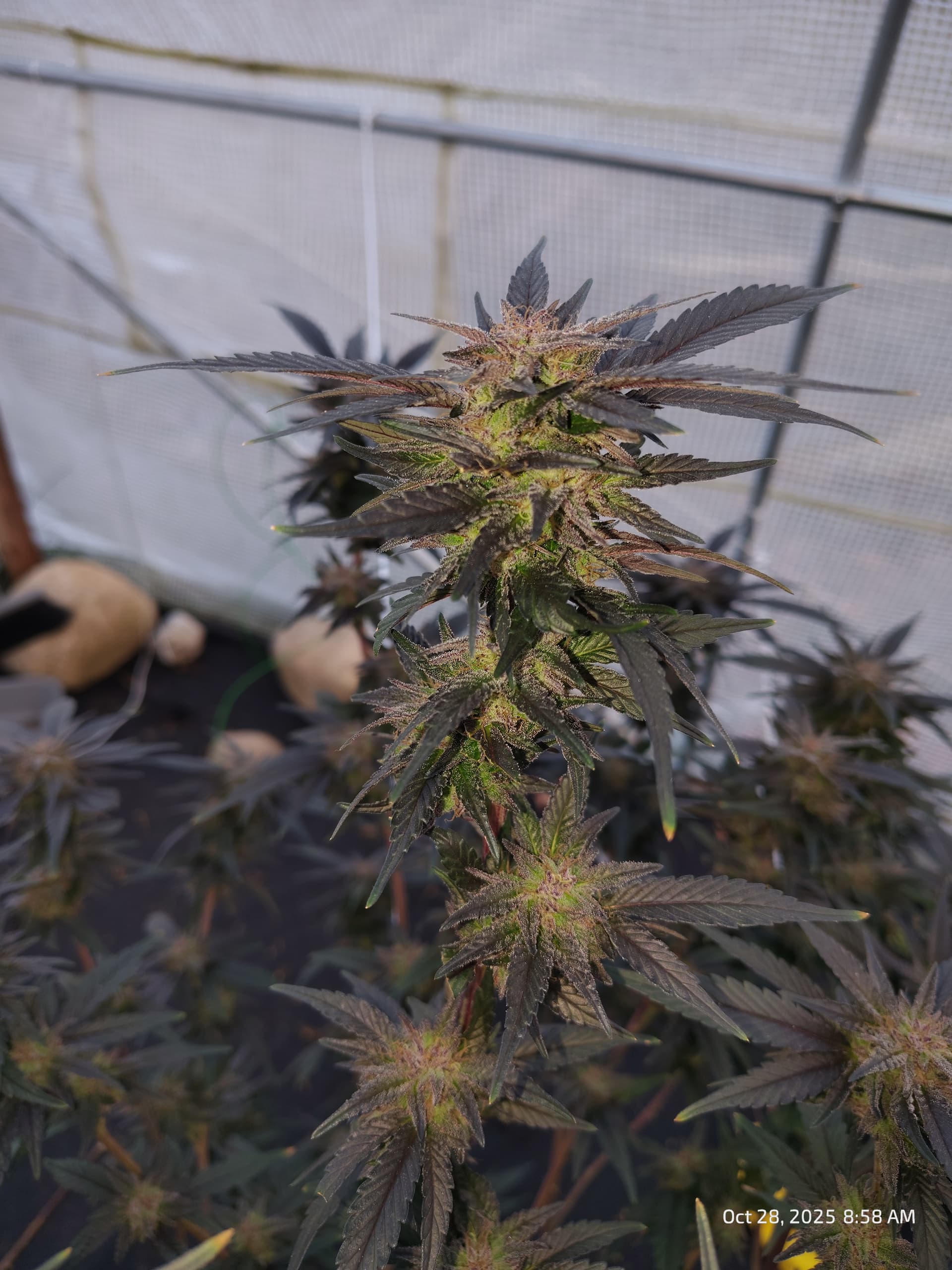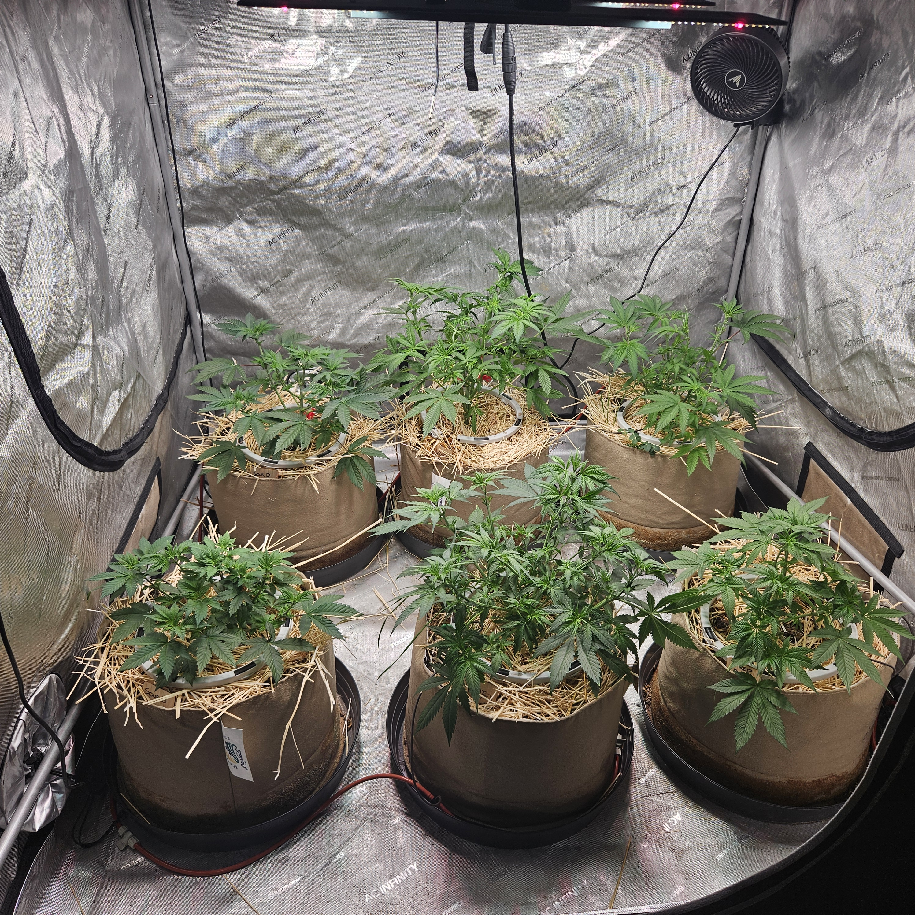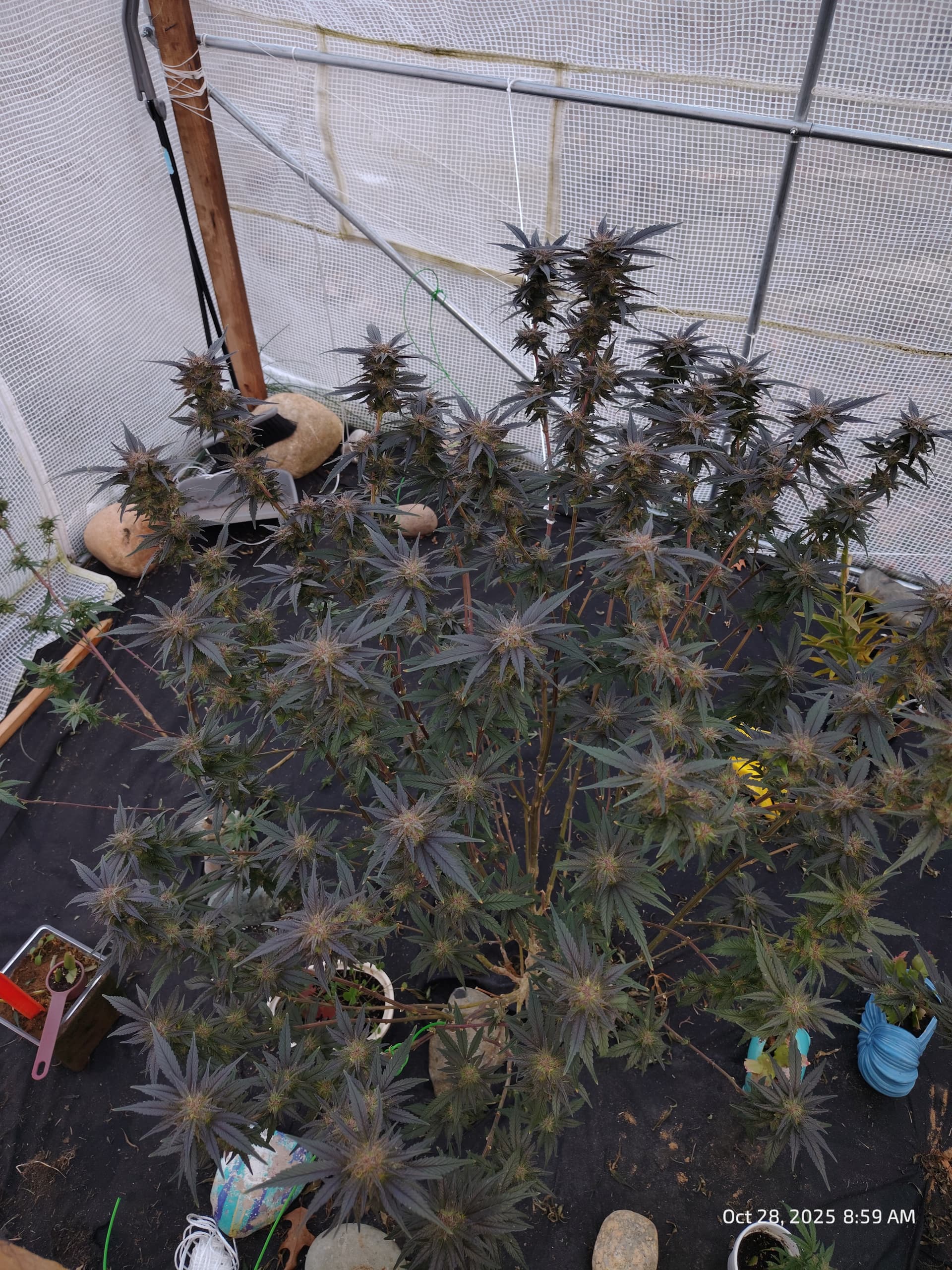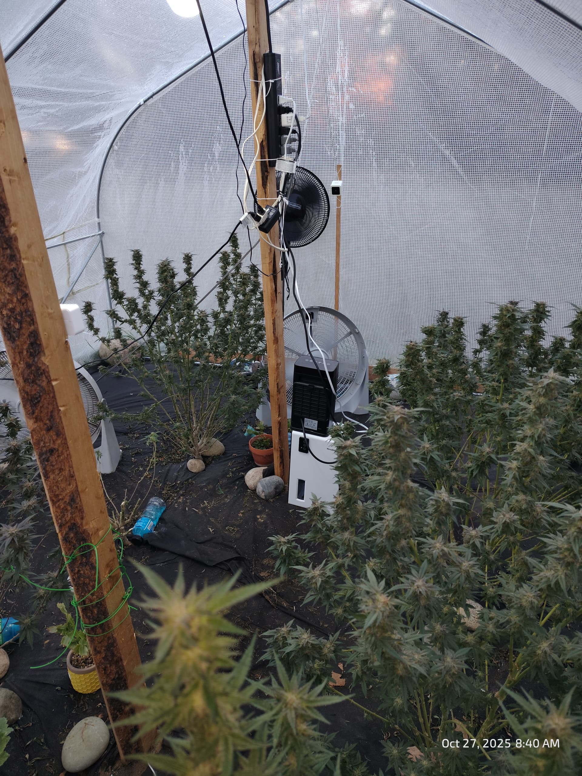 Behind them, flowering for Purple Zkittlez 2 with the roof damage begins tomorrow.