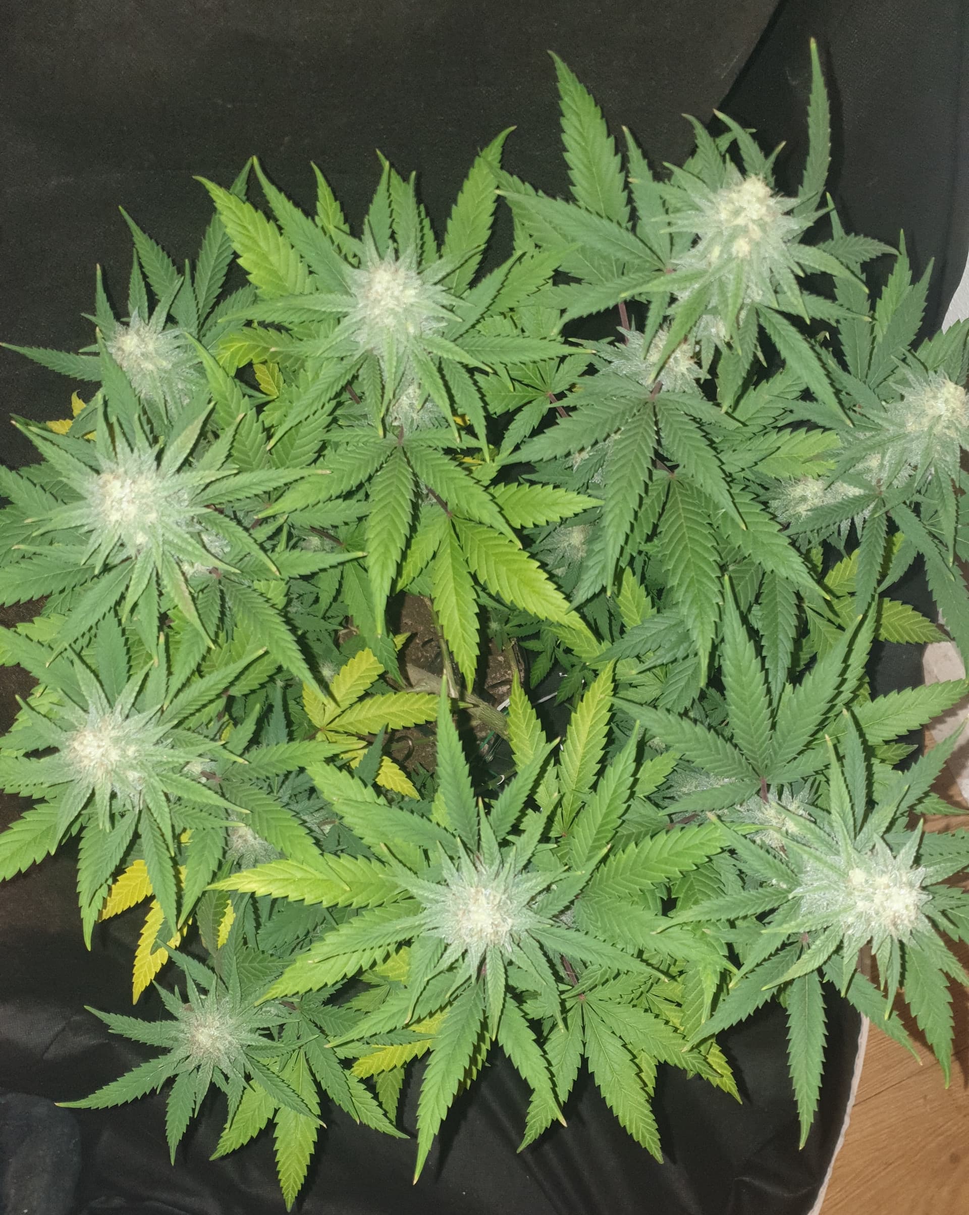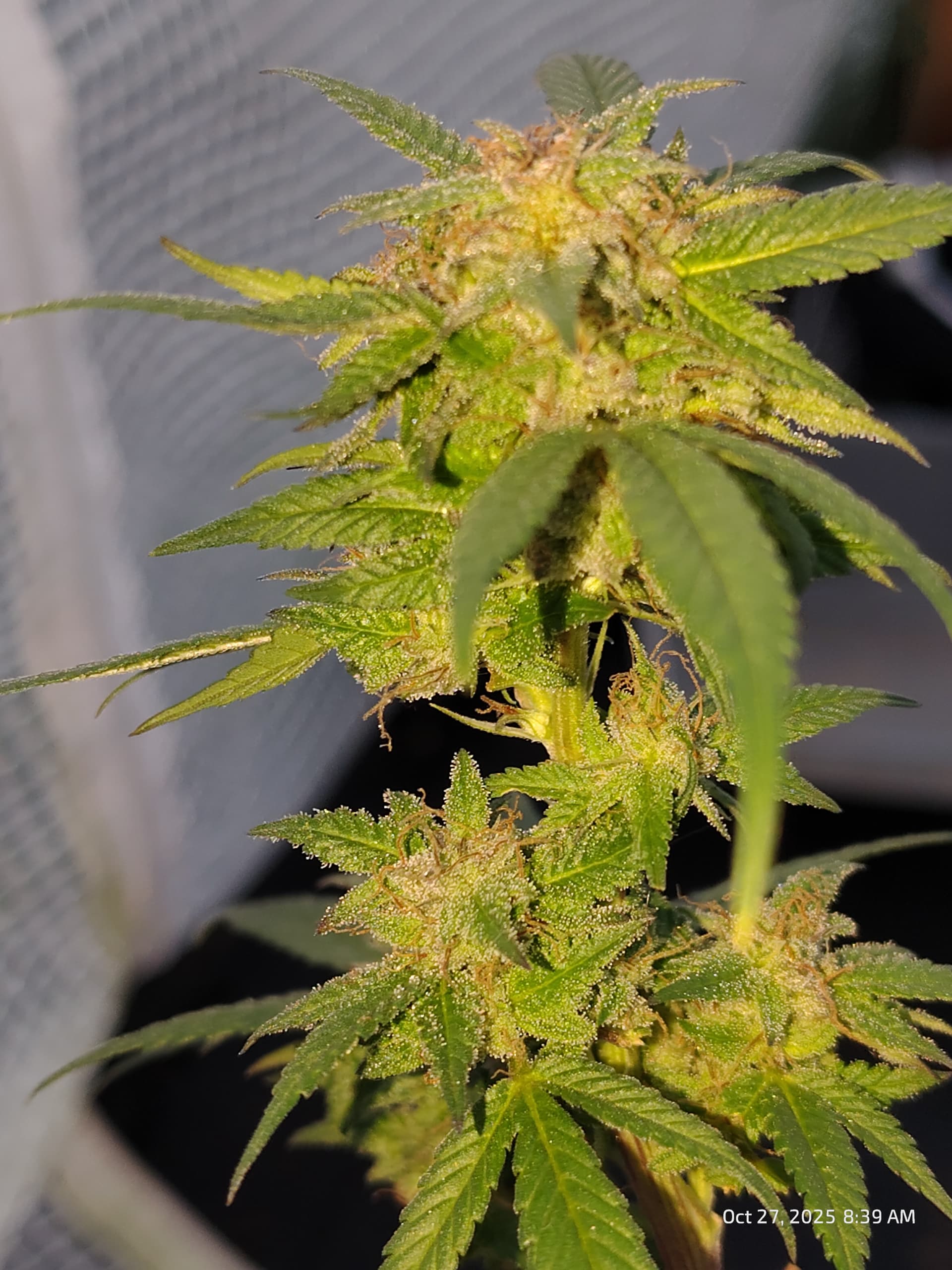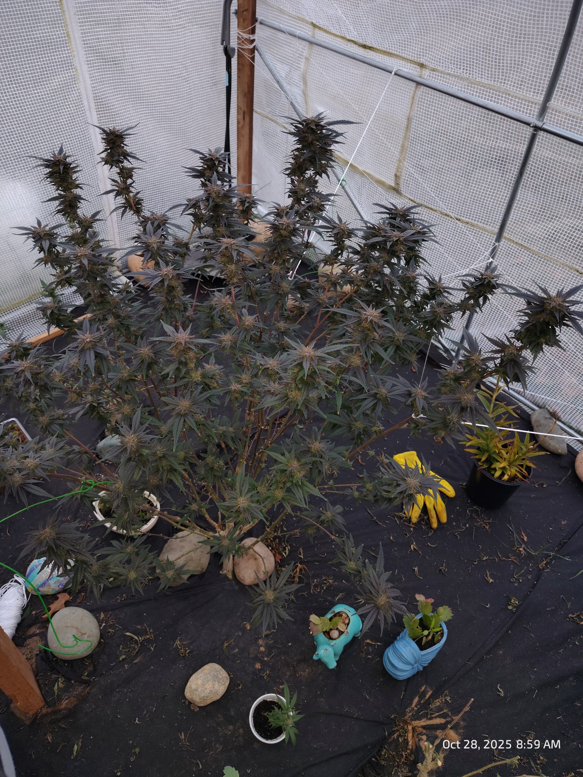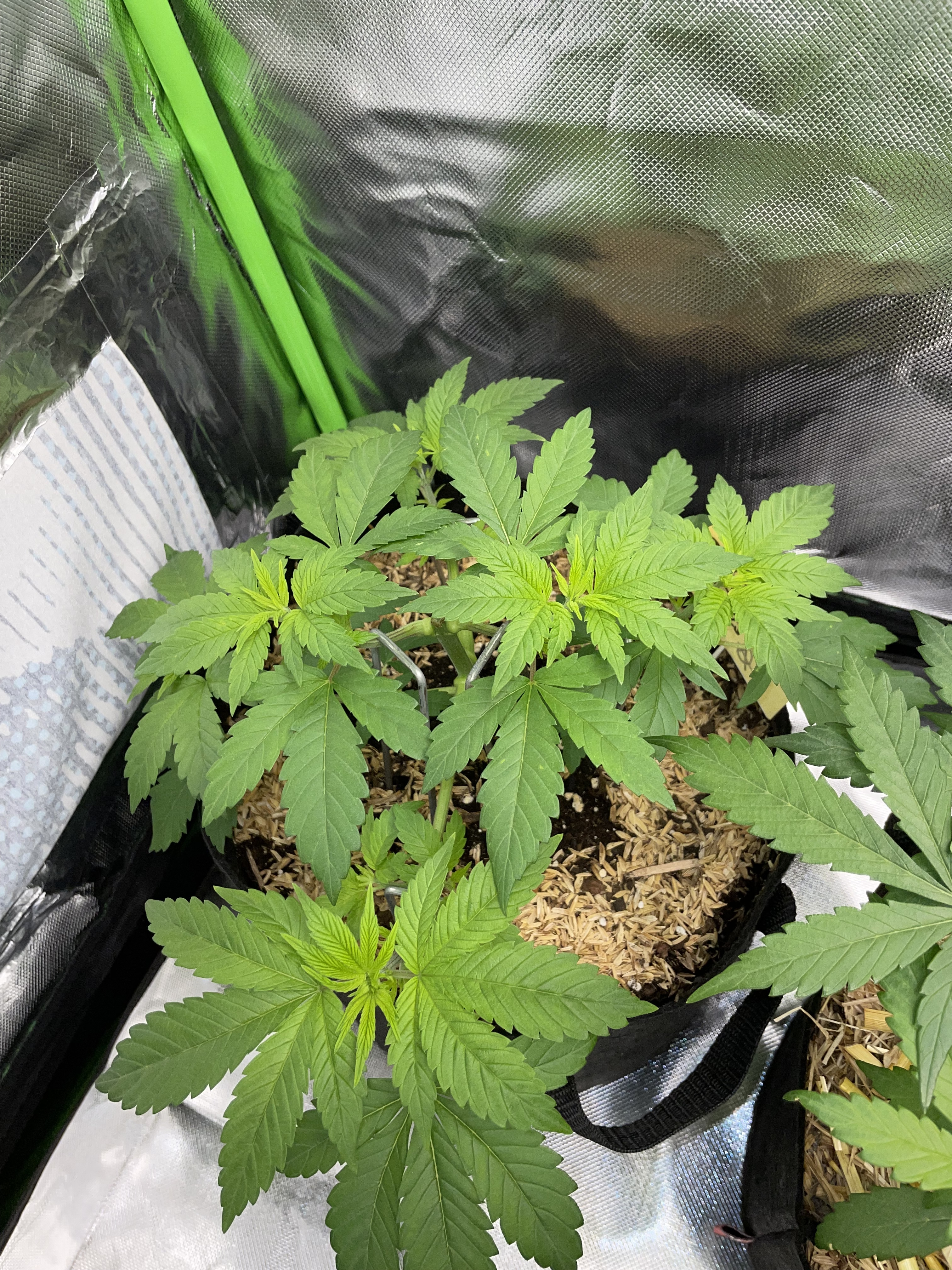 Behind them, flowering for Purple Zkittlez 2 with the roof damage begins tomorrow.