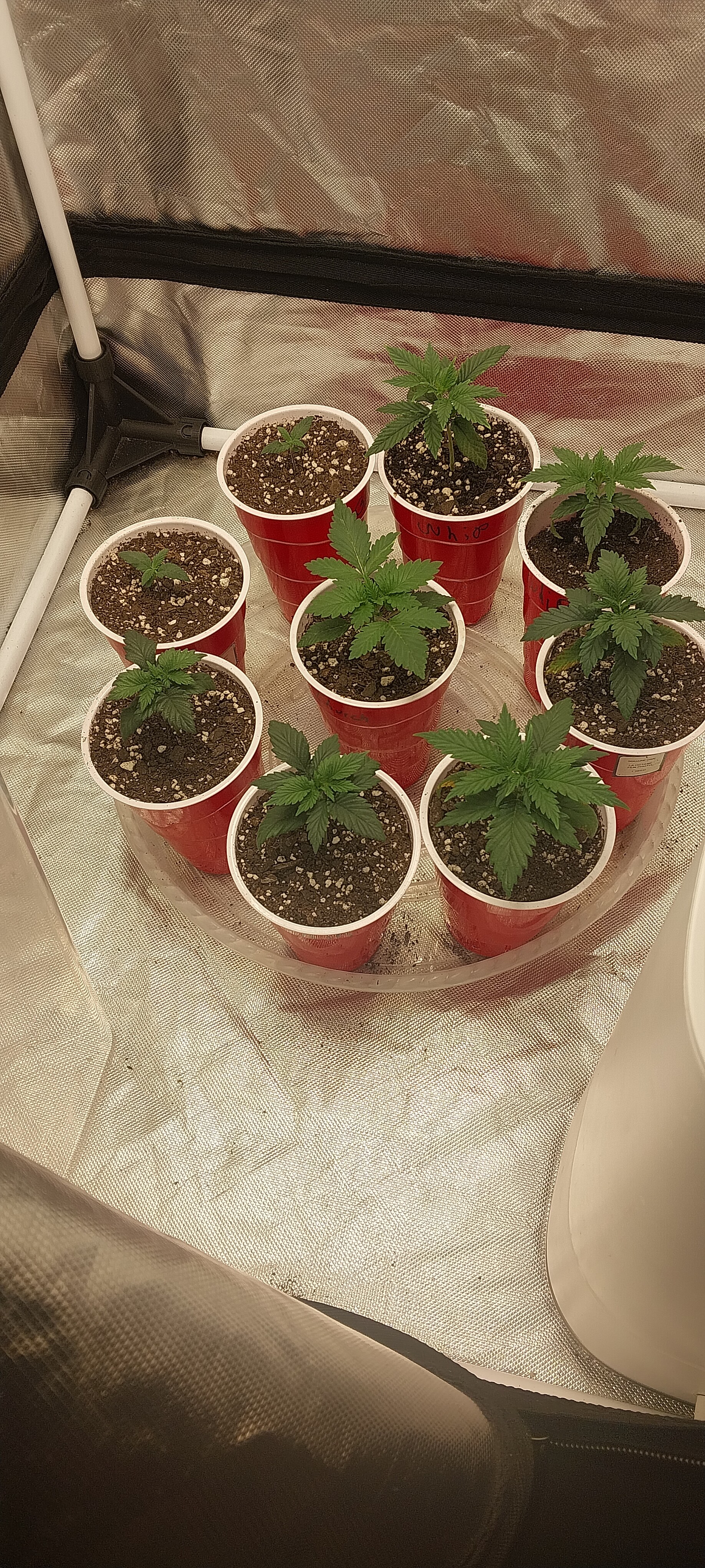 almost time for transplanting. besides the 2 wilderness kush and got the blumats setup and working properly now just to tidy up some shit and get the grow room going again lol. 2x unicorn whip,2x wilderness kush,1x rainbow unicorn,1x unicorn glue,1x chocolate unicorn poop,1x sour moose all dirty bird genetics and 1x the church by green house(center cup).