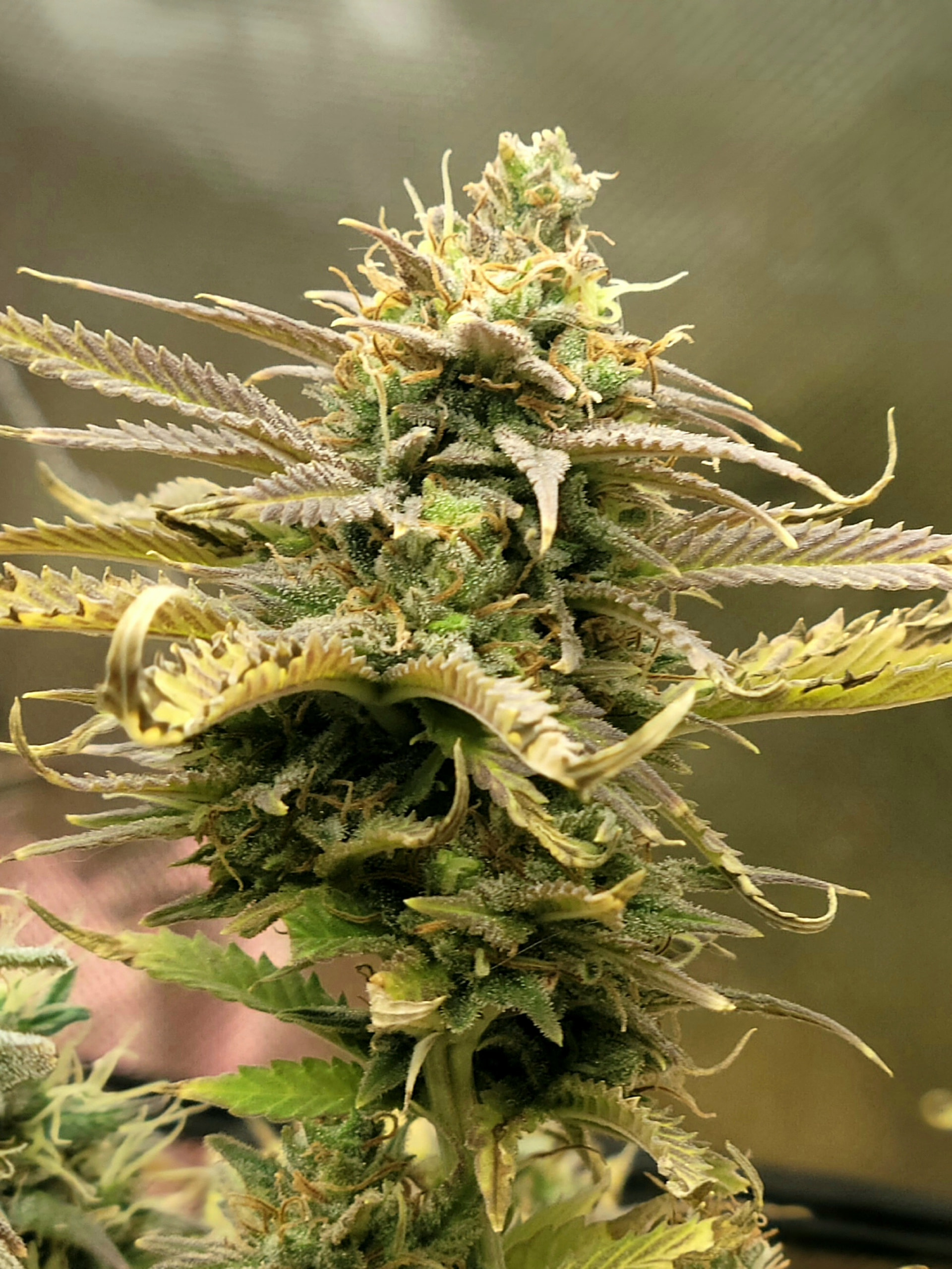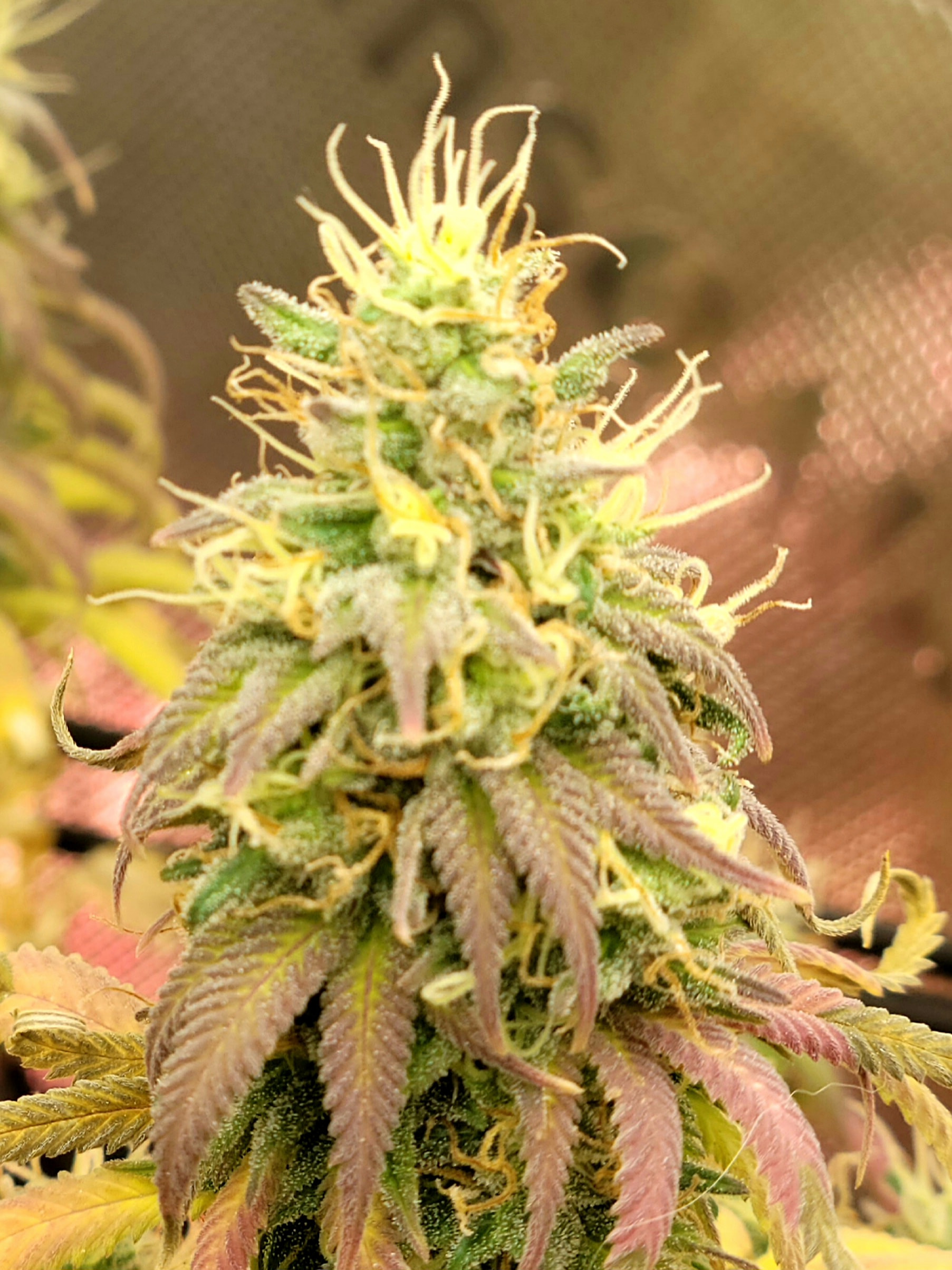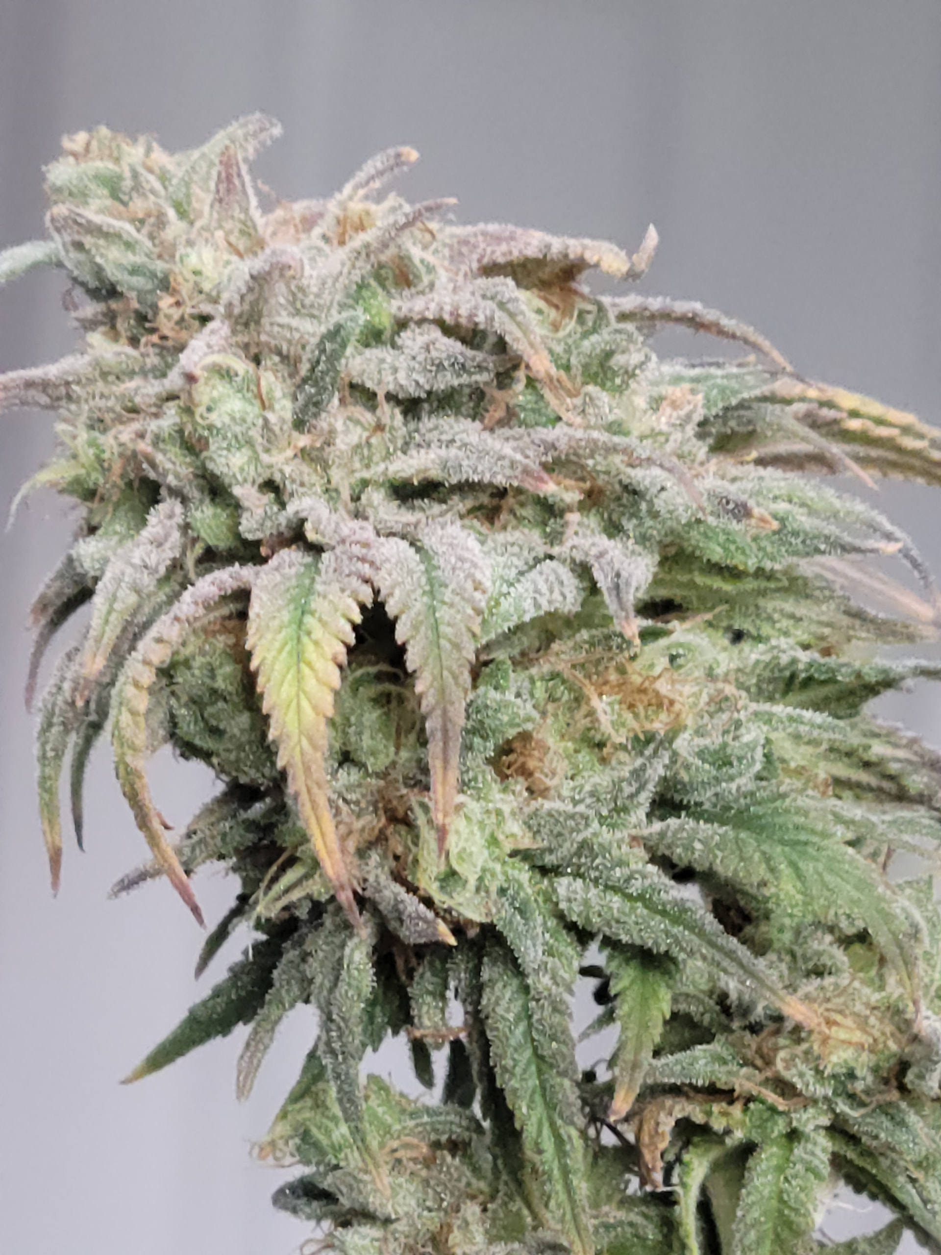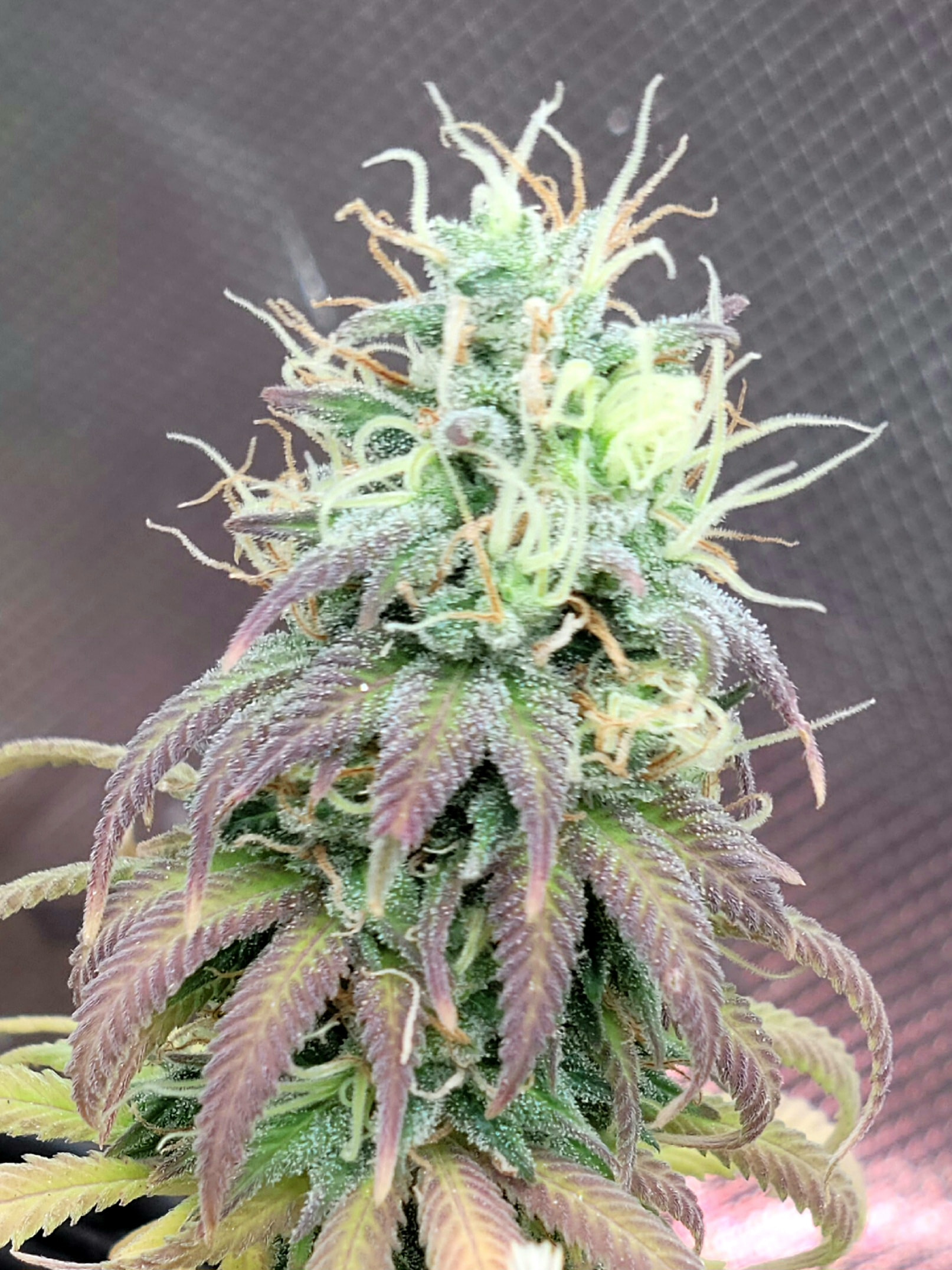Removed the dead and dying fan leaves. Readjusted the trellis for better light exposure and air flow. Buds are dense and sticky. Amazing citrus aroma. Buds are getting heavy any starting to fall over