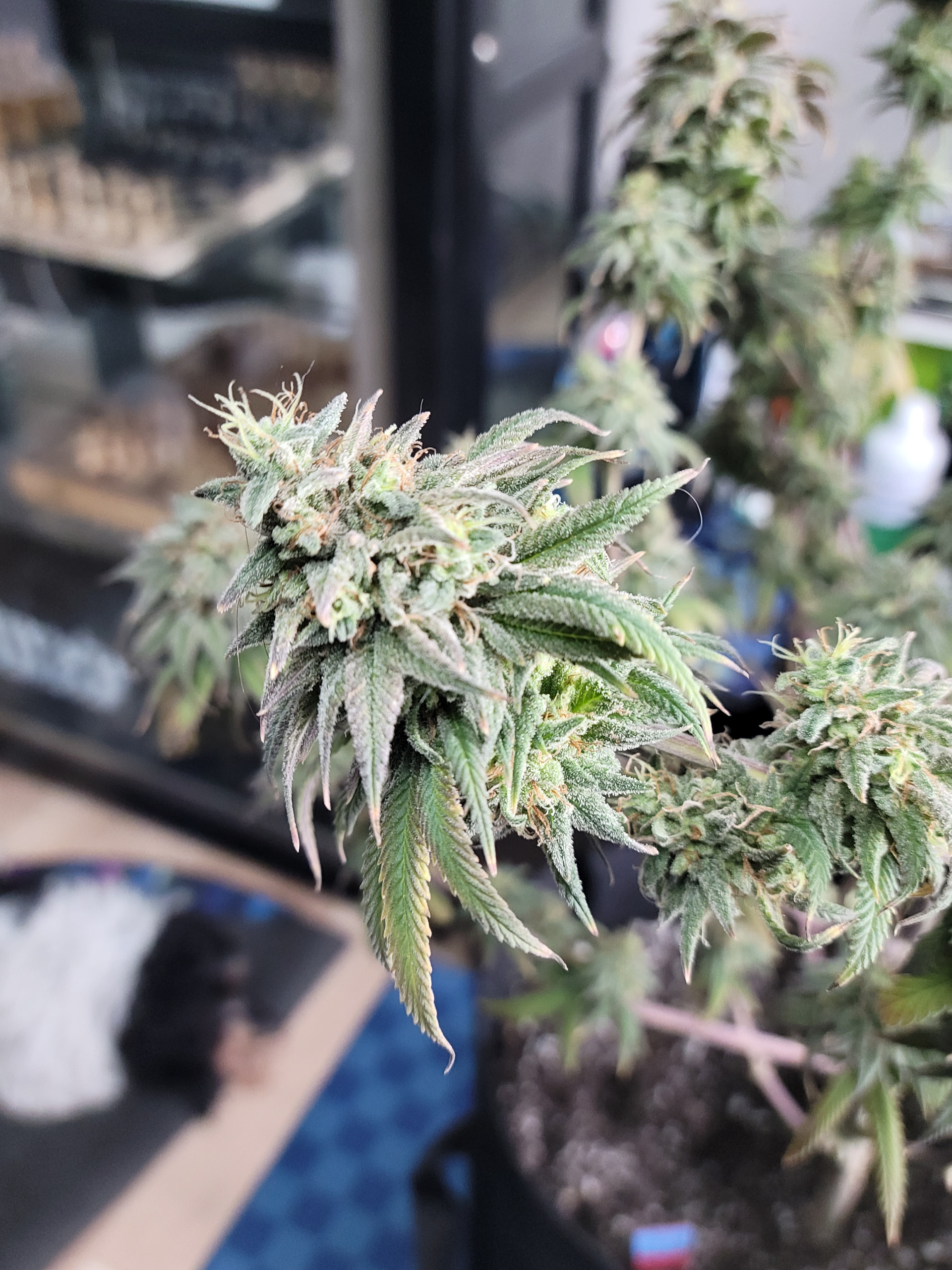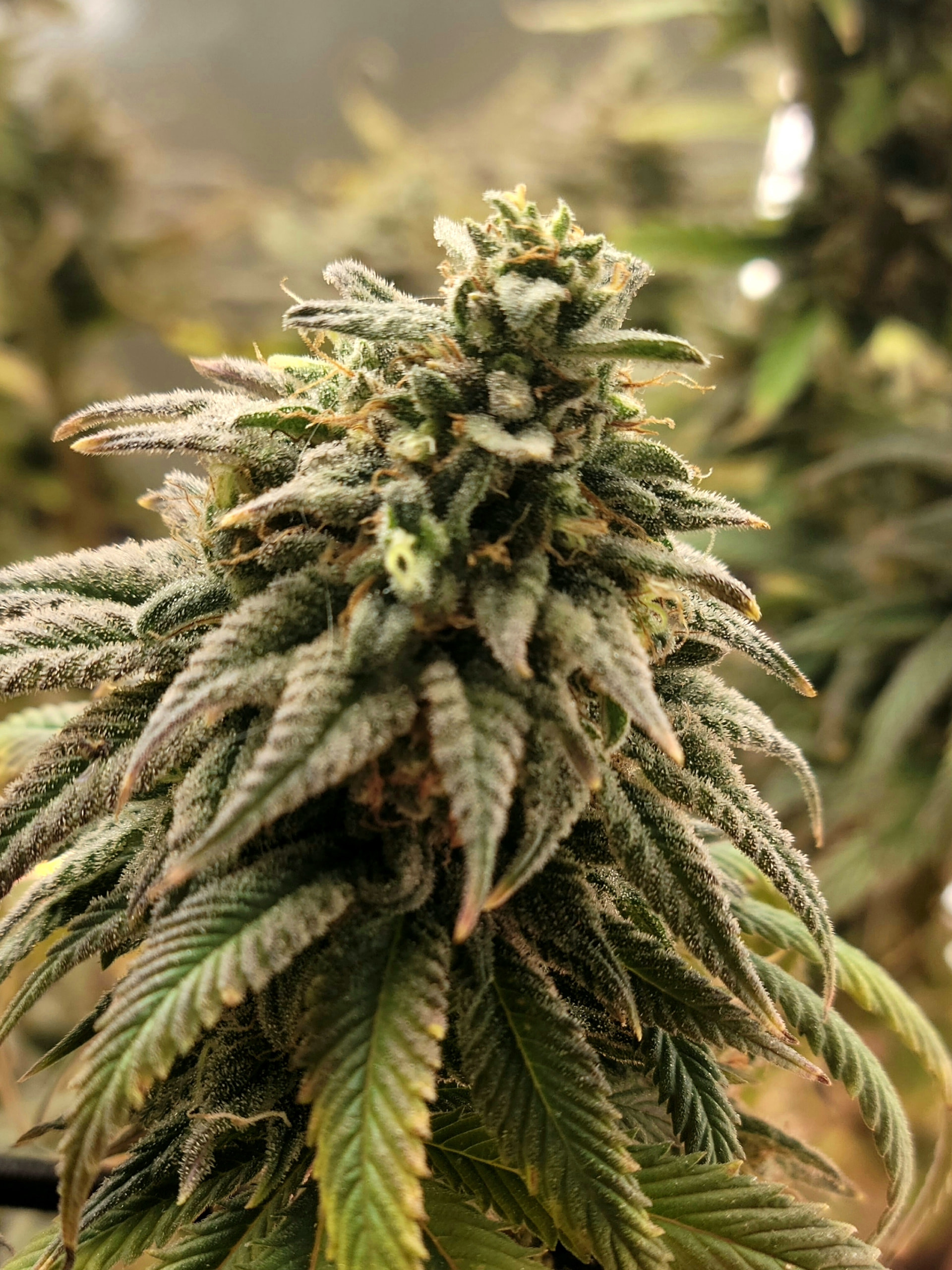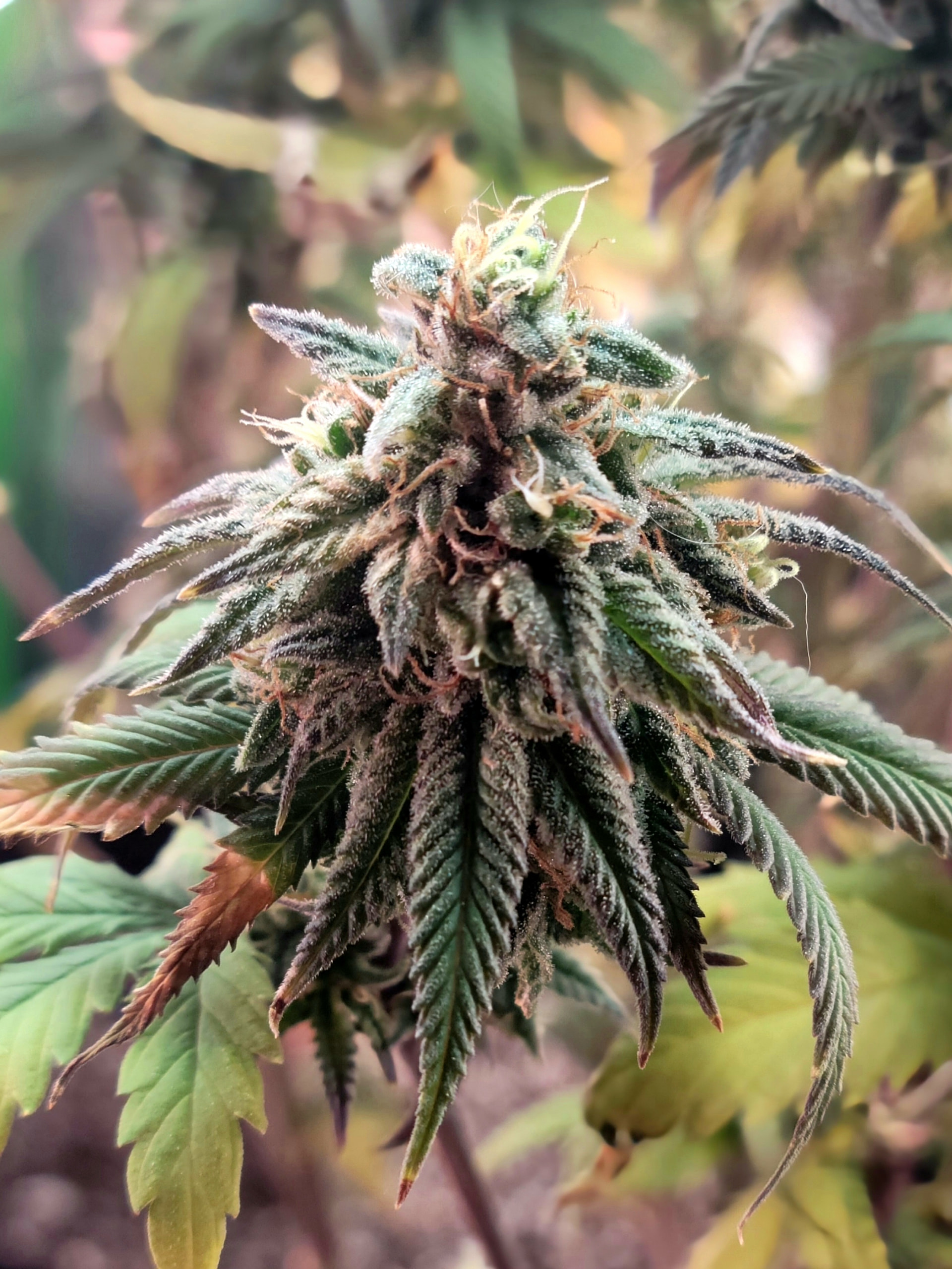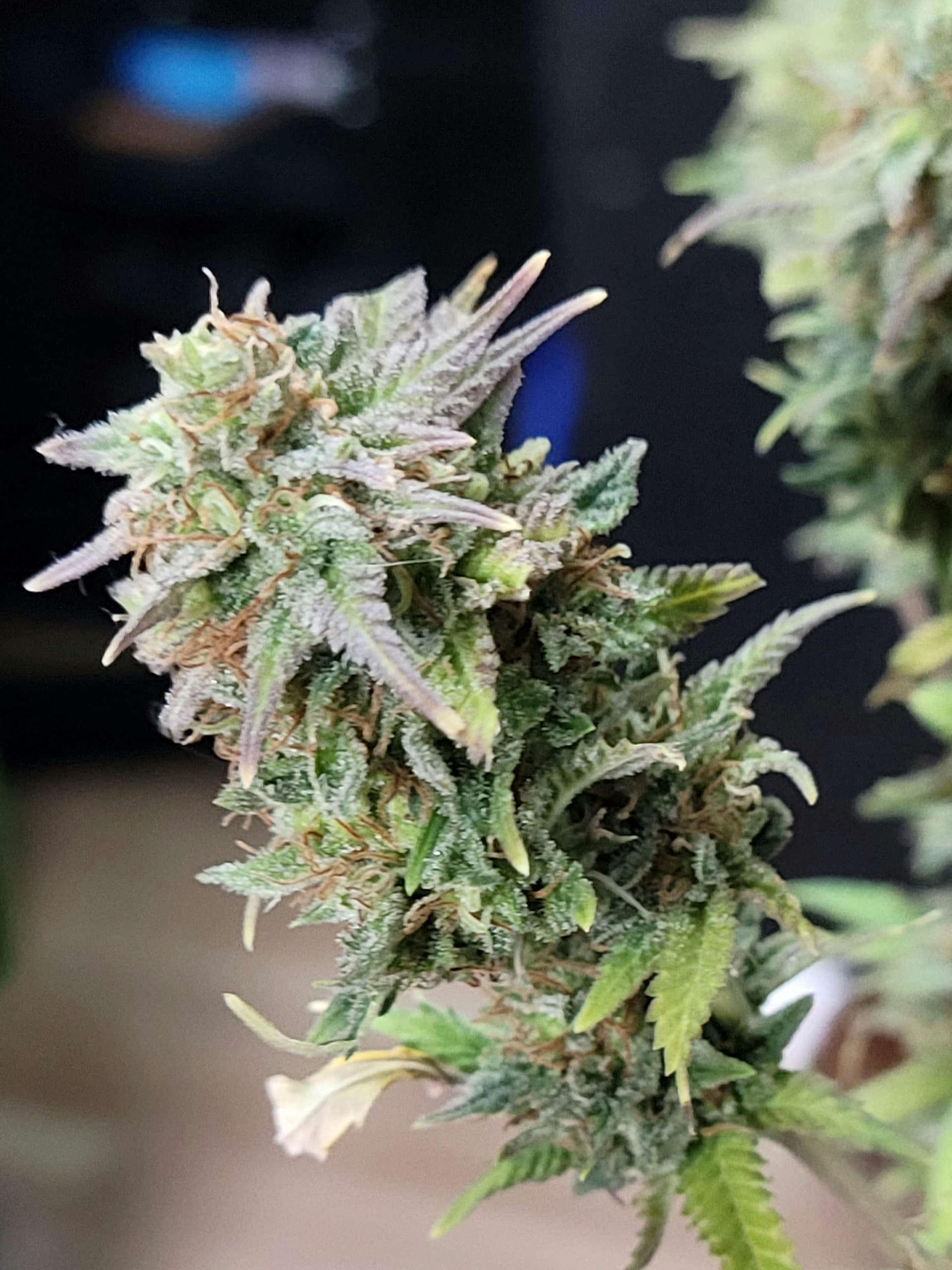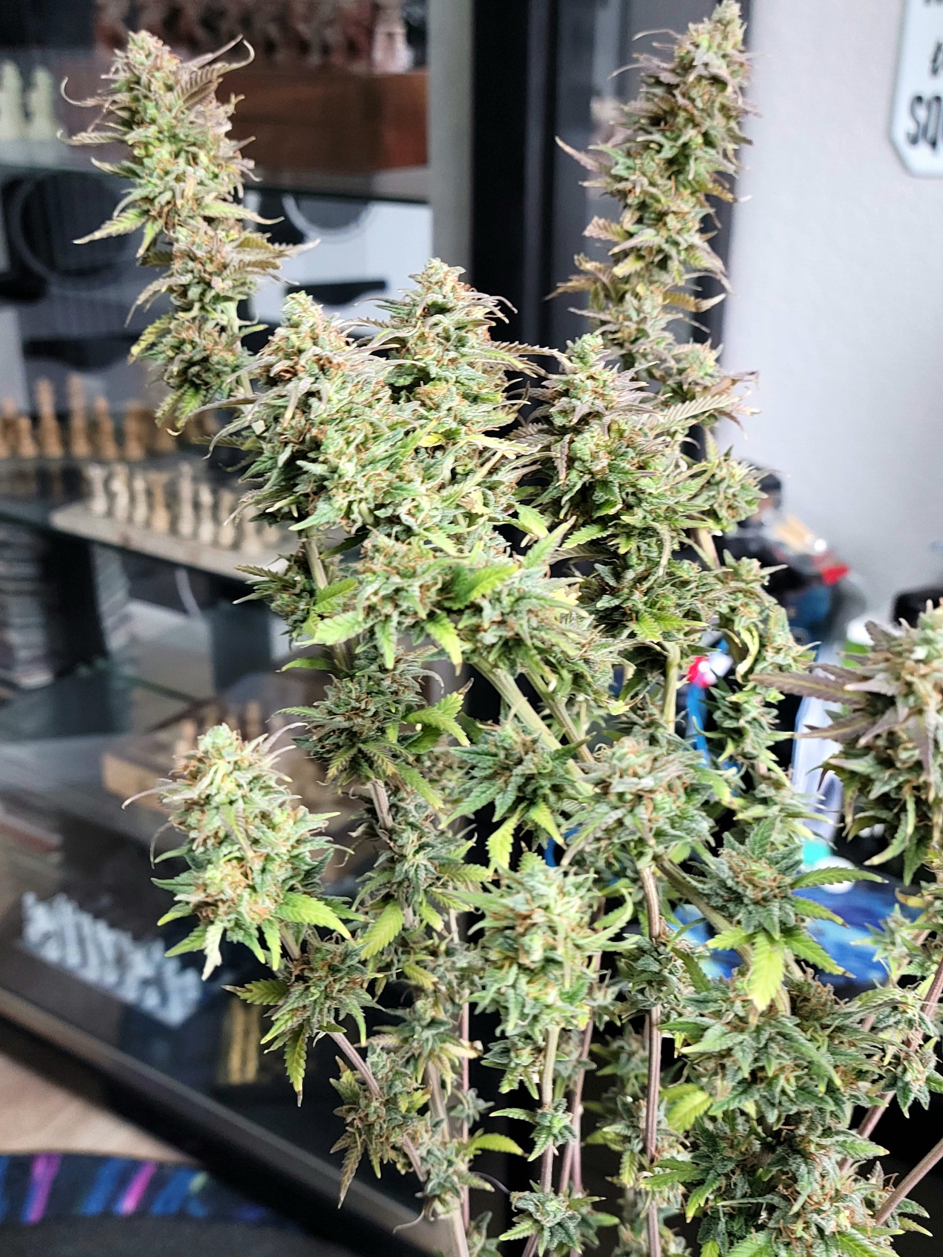 Removed the dead and dying fan leaves. Readjusted the trellis for better light exposure and air flow. Buds are dense and sticky. Amazing citrus aroma. Buds are getting heavy any starting to fall over