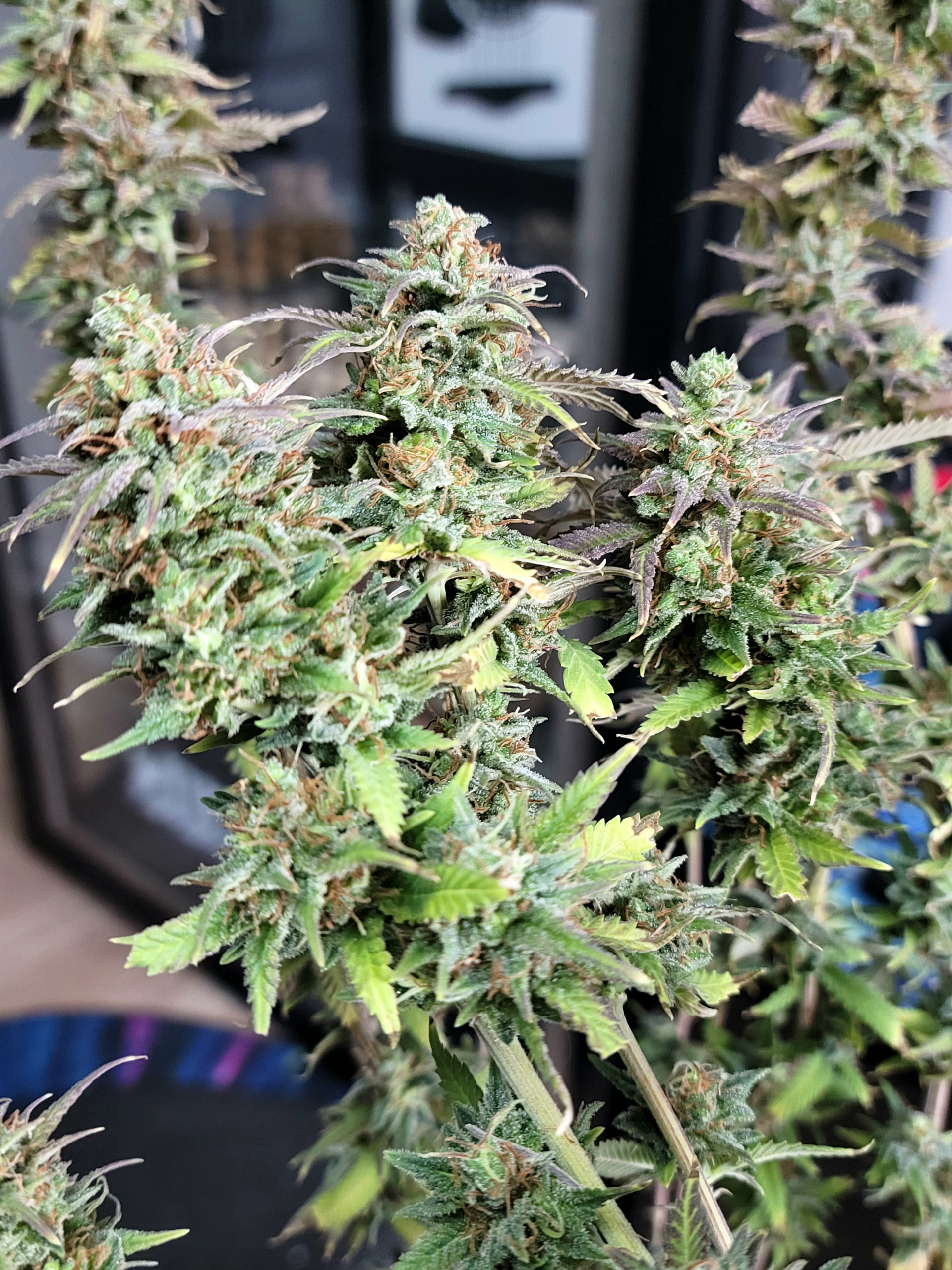 My flowering girls came down today. 3 each of tropicana cookies purple, apple fritter and peanut butter breath hanging to dry. In their place in the 5×5 went 2 more apple fritter, 2 more peanut butter breath, 1 Afghan Kush, 1 tropicana cookies purple, 1 jealousy and 1 gorilla glue all at early veg and starting to take off.