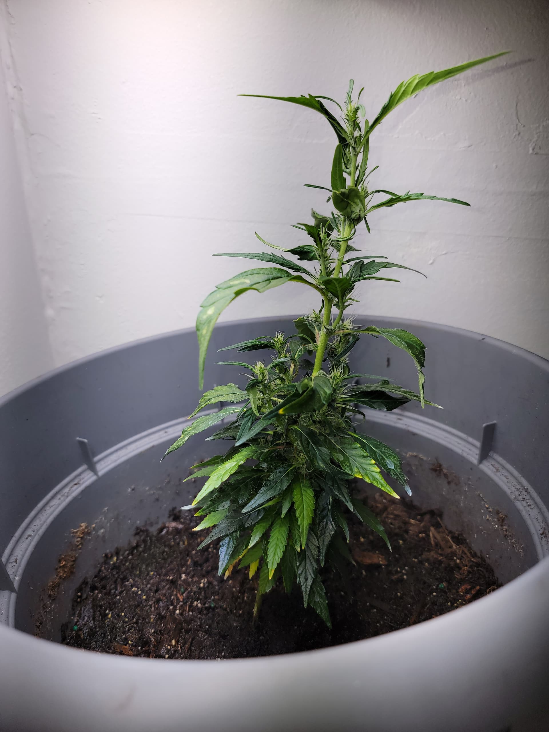 I also feel like her leaves are way to close, feels like an auto seed that didn’t grow enough. So could probably need some trimming. However i wouldn’t trimm unless i’m sure everything else is fine. And if it’s an auto you got to hurry before flowering starts