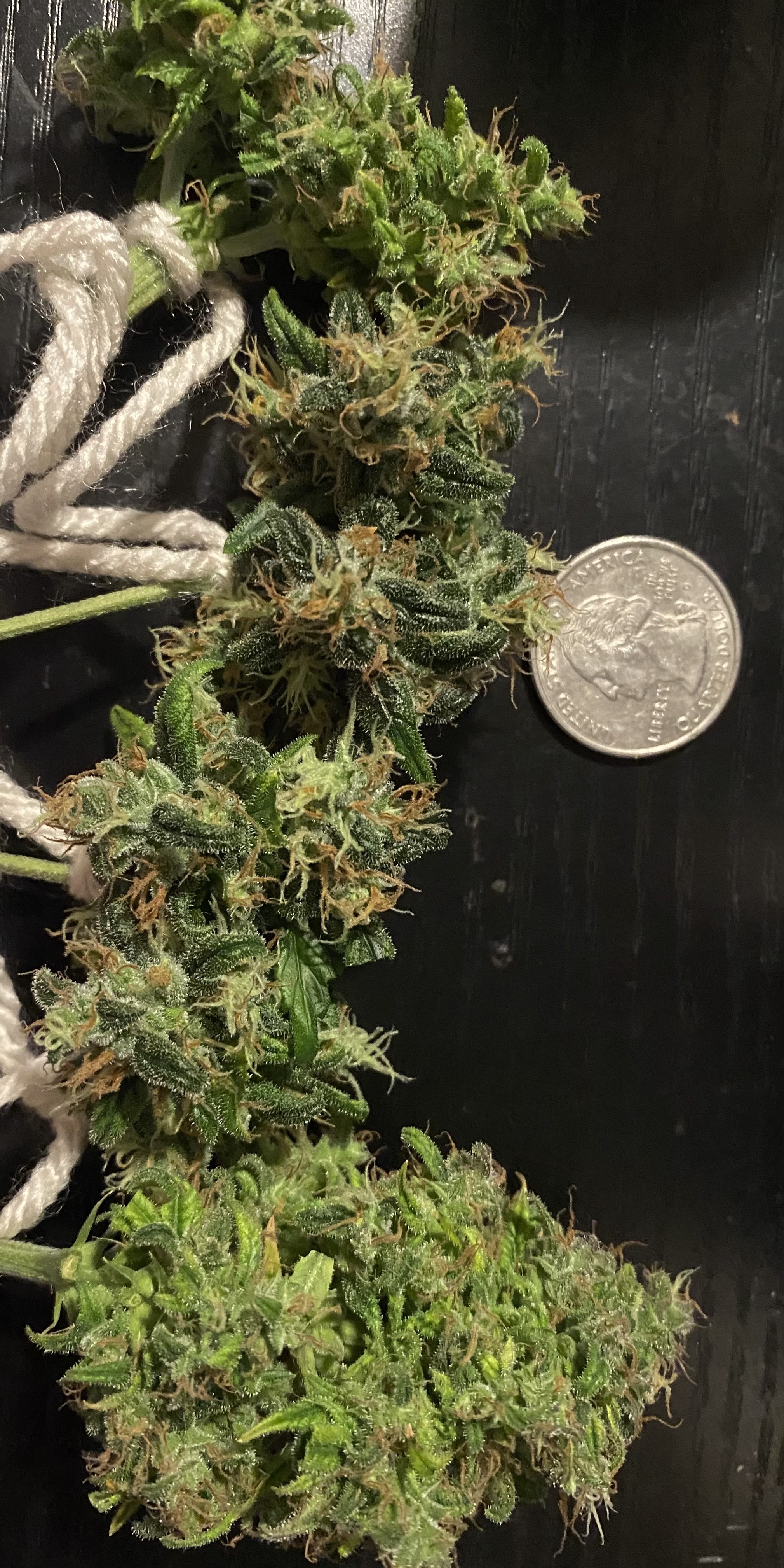 So many of you have helped me through this trial and error from seed to harvest, after 48 hours of darkness, I harvested this morning and wanted to update with some of the nicest ones she gave me. But how do I know when she is dry? And should I cut more leaves off of her before hanging? Or is it better to leave some on? I’ve done my research as far as humidity and temp control. I’m honestly pretty happy with me being a new grower.