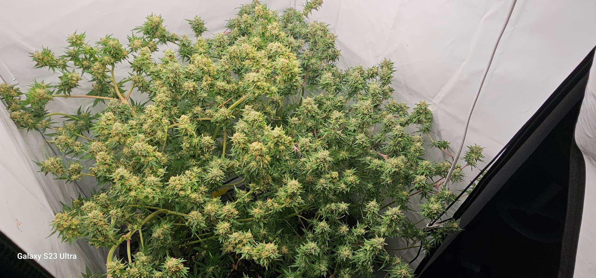 Das auch übrigens dee grund warum ich kein frwund von einer großen Topknolle bin sondern diese lieber quer unters netz setze.so “wäre” das auch ein 30-50cm Bud, nun sind es halt 10x 5-10cm feste buds😉