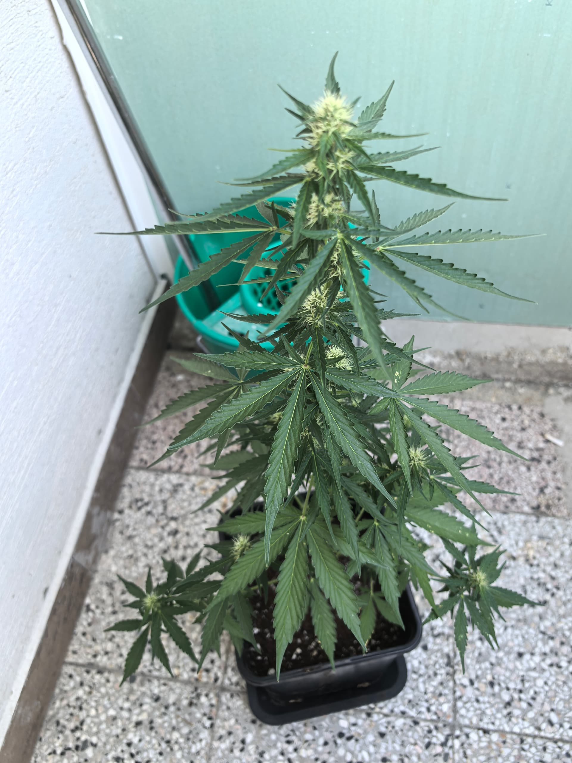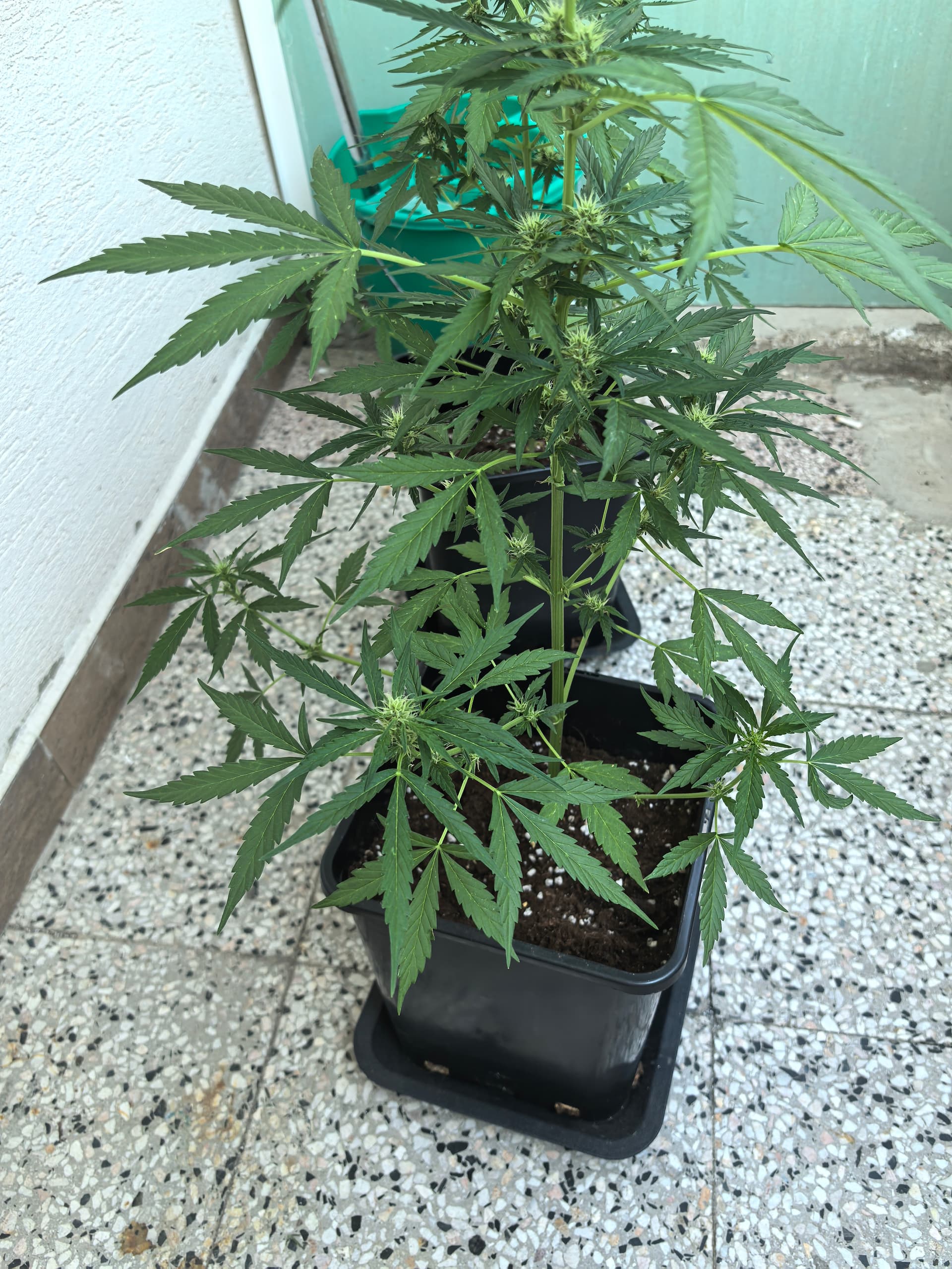 Hey everyone! I’m growing a Lemon OG Auto on my east-facing balcony. She’s about 4 weeks old, around 60 cm tall, and has just started flowering. Temps have been pretty high lately (around 36°C), but it’s finally starting to cool down.