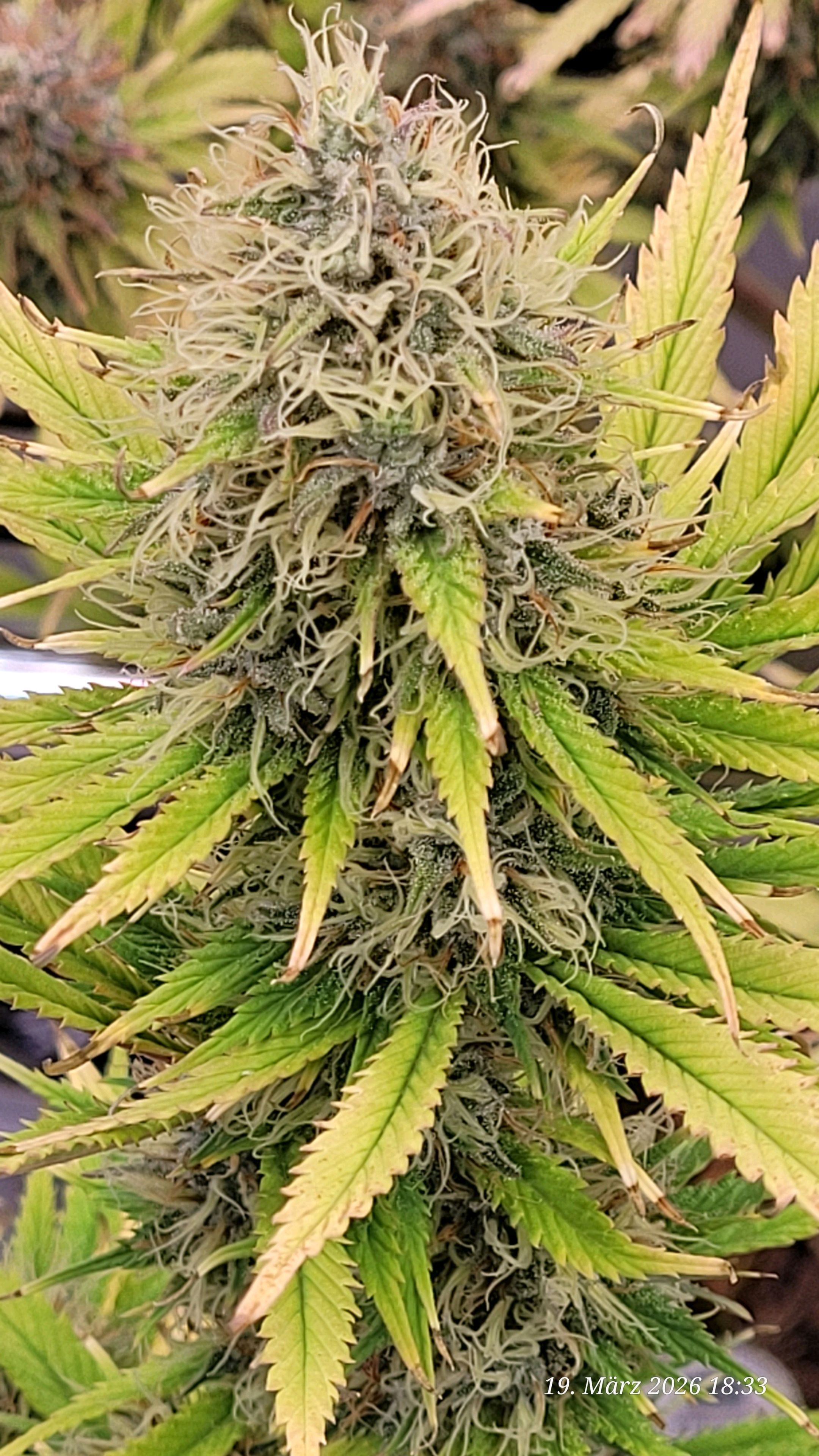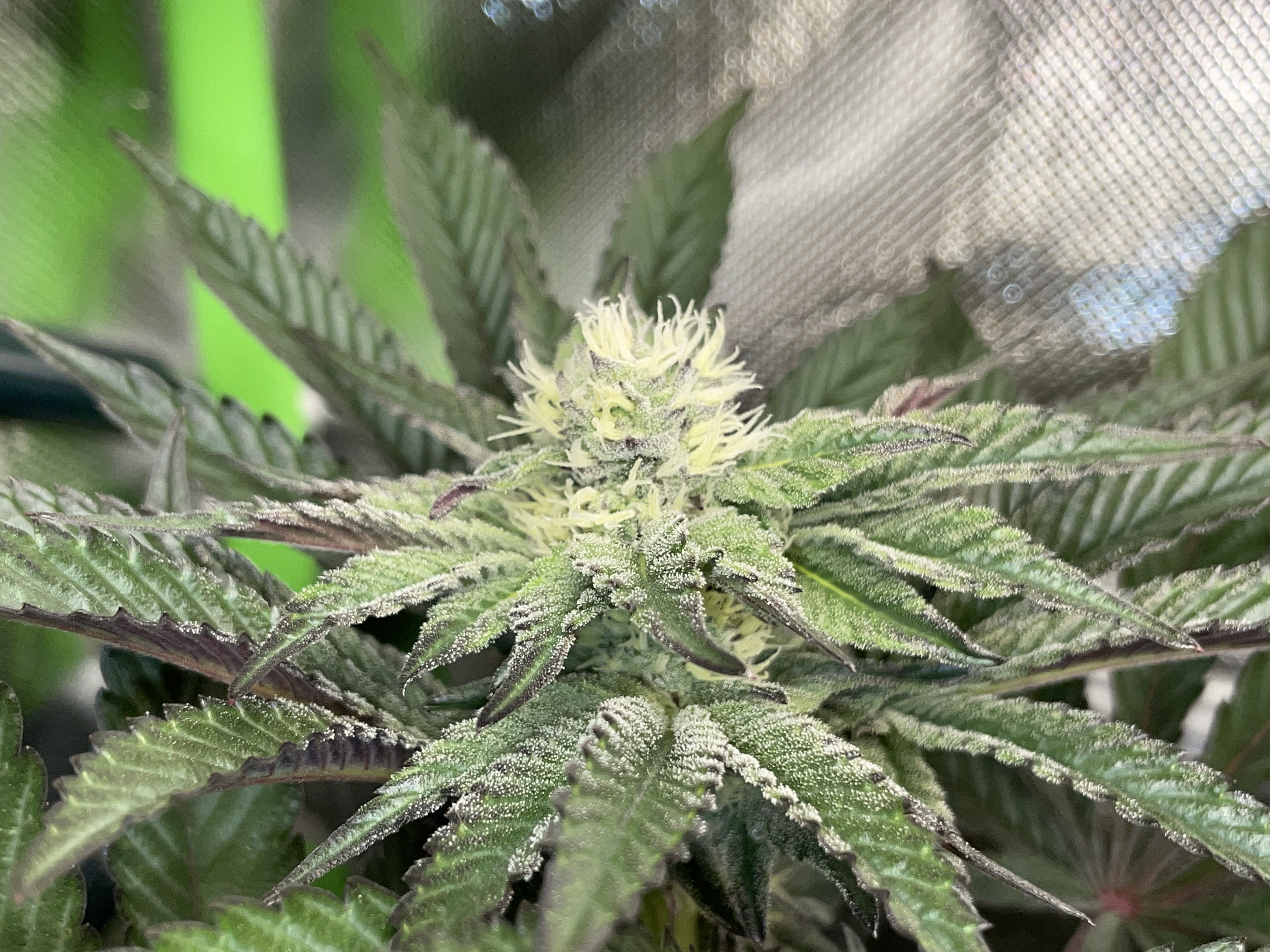 The first of this strain was actually slightly less hairy but finished much earlier in terms of pistil coloration. It was harvested in the 10th week of flowering, and initially I thought this one, due to its still numerous bright pistils, would need several more flowering days.