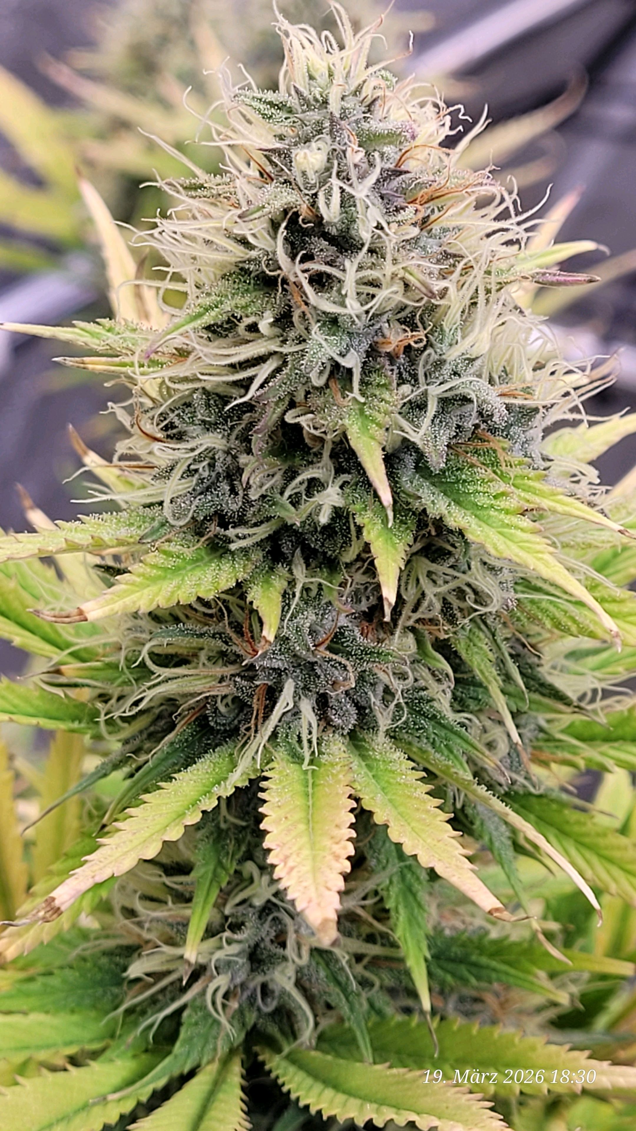 It’s the second Jamaican Pearl grown from seed! Pictures are from yesterday, flowering day 55, and she’s finishing her 8th week of flowering today.