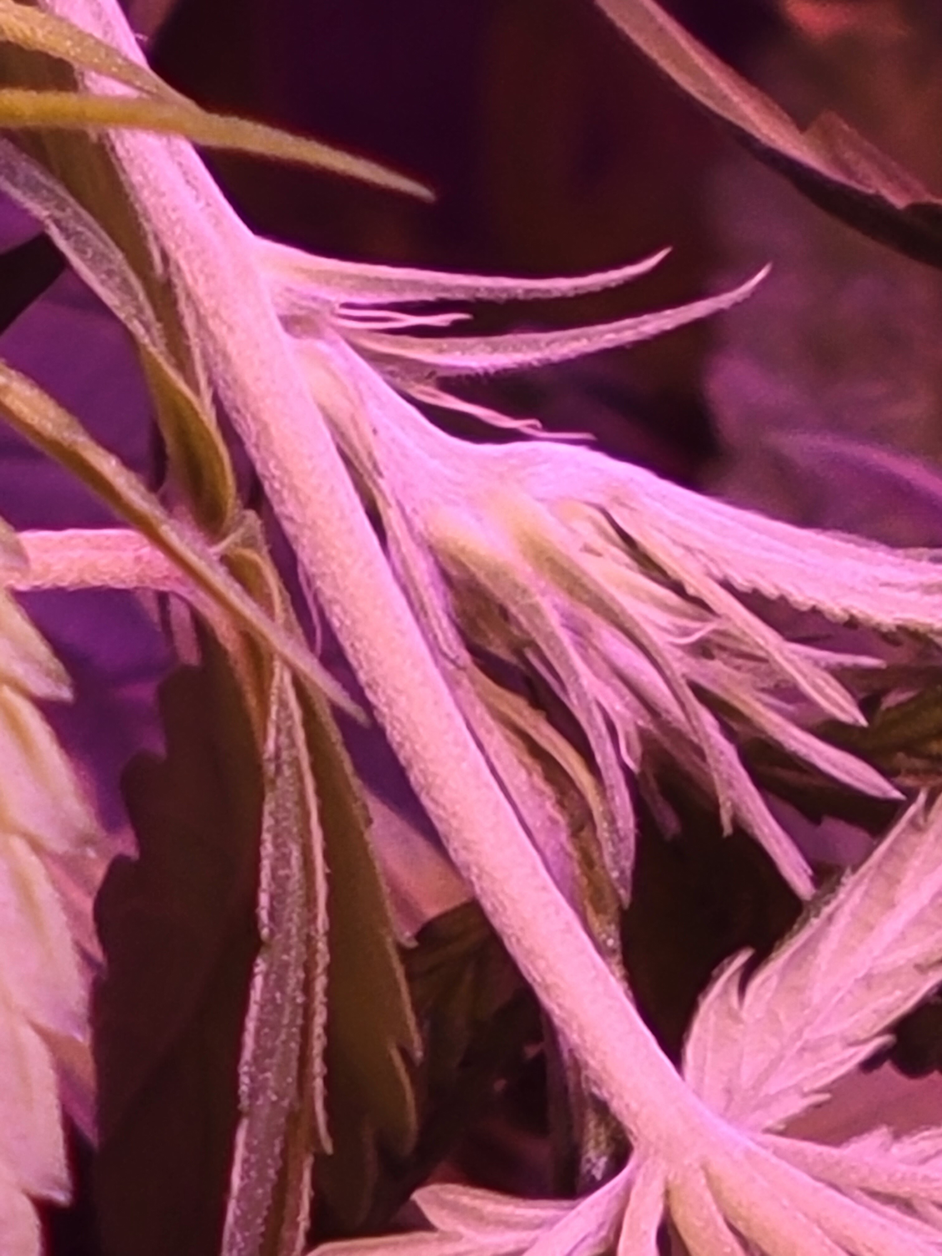 Post some of the latest pics you have + some close ups from the nodes. You need to also pull those stems down, my guess is youre WAY TOO CLOSE with that LED.