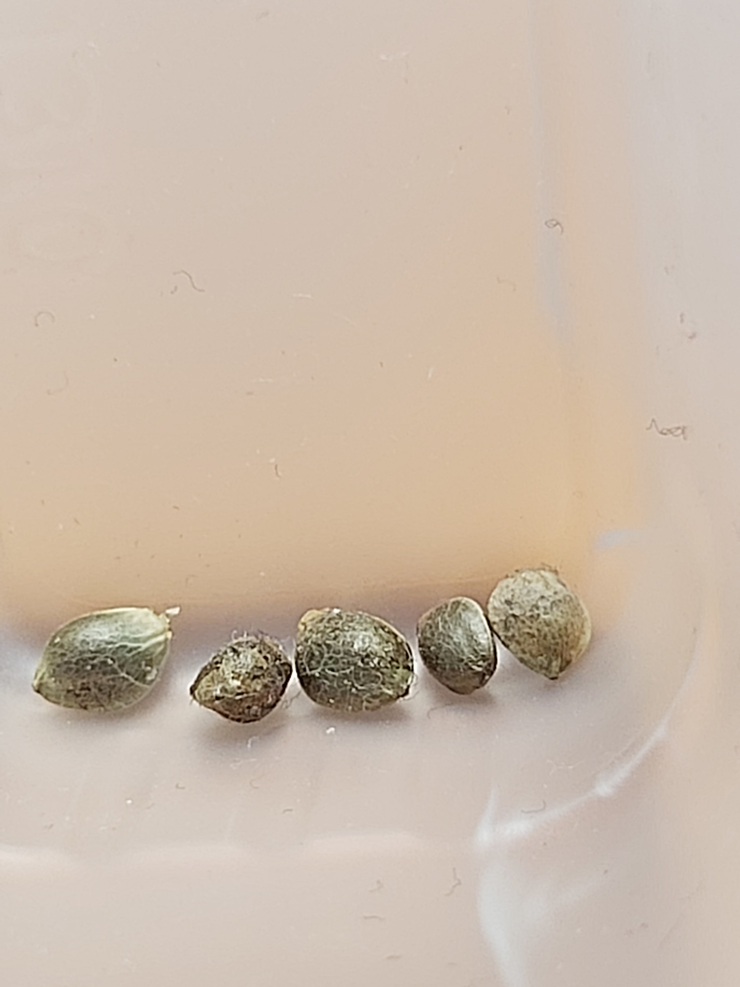 Did some trimming the other day and I found some evidence that someone in my neighbourhood is also growing and the bees delivered a little gift to at least one of my plants. This was an outdoor grow of two clones from a plant that was confirmed to be fem. I had kept an eye on them as they were cloned when the mother was already in flower so I was concerned that the stress of being forced back into veg might cause them to hermie. I’m surprised that I didn’t notice the seeds before but I am a newb so my eye is untrained. Anyhow, I’ve been smoking weed with seeds since 1973 so there is no way I’m not smoking this. And, so far, I’ve found 5 seeds that look viable so… bonus? Also, I still hate trimming.