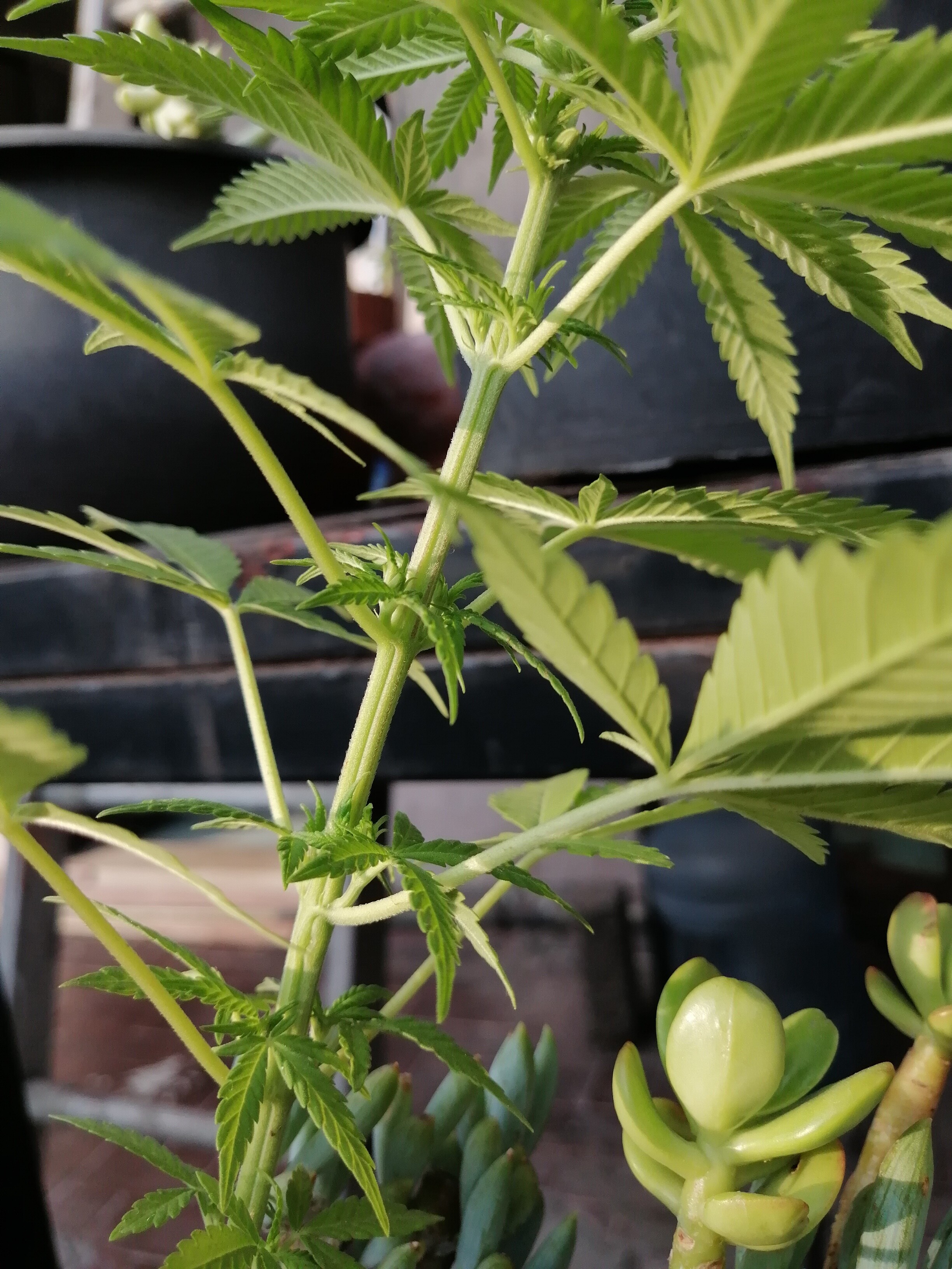 ¡Hola! En noviembre sembré mis 3 primeras semillas y las tres ya están en estado vegetativo. La más grande tiene ya alrededor de 8 semanas pero no puedo diferenciar si es un macho o es hermafrodita. Me confunde porque es la primera vez que germino cannabis. ¿Podrían ayudarme a identificarla?
