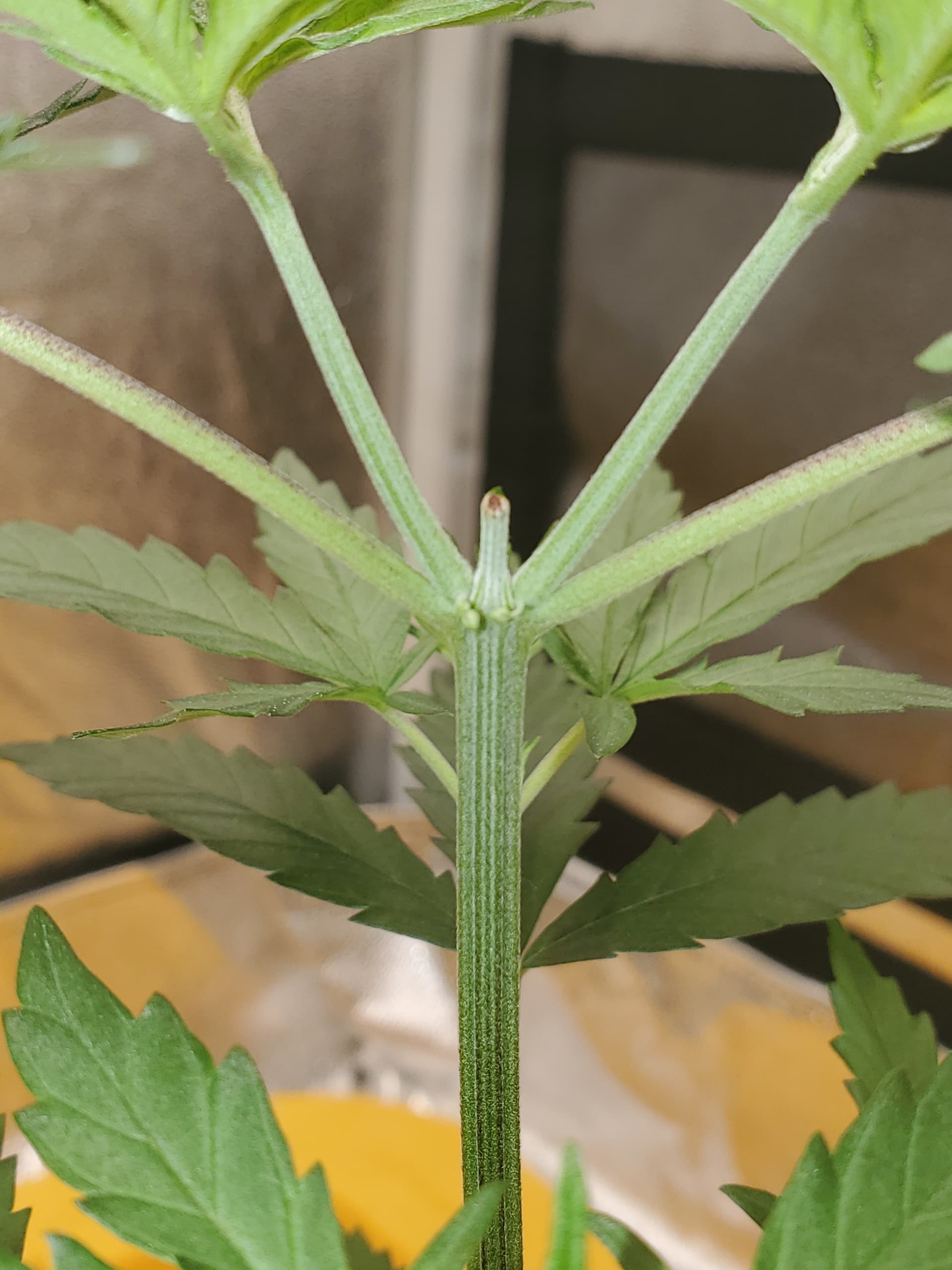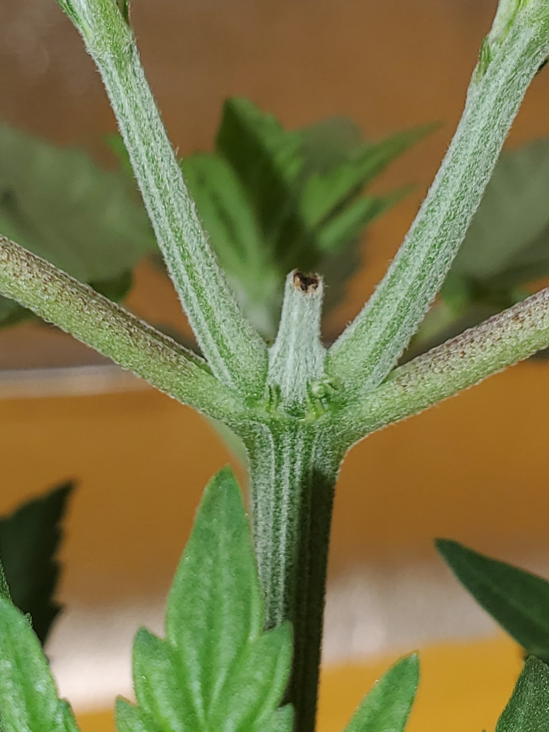 Hello everyone, typically i don’t have a problem figuring out the gender of my plants, but this one sure stumped me. The strain im growing is Raspberry Parfait (Fem) or so I thought and thats what brings me here. They seemed to be female then i topped them 5 weeks after germination and boom, little ball sacks formed. Im hoping someone has any type of explanation that could hwlp me underatand what happened