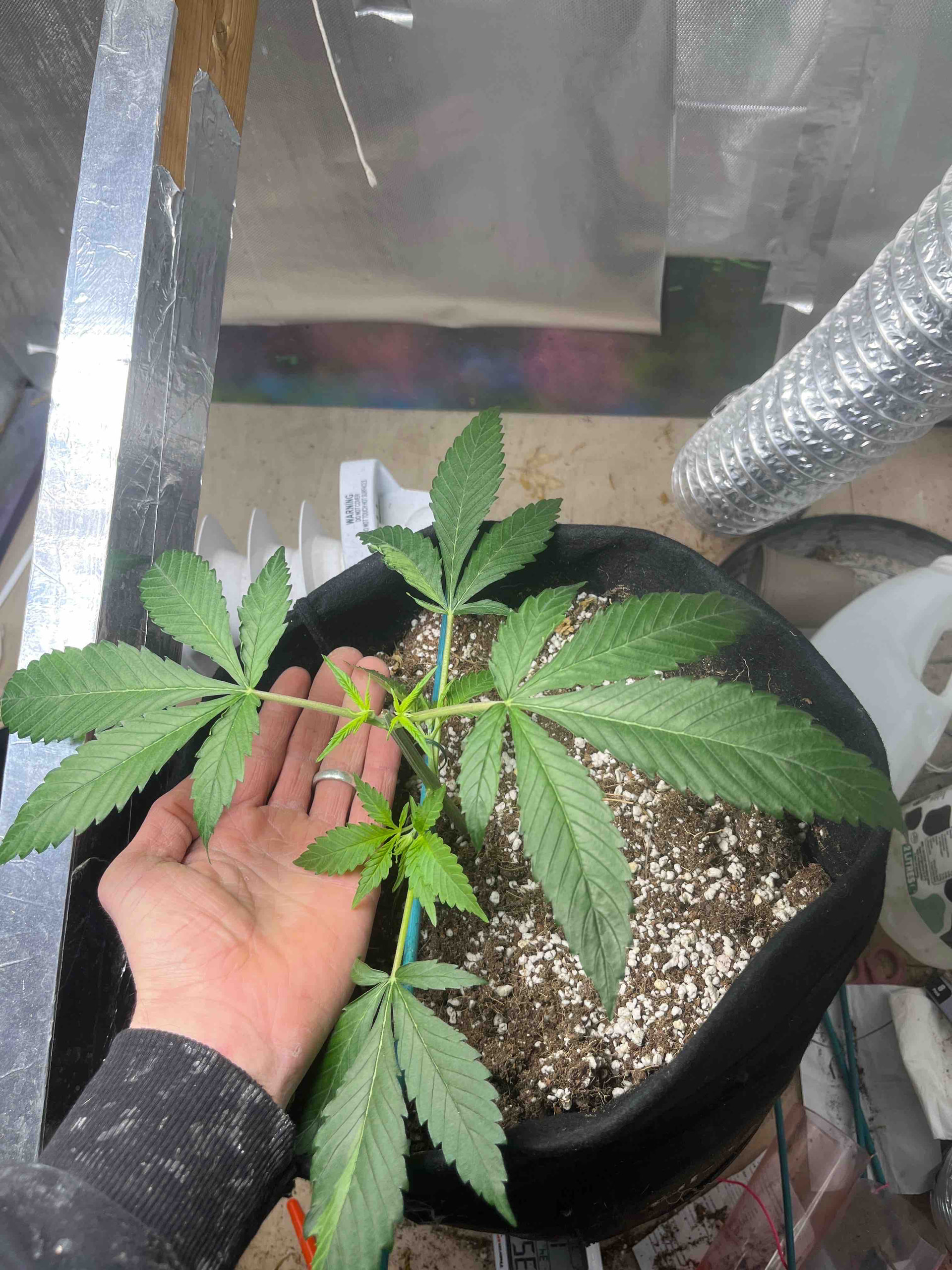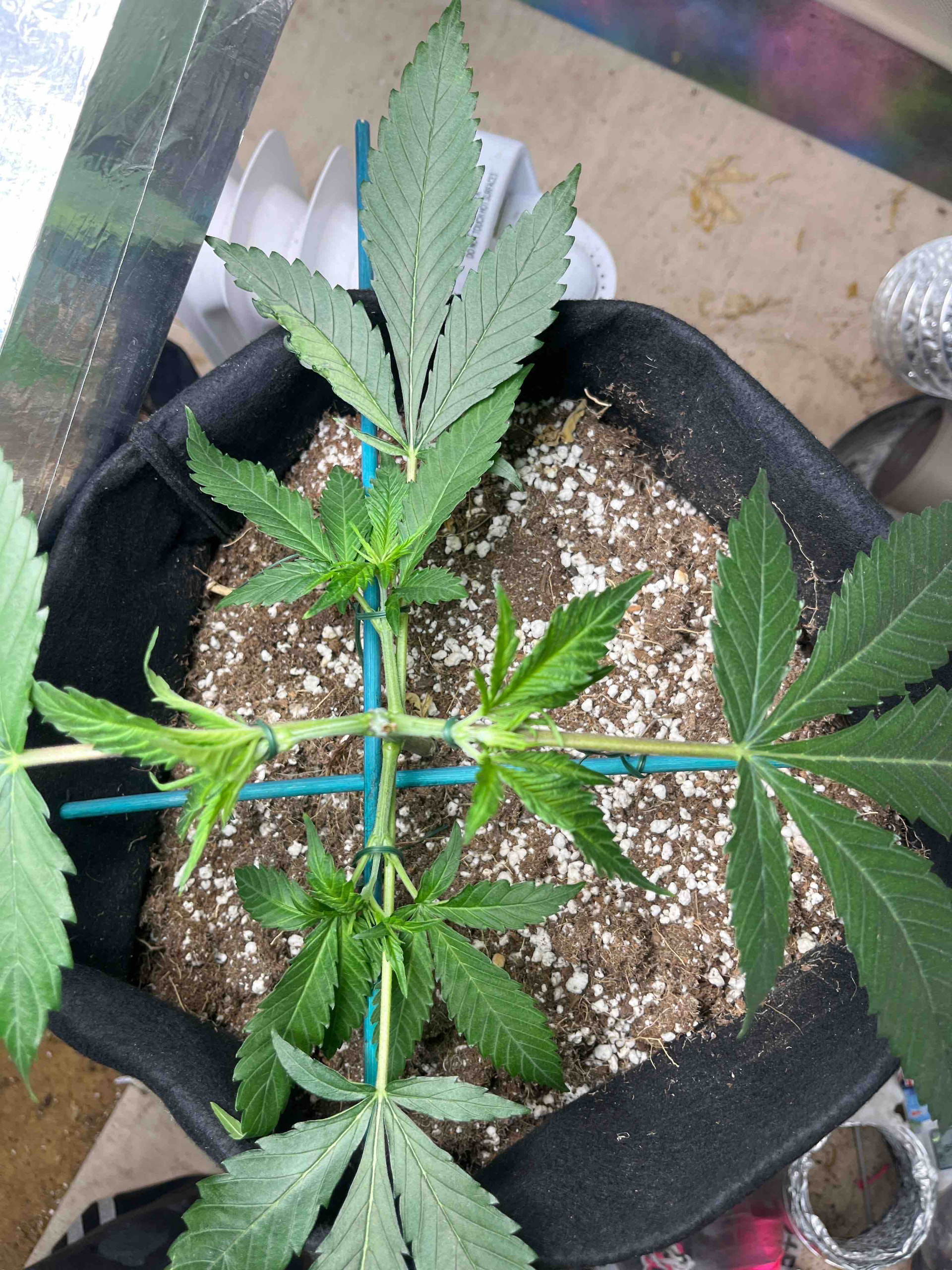 Hey guys, this is second grow ever and my first time using grow dots by real growers, I’m watering around every 4-5 days, allowing dry back in between. I also got a second light as I think my 1st grow really struggled due to the light not being strong enough. The strain is chocolate zkittlez by dr krippling. vegged for 6 weeks, starting the mainline around week 3.