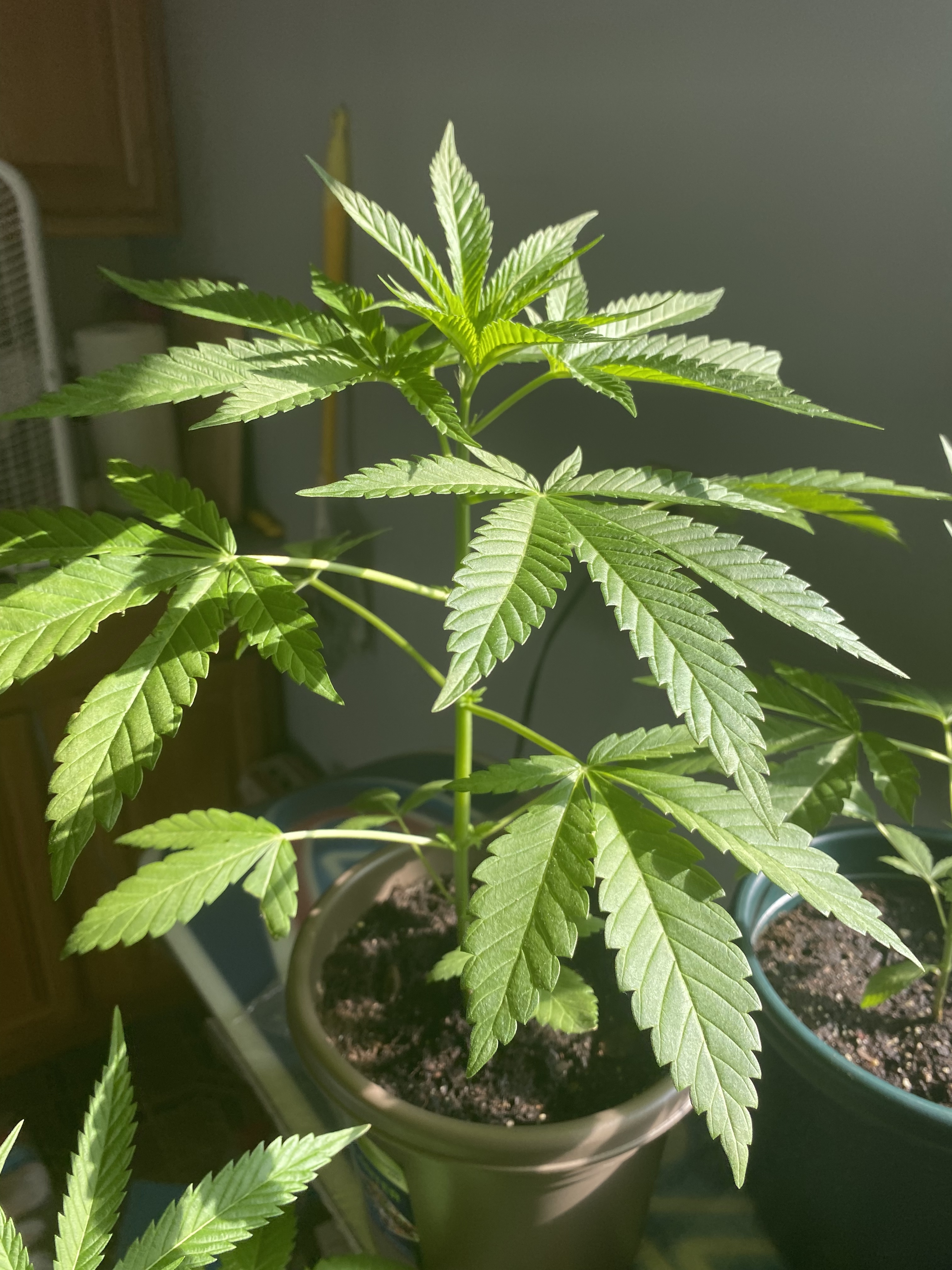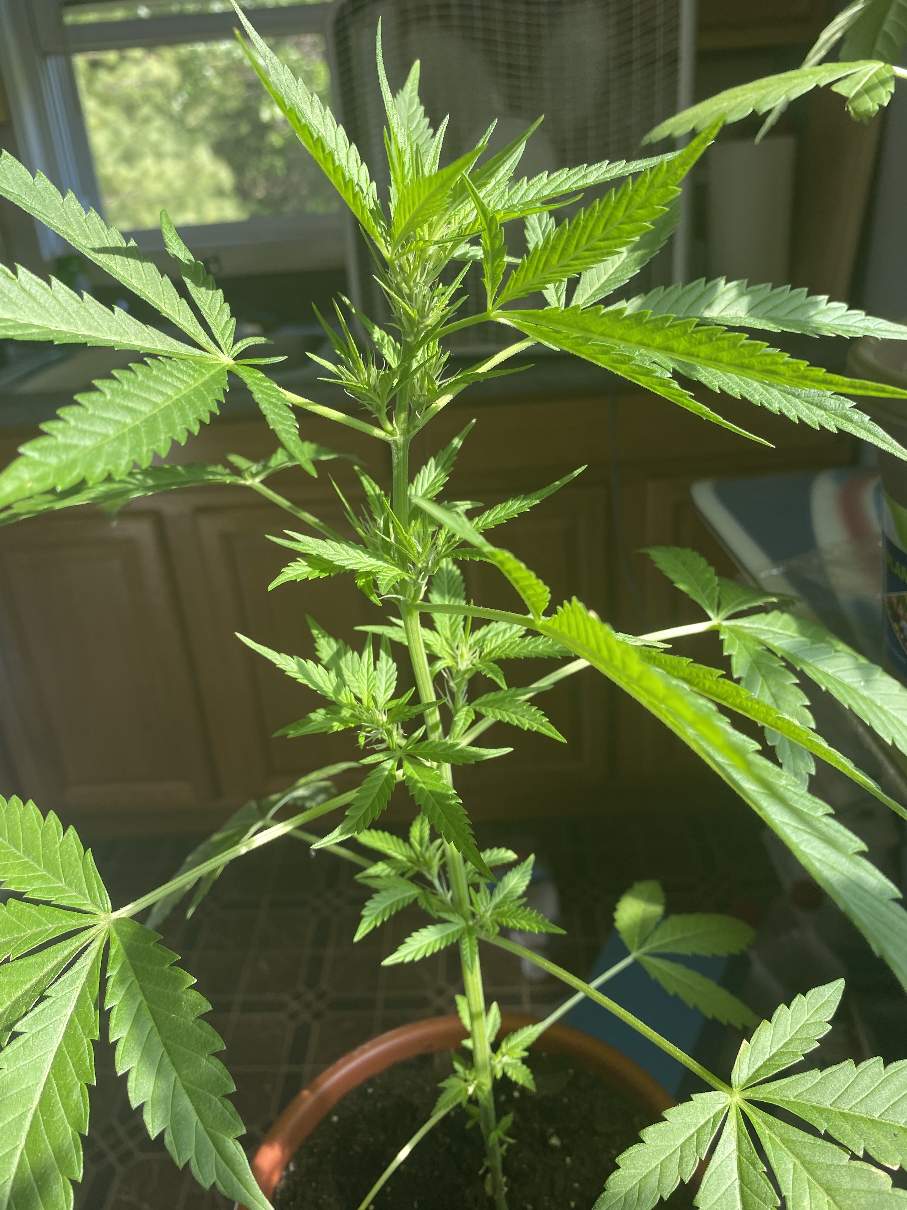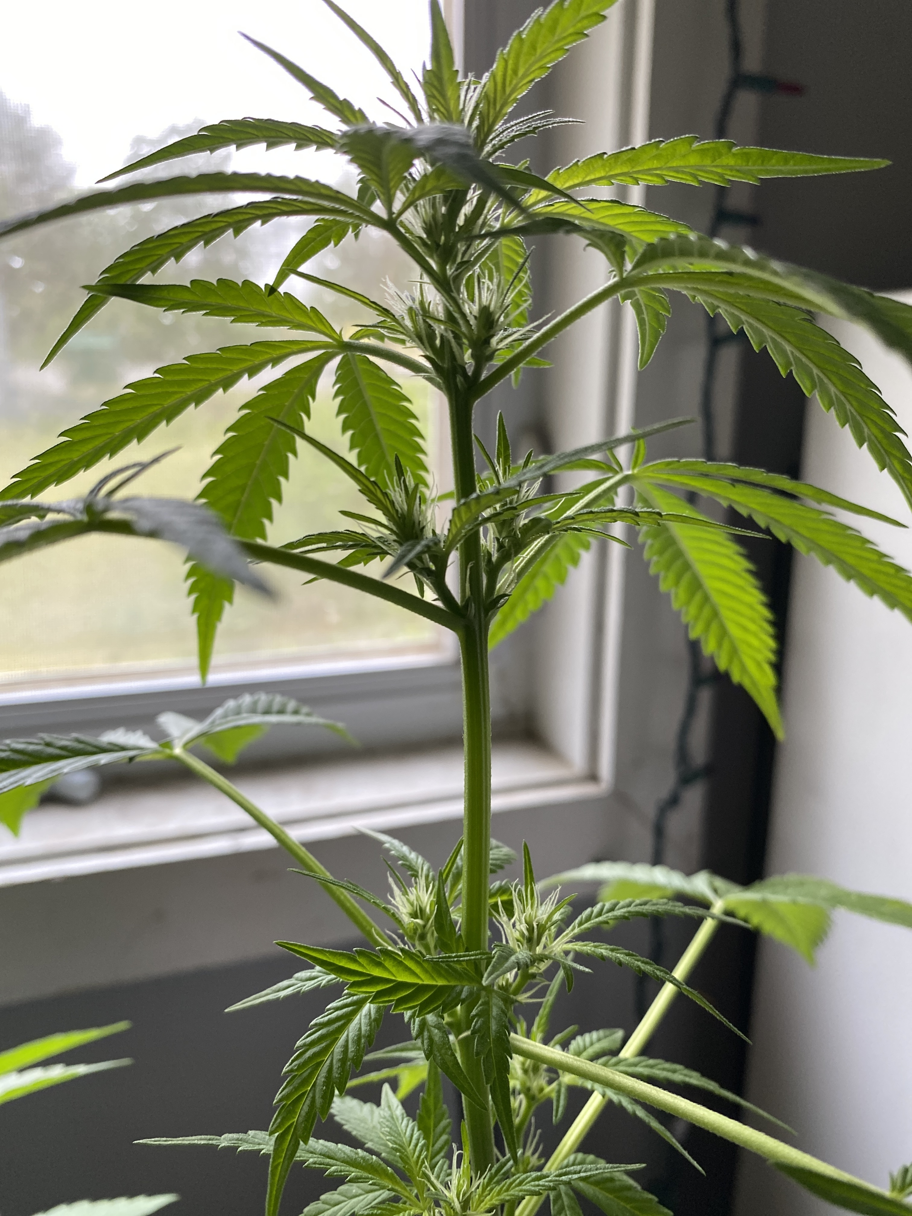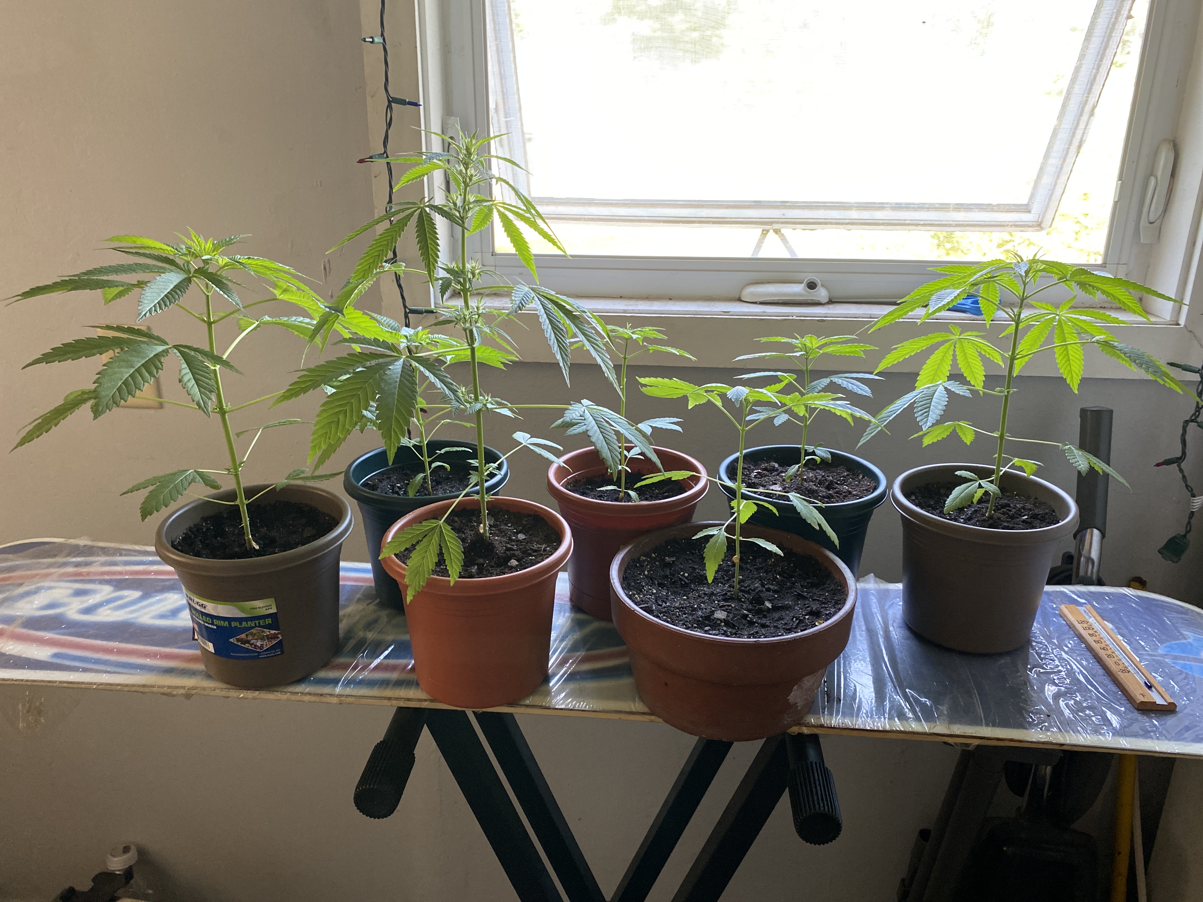 Hello everyone. I have a very limited growing area. As you can see. I have a snowboard that I won in a raffle twenty something years ago(still brand new and in the plastic) sitting on a keyboard stand. This is the window I have for growing. No grow lights, nutrition, fancy soil etc… Do they look ok? I planted them all at the same time. Had some problems like transplanting, dropping some etc. started with twelve and now down to seven. I guess that’s ok. I guess mu question would be……will I get buds?? Just some seeds I had laying around. Poked a hole in the dirt and dropped in the seed. I think they are Stativa(Kush).
