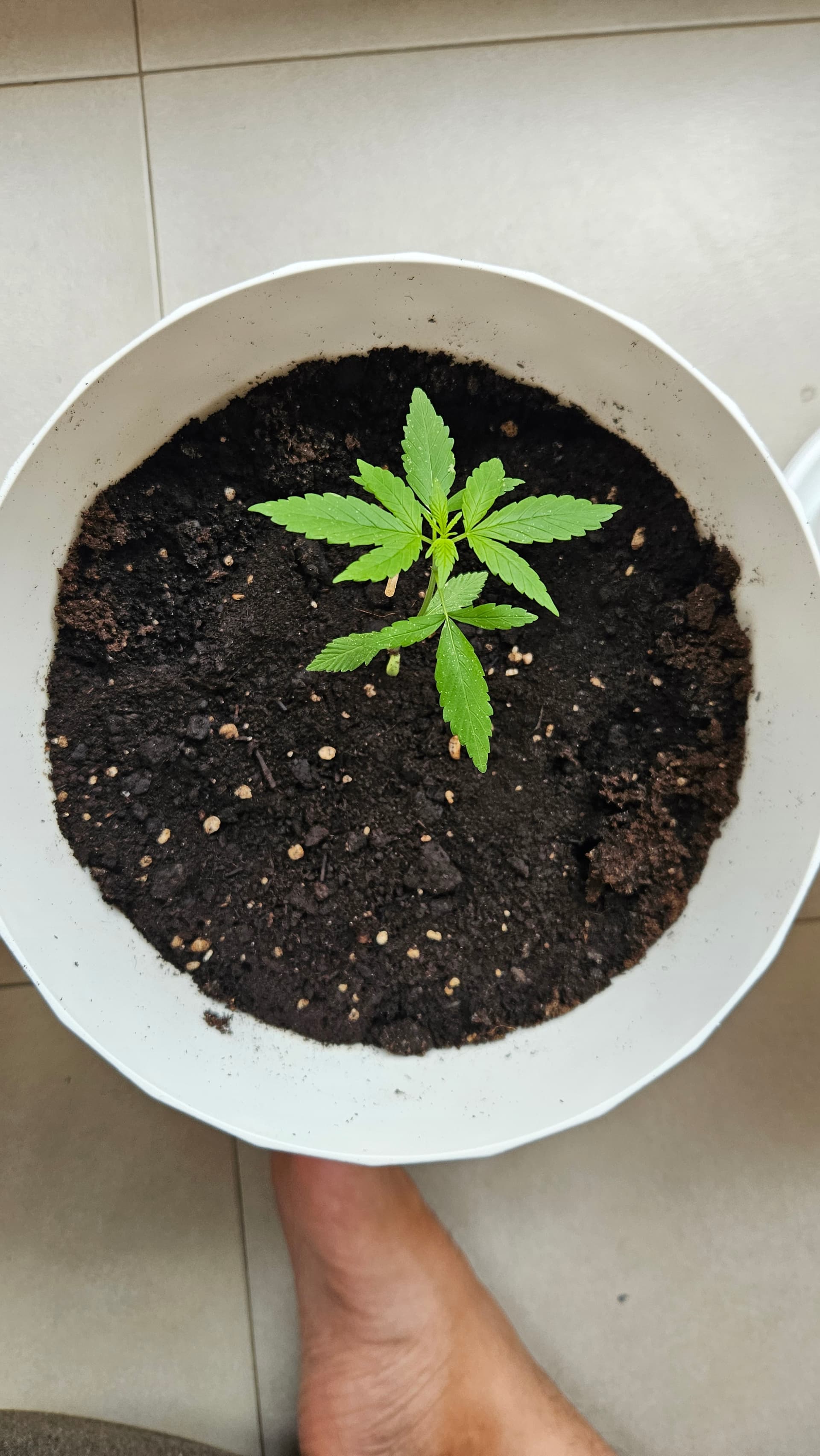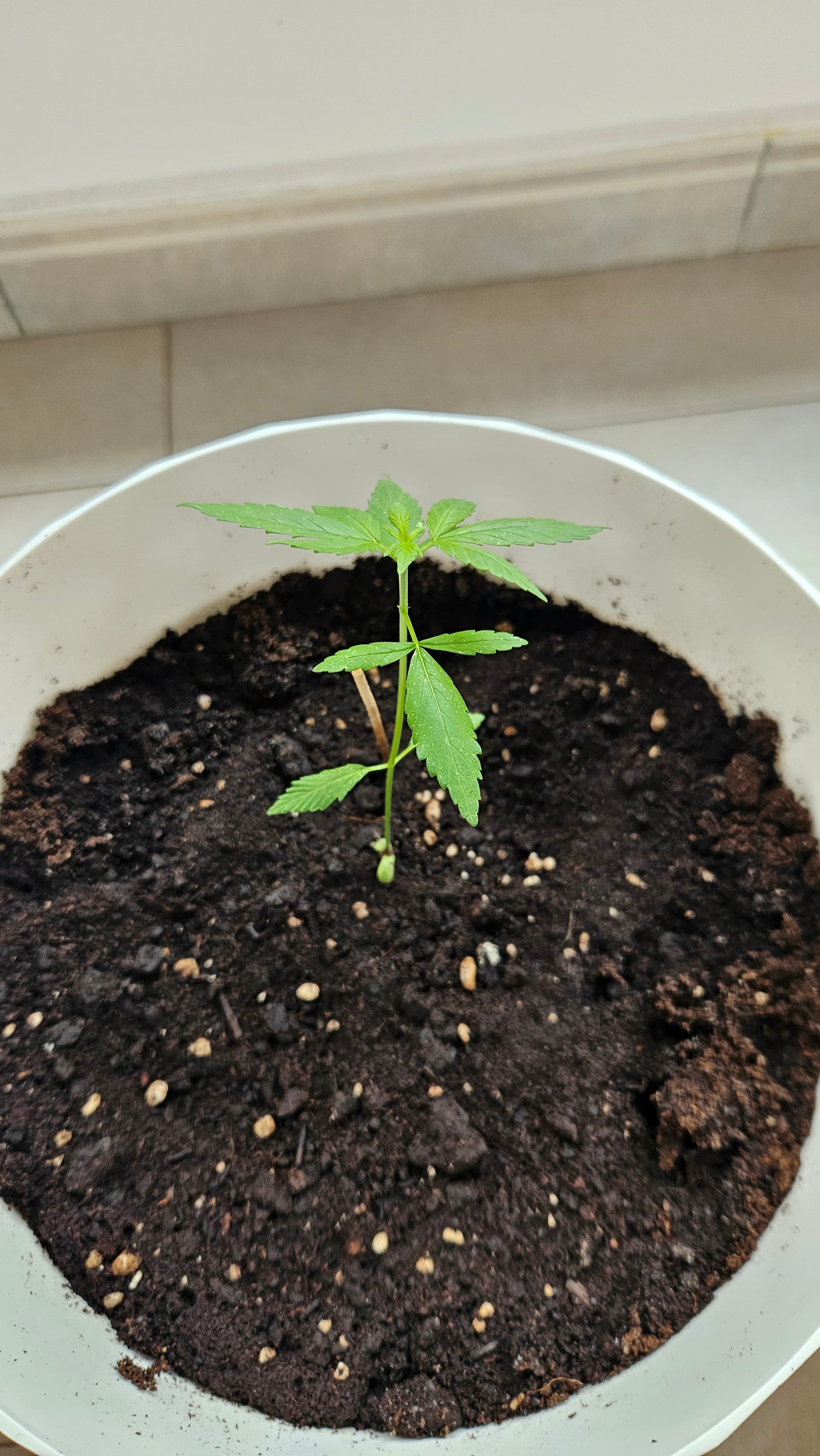 I agree with zorbas2, you can see she is stretching for the light a bit. And that soil is too saturated with water for how big she is. Easy fixes, besides that she is looking good