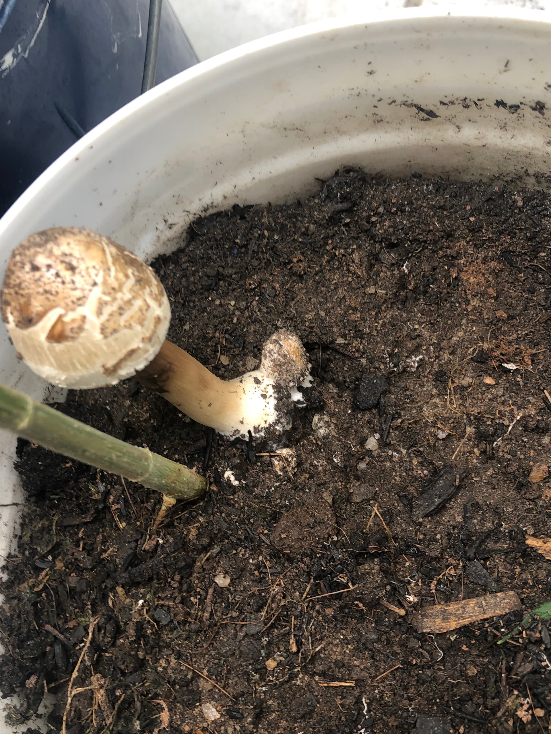 A white mushroom grew overnight out of nowhere, is it a risk to the plant?