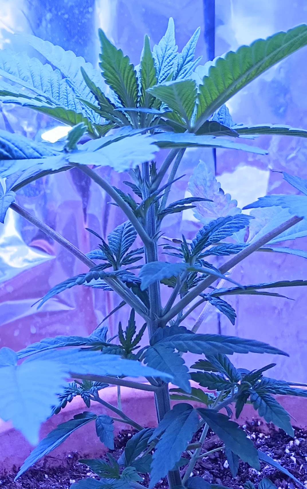 #2 I fed her for the first time about a week ago. I used tomato bloom fertilizer because it’s all I have. I know the first feeding needs to be light so I put like a small pinch worth (pinch between my fingers) in 4 cups of water. It’s Miracle Gro. I know. Next time I will use something more organic and small business. This is my learning grow. Anyway, a few days after watering the bottom leaves started curling, getting yellow and brown. Too much fertilizer too soon. I cut off the effected leaves, there were 4. I haven’t flushed her. Should I? It was such a a small amount I don’t think I need to, but WTF do I know, lol. Not much