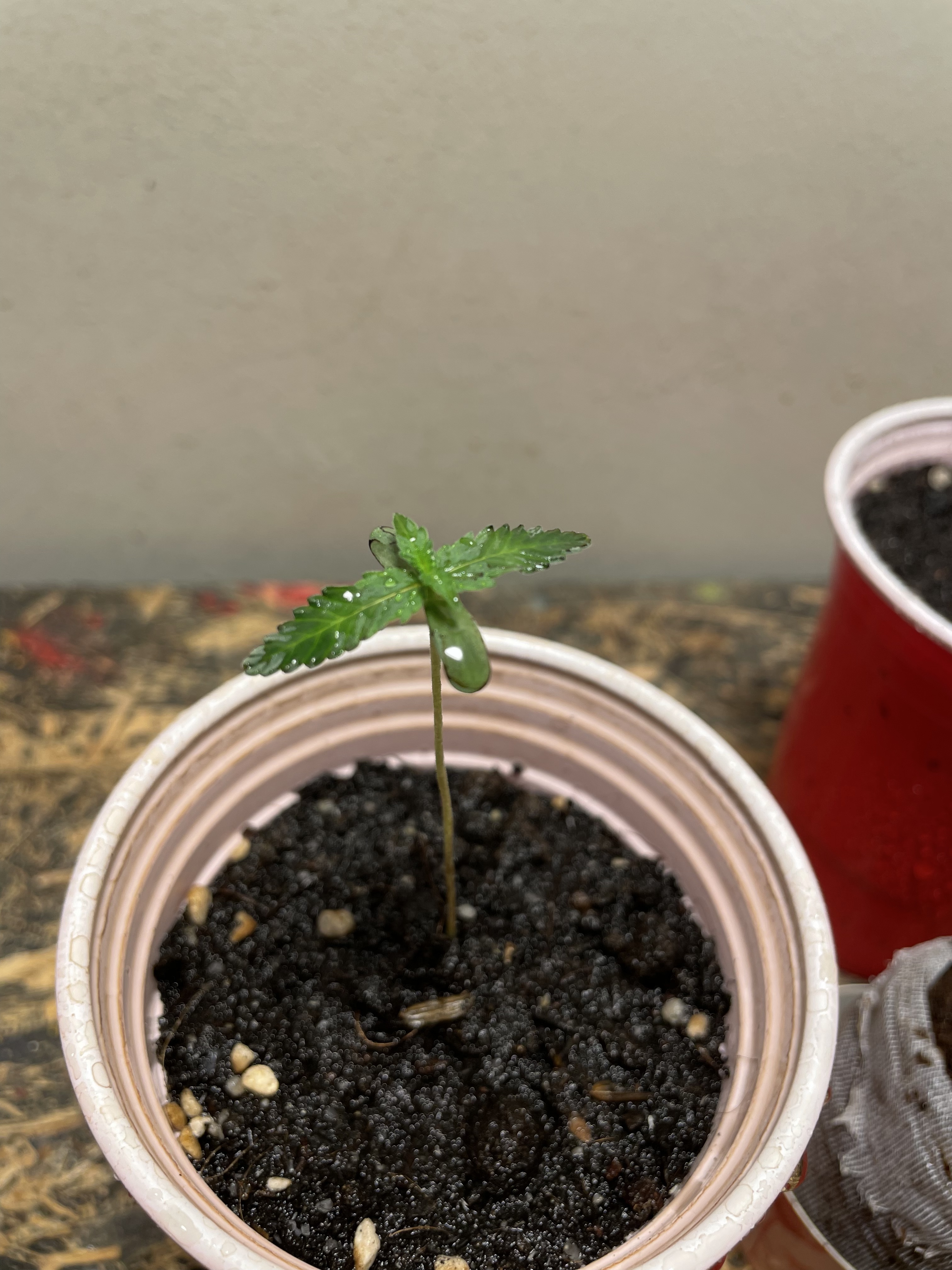 Im using LED bulb 100 watt, distance around 3 1/2 ft. In Days 2 she has grown stretchy. So i put the light closer. Yes im agree with you, i will change watering timing. Thanks for your advise.