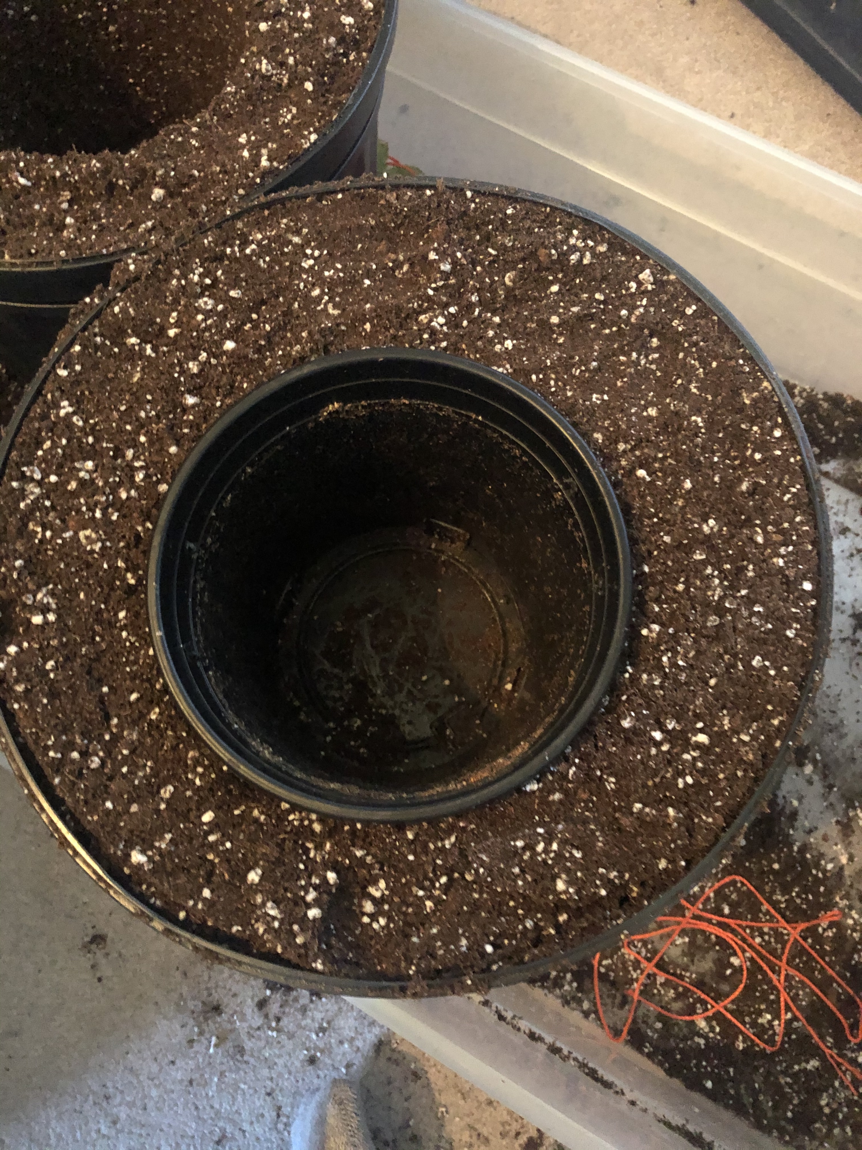 I fill my pot with soil and place a pot that is of the same size as what I am transplanting from. I fill in all the sides and remove the guide pot